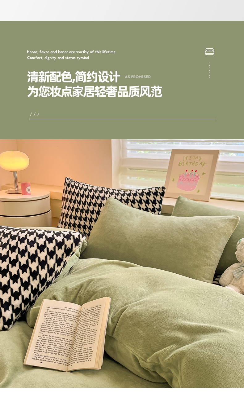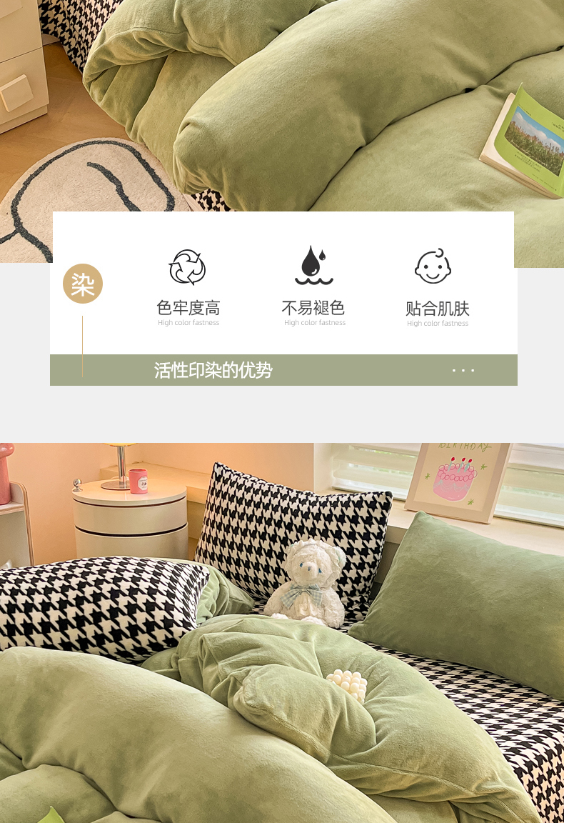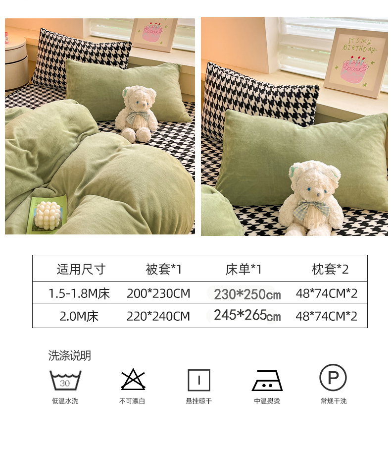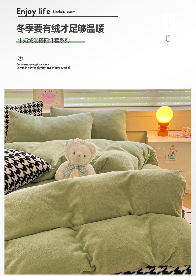 当前位置: 91家纺网 > 商品网购 > 床品套件 > 四件套 > 法莱绒四件套 > 三朵家纺 2025秋冬新款法莱绒混搭系列四件套 苹果绿