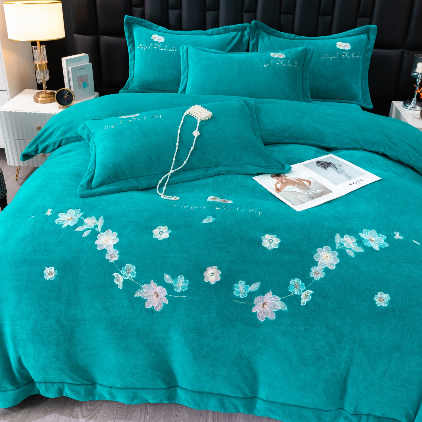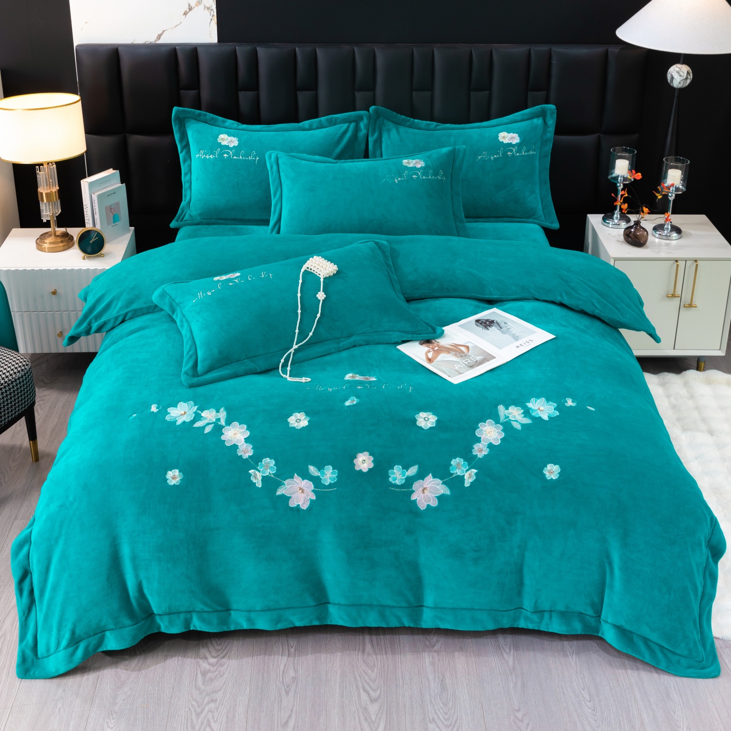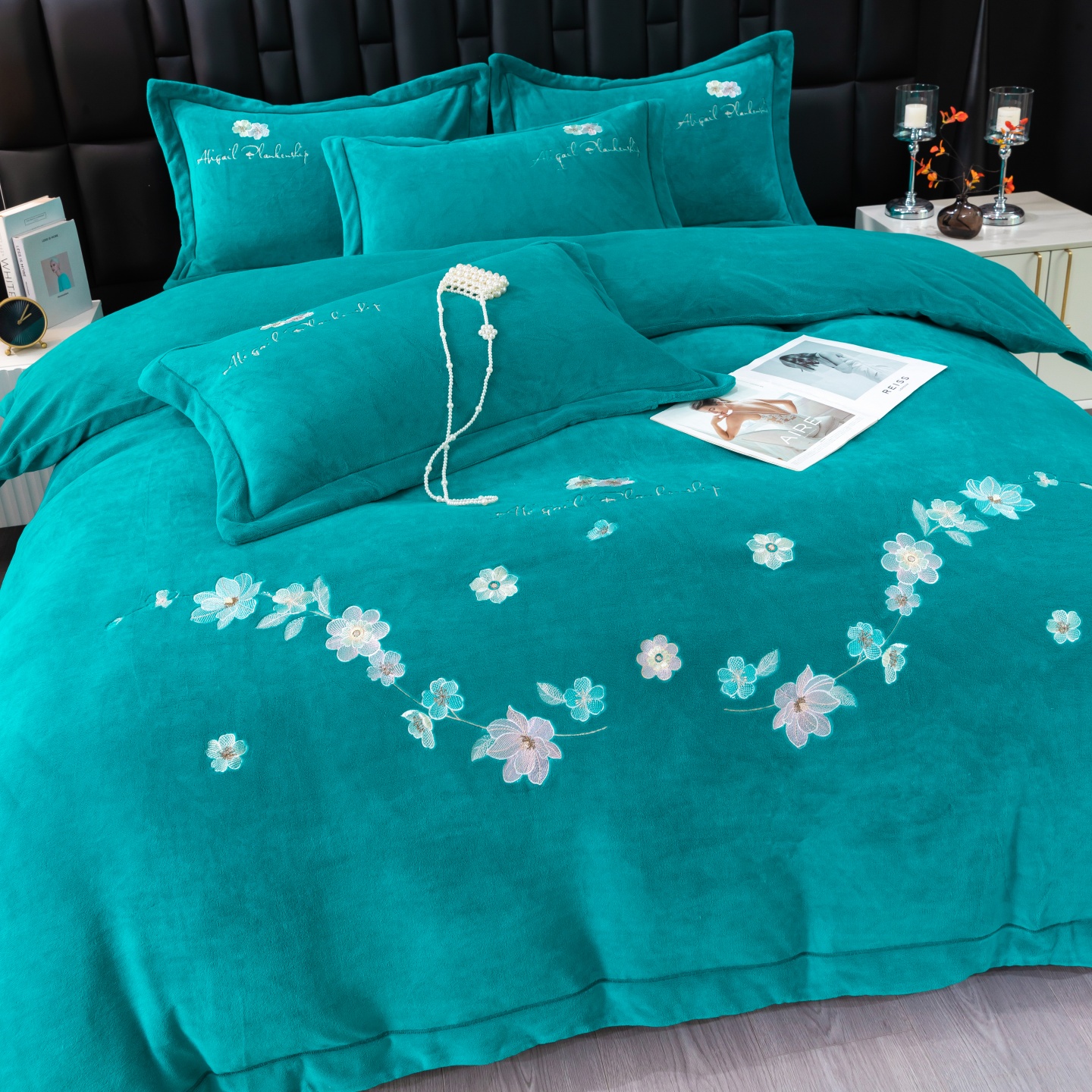商品名称:(总)优姿家纺 2025新款10斤牛奶绒宽边绣花保暖四件套-花季