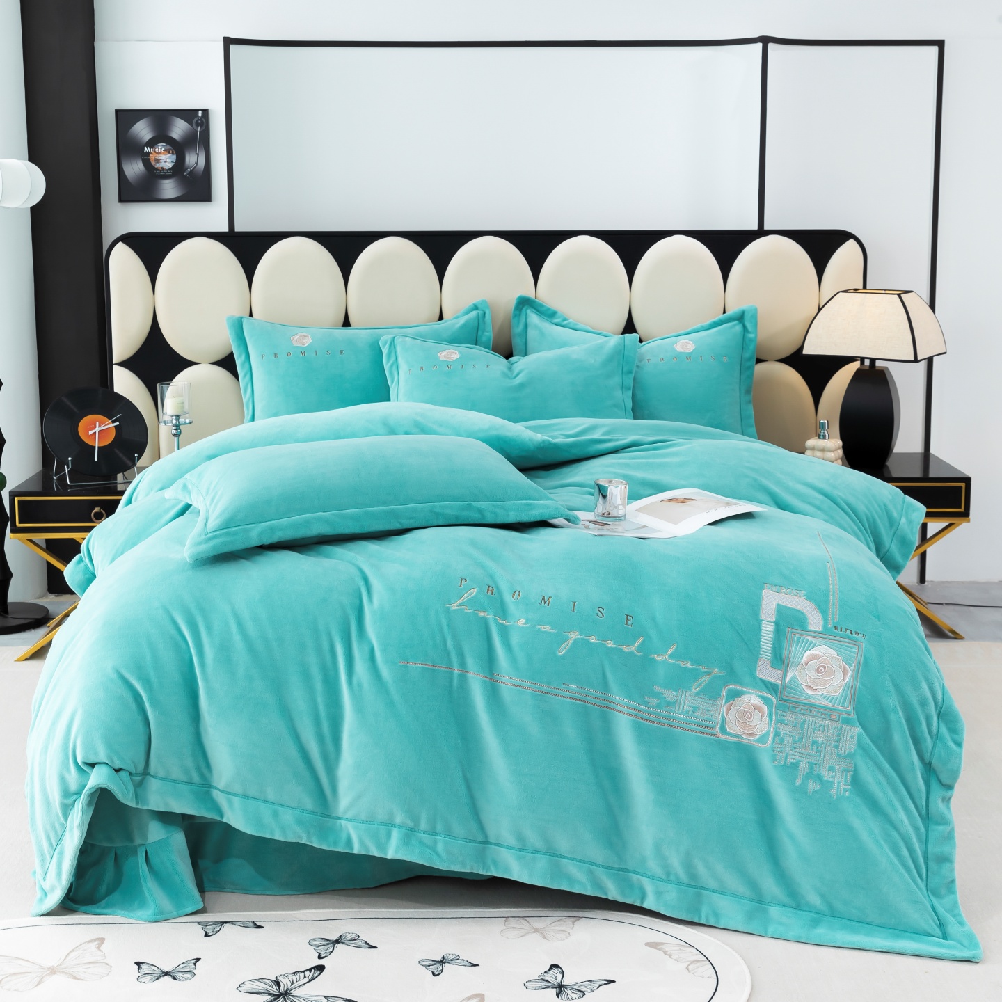 优姿家纺 2025新款10斤牛奶绒宽边绣花保暖四件套-简单生活 简单生活-天兰