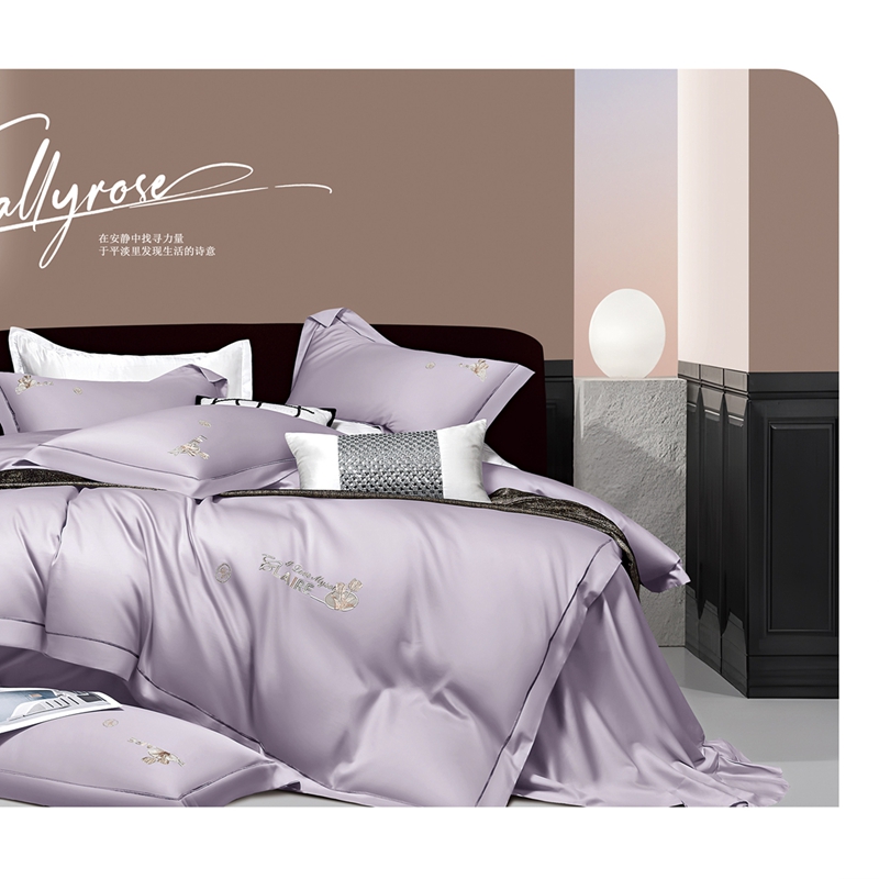 2025新款60s支贡缎长绒棉刺绣花四件套纯棉全棉100%棉轻奢风四件套 米拉-薰衣紫