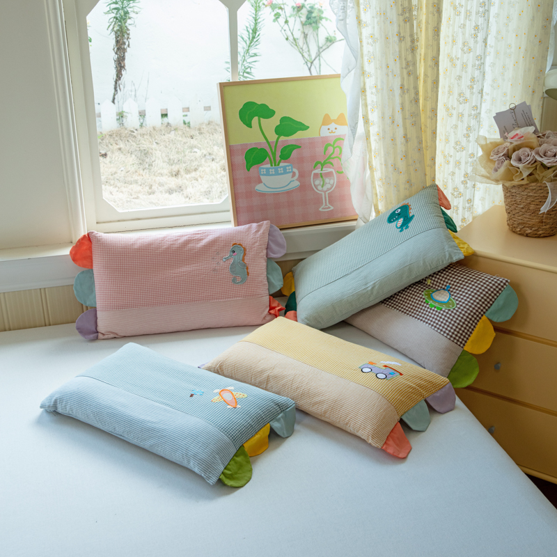 (总)卡芙芯类馆 2025新款全棉水洗棉贴布绣卡通枕芯枕头,组合图仅供展示不可下单,小飞船,小飞机,小海马,小火车,小恐龙