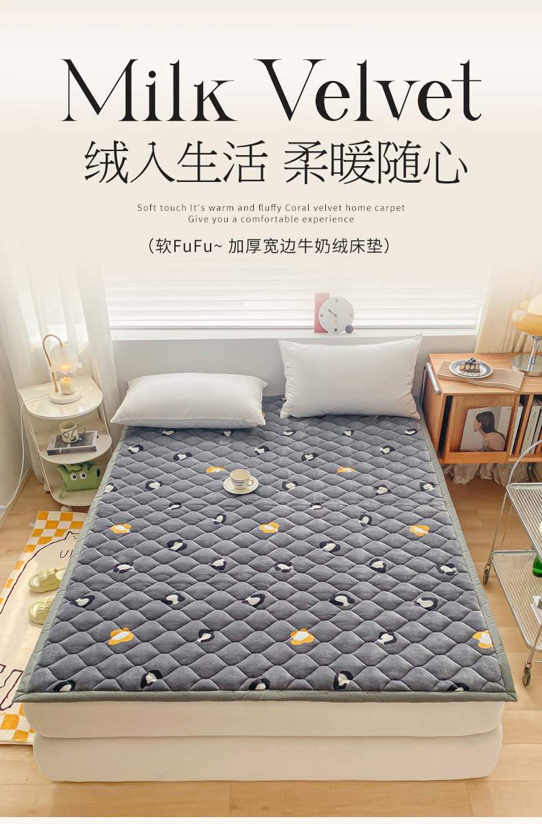 (总)索弗莱家纺 2025新款全消光牛奶绒学生床垫可水洗机洗床护垫床褥子,爱心斑马,北斗星,北极地带,草莓,灰白格,柯基,百变维尼,快乐米奇,史迪仔,太空米奇,跳跳虎,小粉兔,星空,星愿,幸福点点,驼色,豆沙,灰色