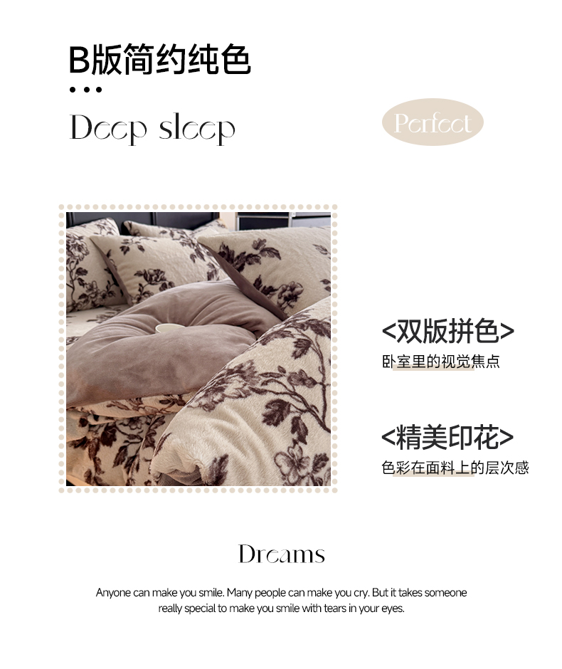 商品名称:慕梵家居 2025新款亲肤舒适兔绒床笠款四件套 夜阑花魅