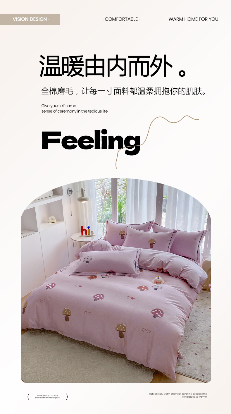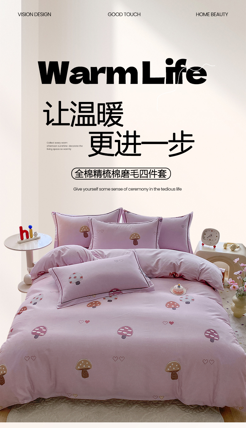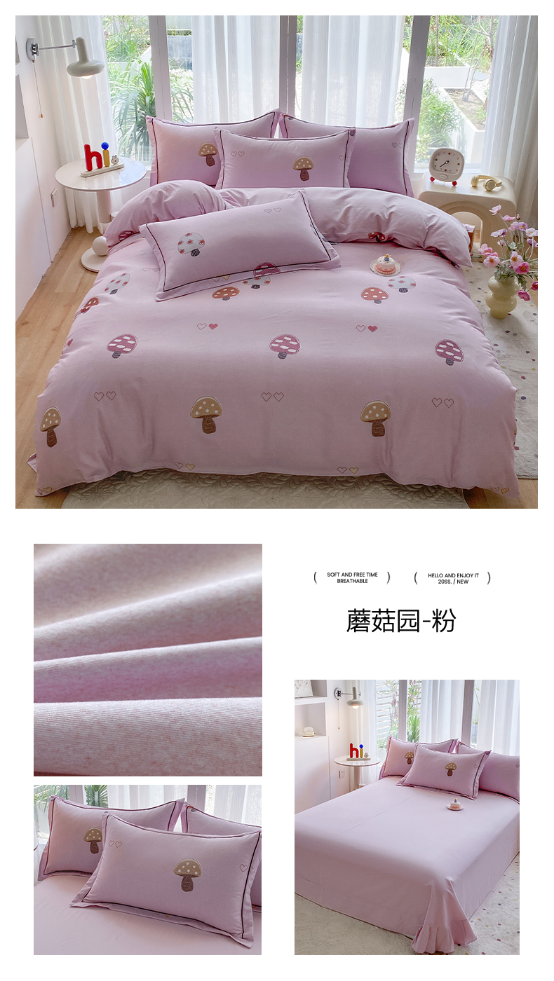 当前位置: 91家纺网 > 商品网购 > 床品套件 > 四件套 > 普通磨毛四件套 > 眷恋家纺 2025新款秋冬超柔全棉精梳棉磨毛三件套四件套 蘑菇园-粉(有小号)
