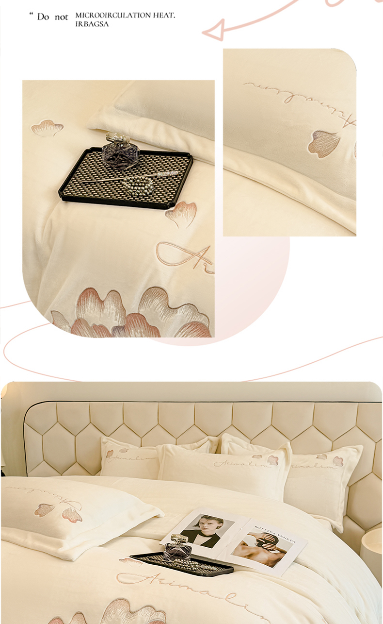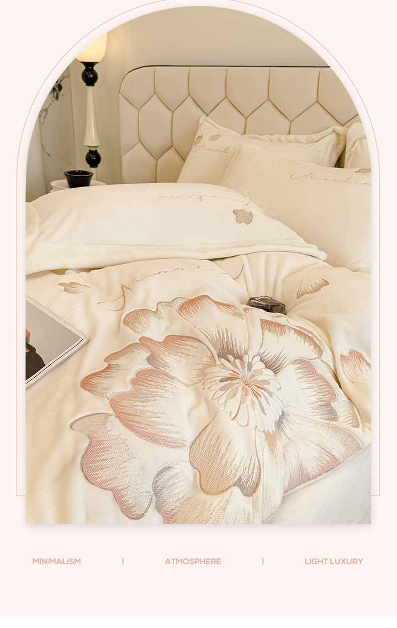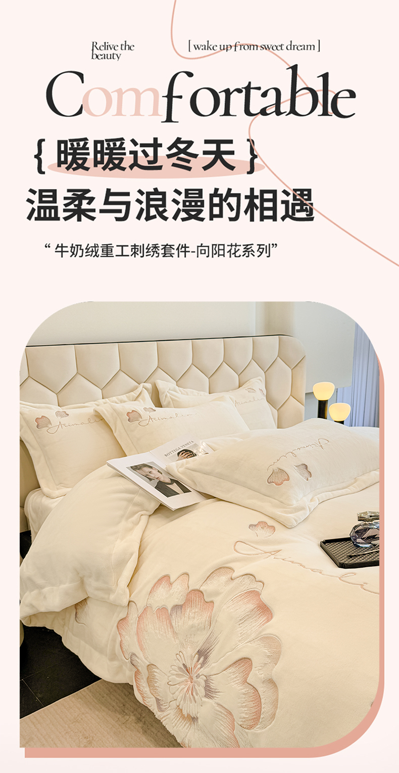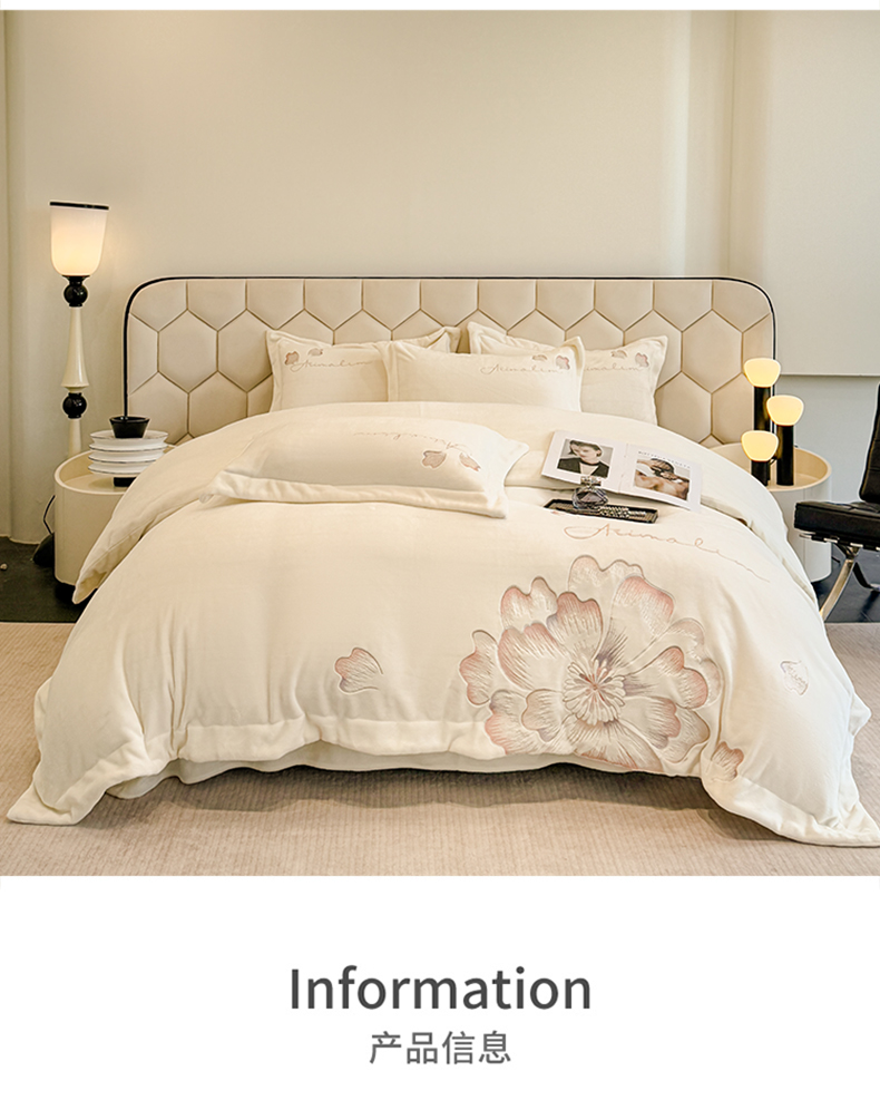 商品名称:狂想家 2025新款刺绣牛奶绒四件套向阳花系列 向阳花-暖冬白