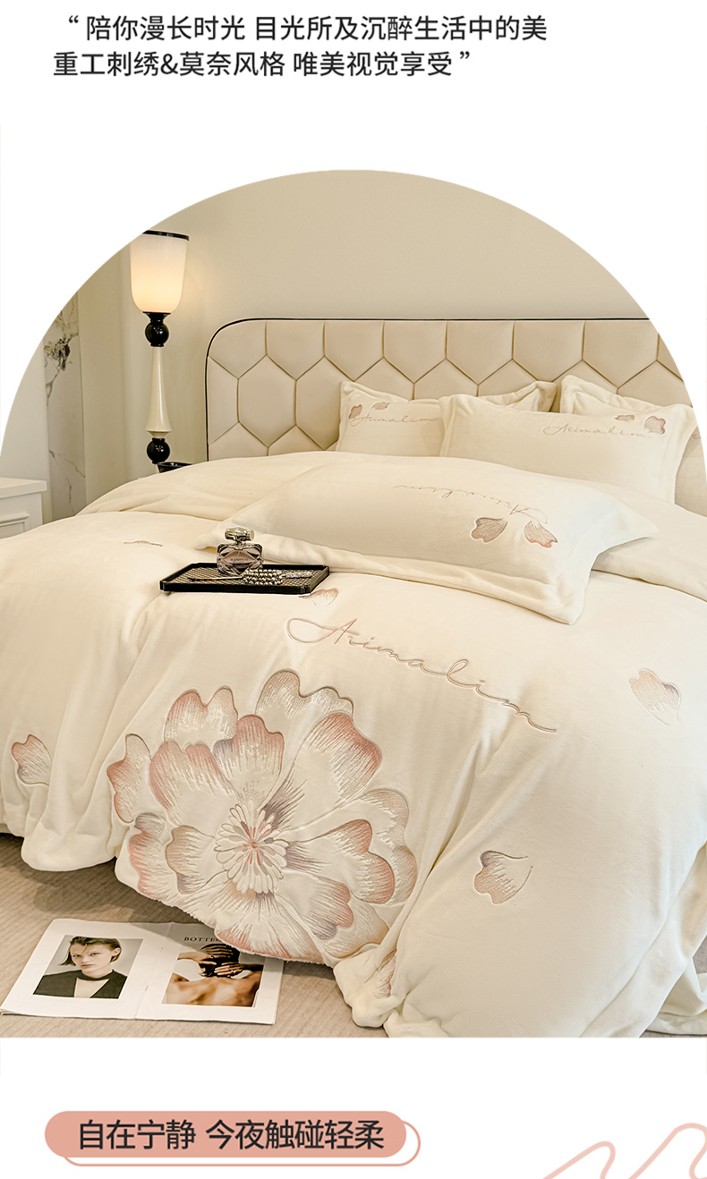 (总)狂想家 2025新款刺绣牛奶绒四件套-安琪儿,安琪儿-宾利蓝,安琪儿-高级灰,安琪儿-暖冬白,安琪儿-浅驼色,安琪儿-浅玉粉,安琪儿-轻奢咖,安琪儿-松石绿,安琪儿-香芋紫