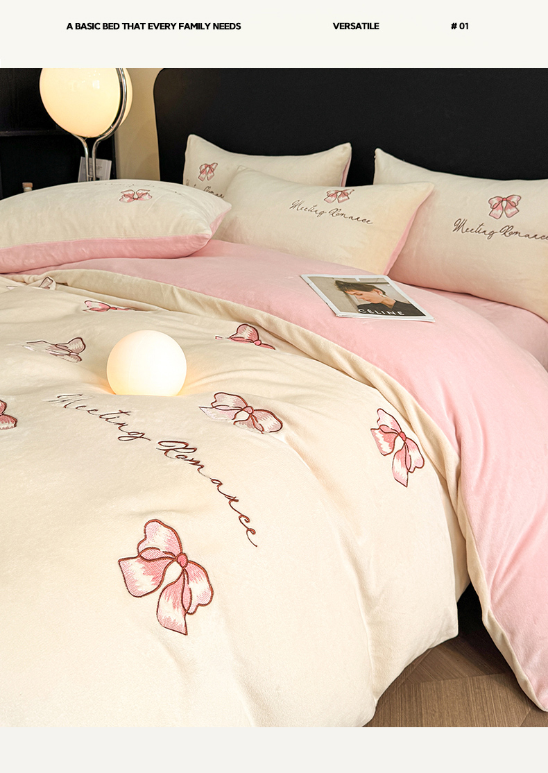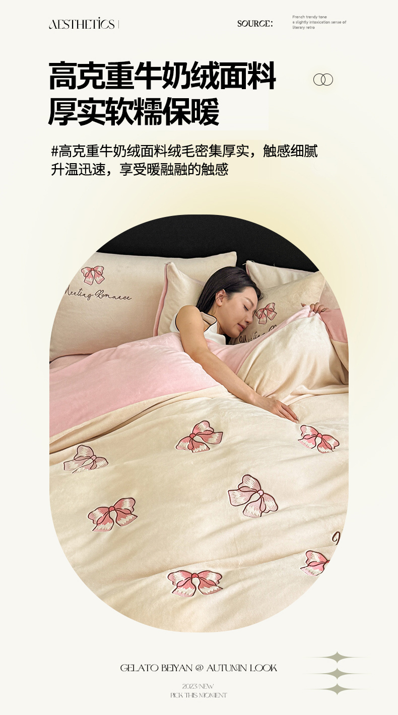 (总)首尔家纺 2025新款小清新牛奶绒刺绣四件套