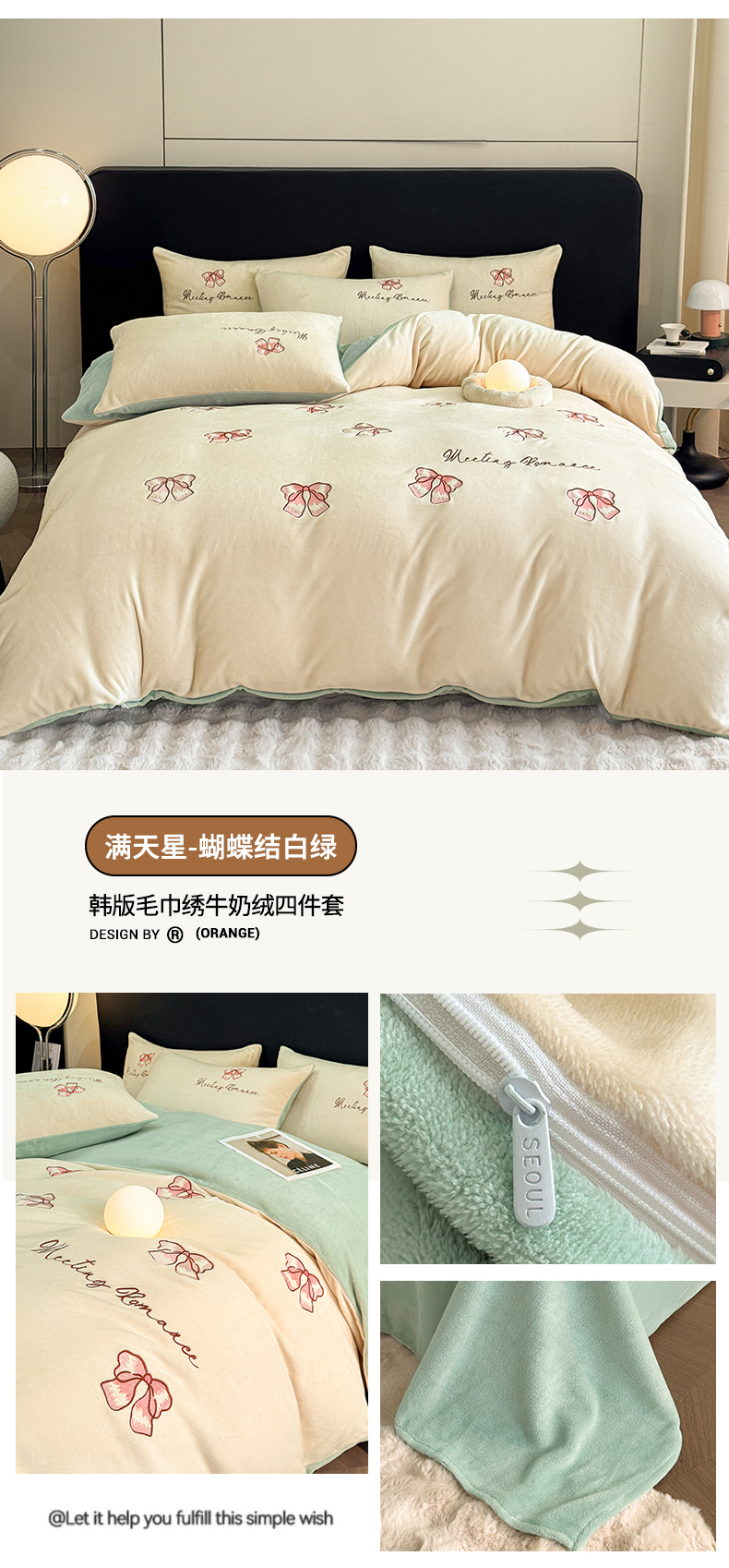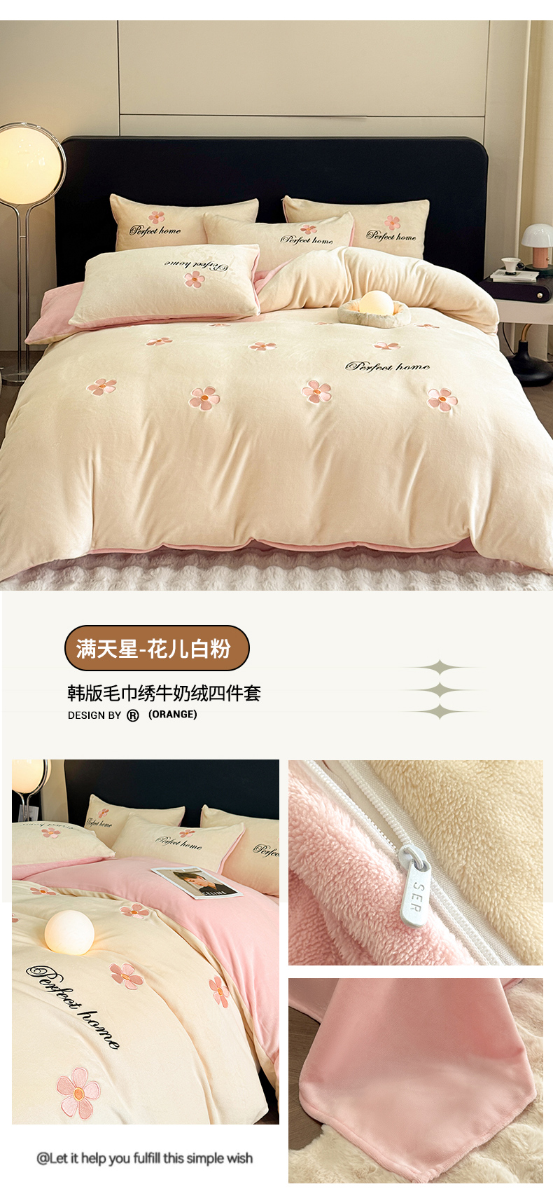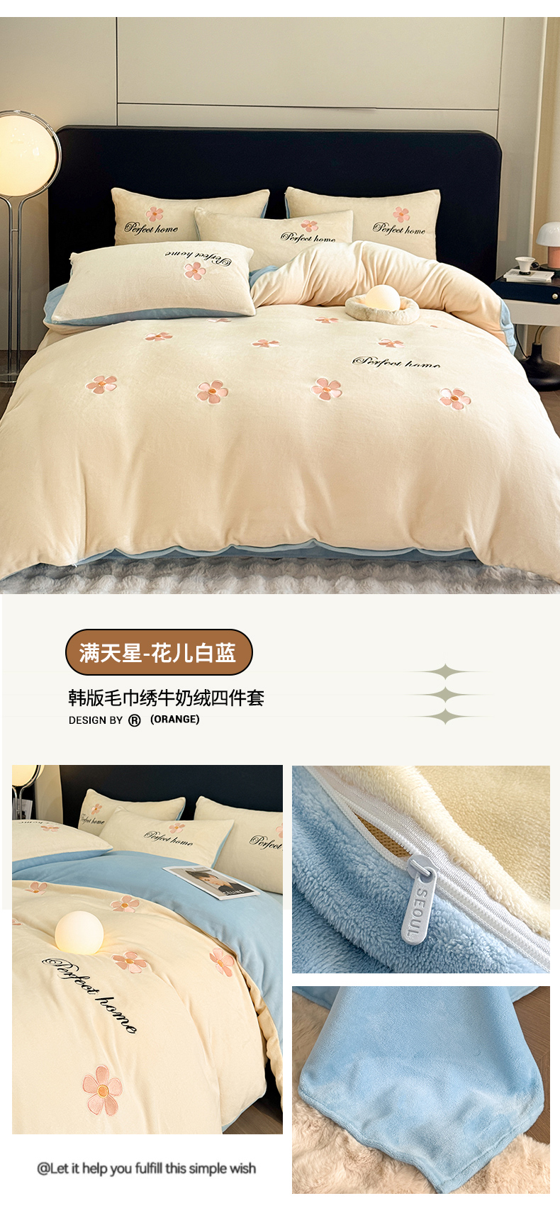 商品名称:(总)首尔家纺 2025新款小清新牛奶绒刺绣四件套