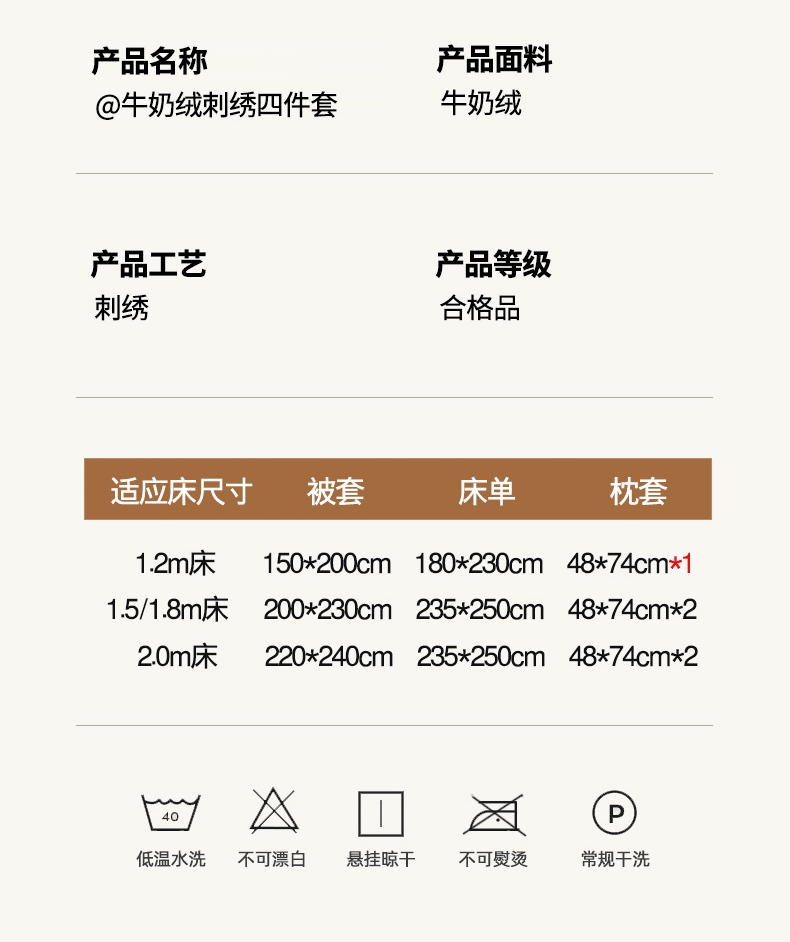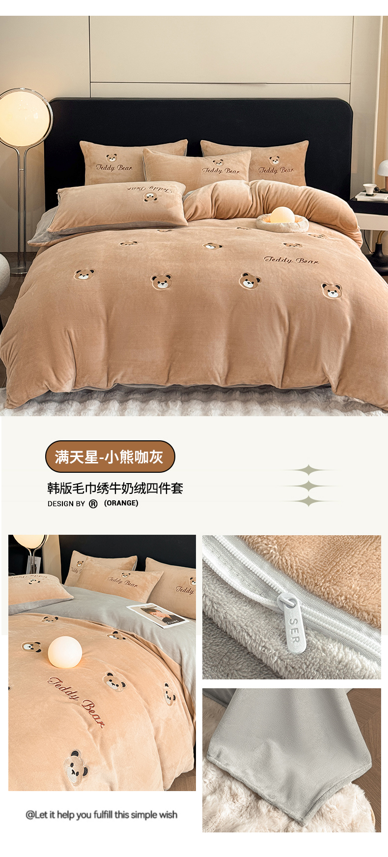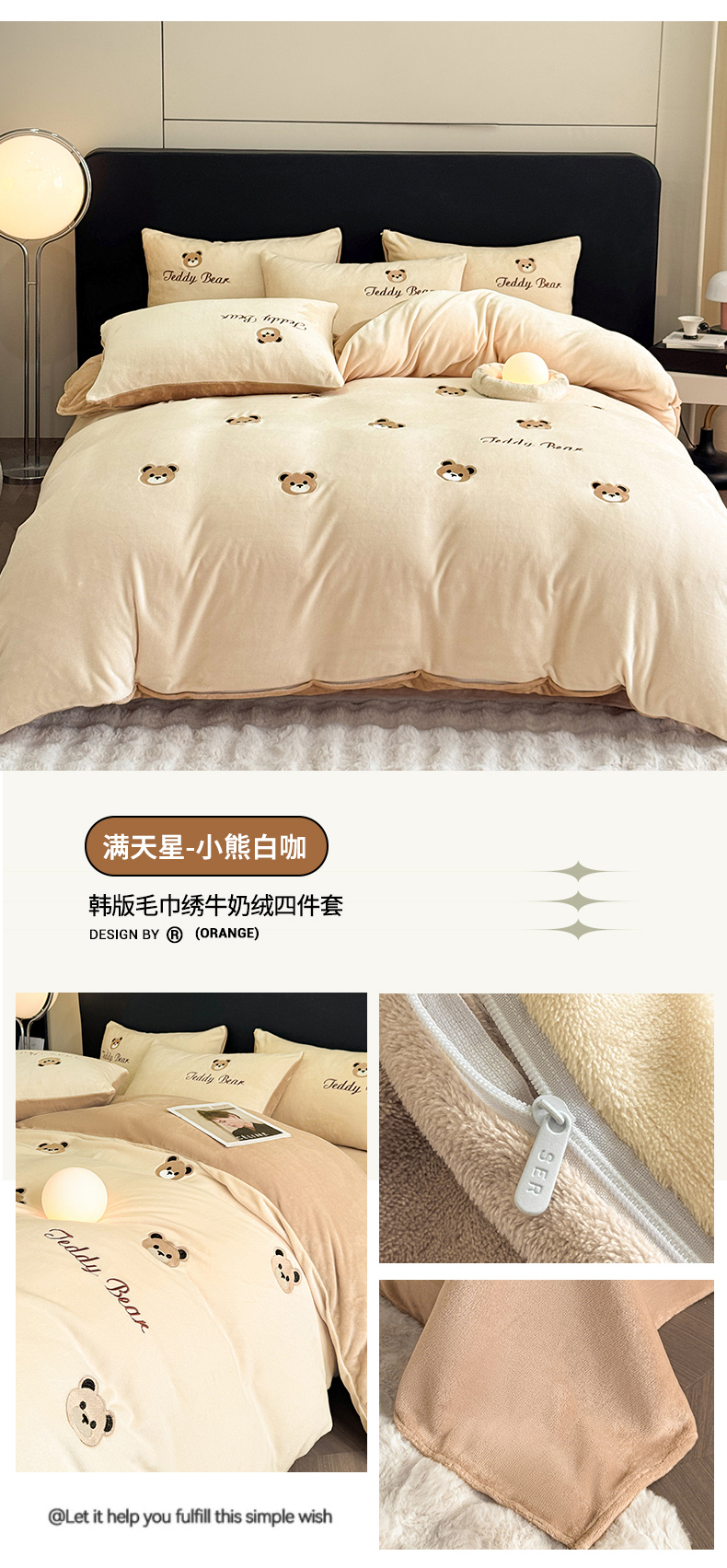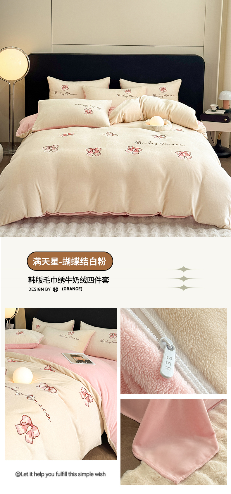 商品名称:(总)首尔家纺 2025新款小清新牛奶绒刺绣四件套