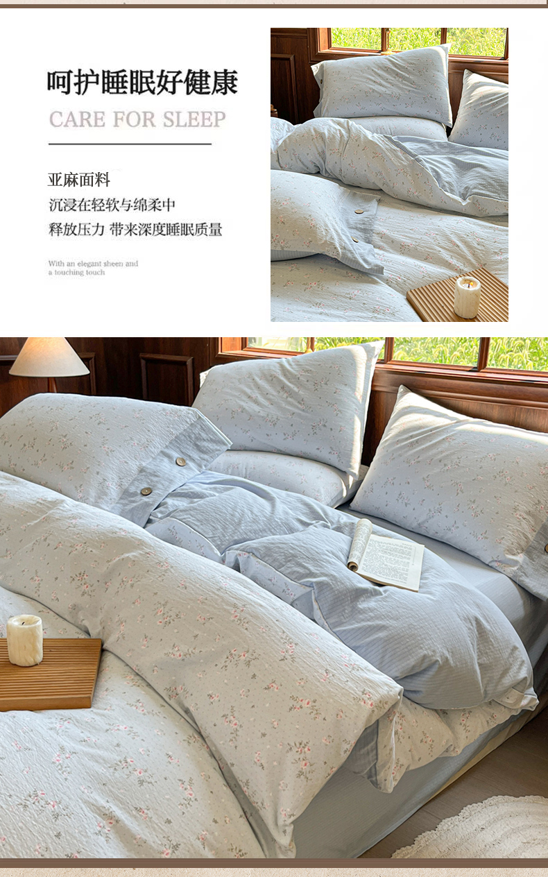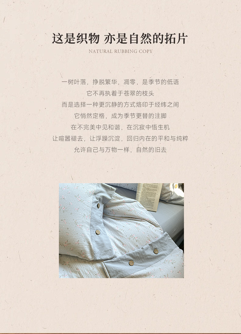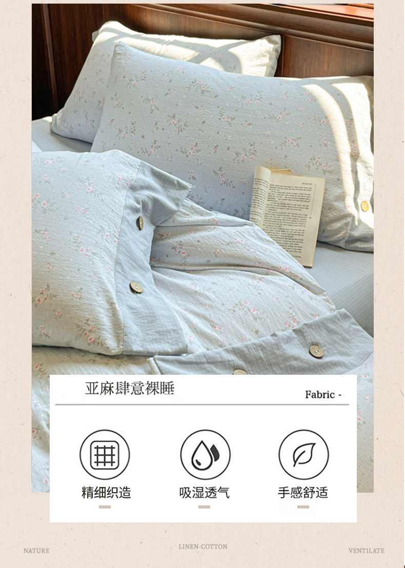 当前位置: 91家纺网 > 商品网购 > 床品套件 > 四件套 > 其它四件套 > 爱彼家纺 2025新款亲肤舒适原麻亚麻水洗棉四件套-纽扣款 蓝雾漫枝