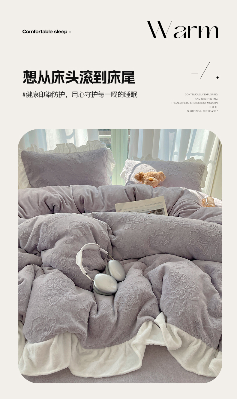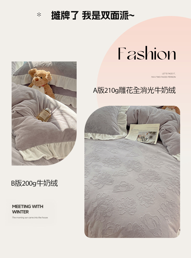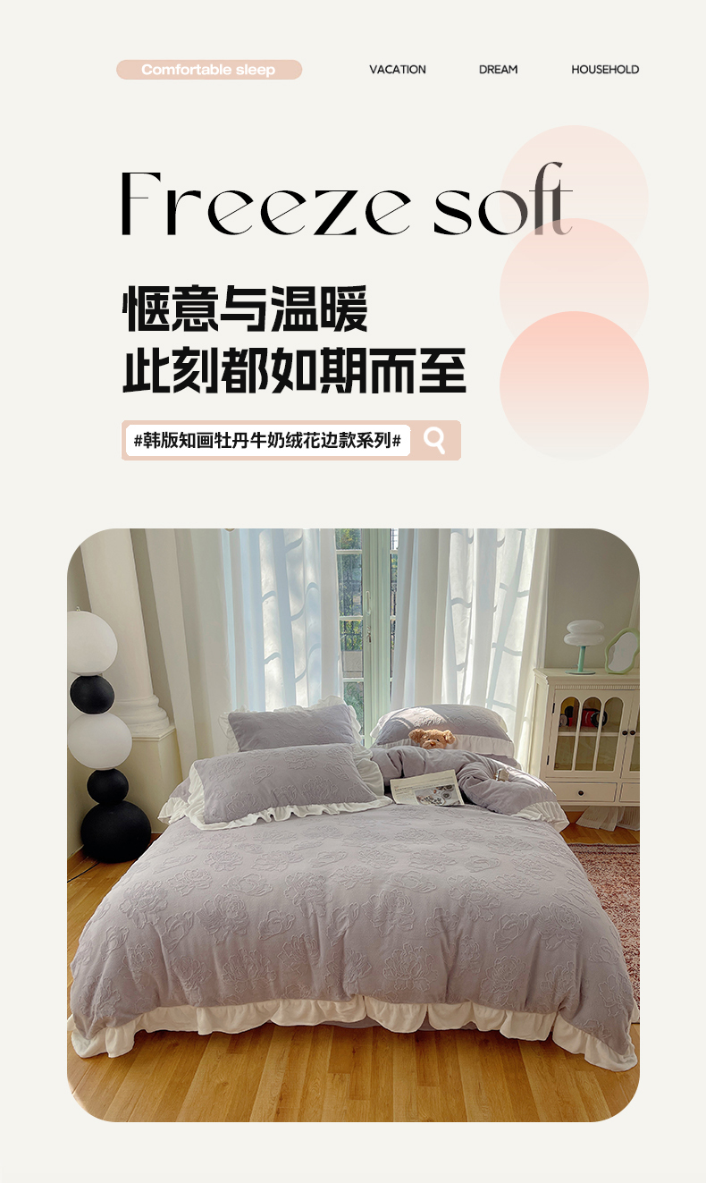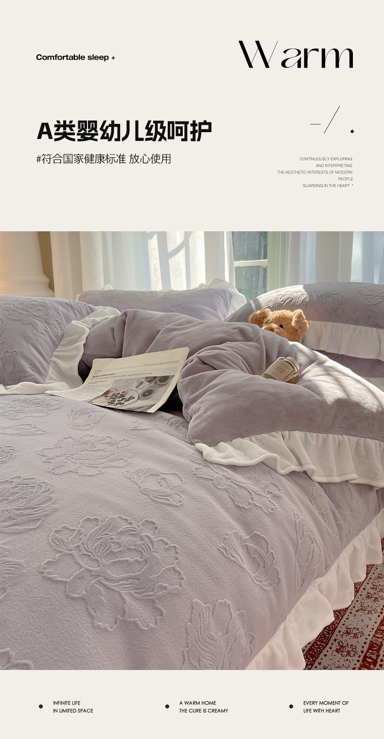 当前位置: 91家纺网 > 商品网购 > 床品套件 > 四件套 > 牛奶绒四件套 > 六巷胡同 2025新款韩版知画牡丹A类牛奶绒花边款四件套 知画牡丹-紫