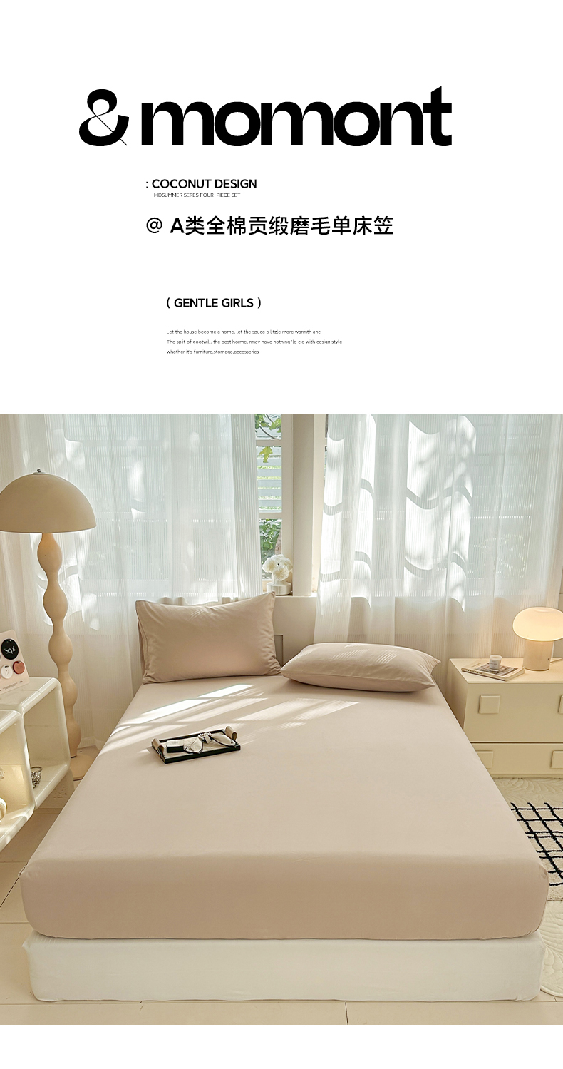 • 91家纺网 家纺一手货源 找家纺 丽美人家纺 2025新款全棉纯棉磨毛单床笠 床笠单件 亚麻咖