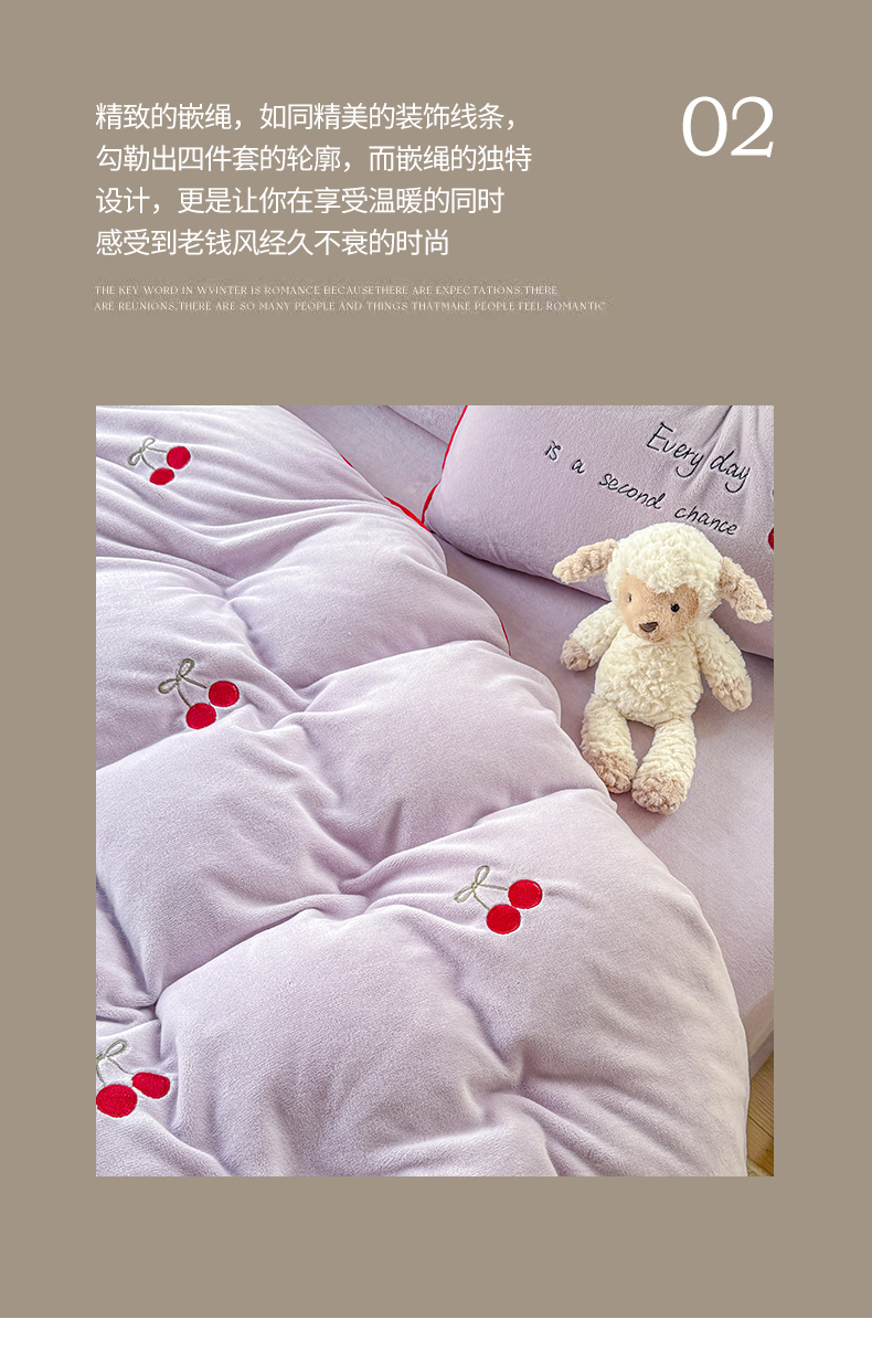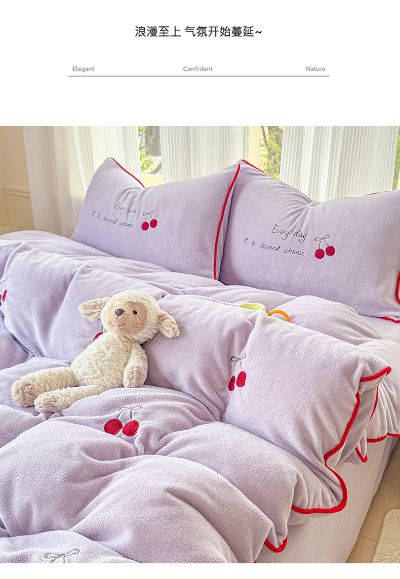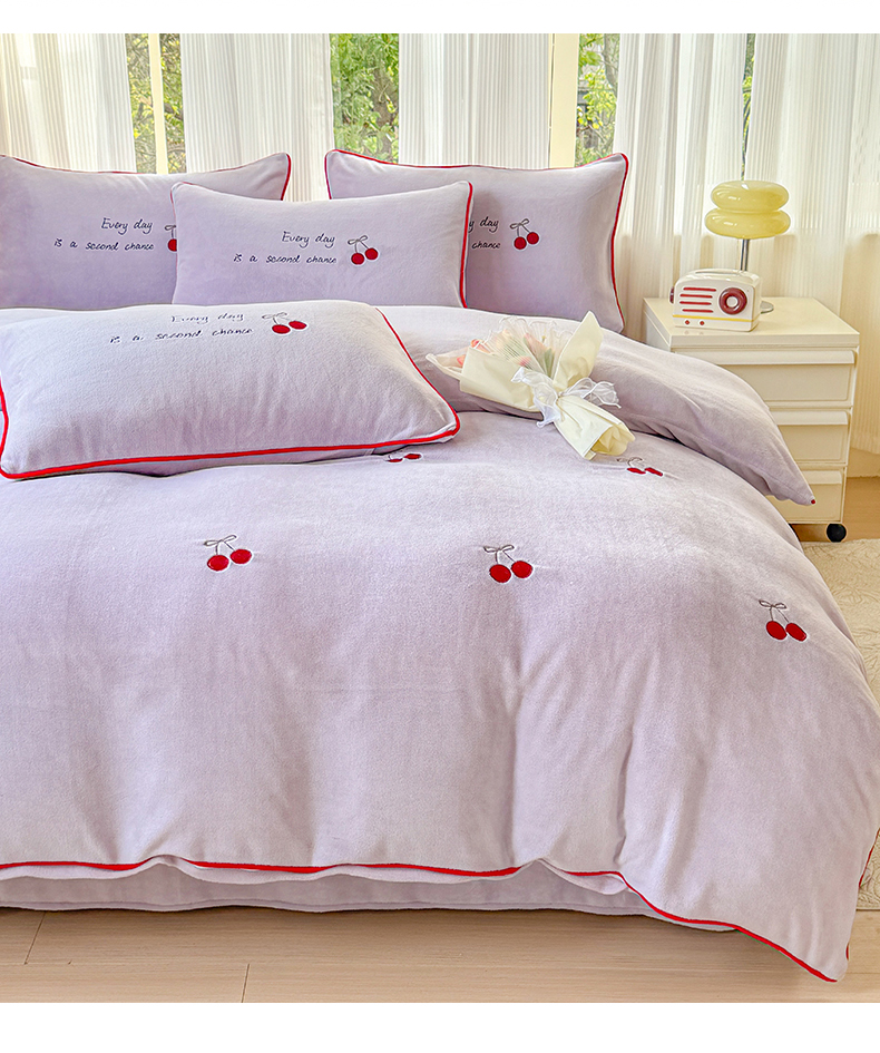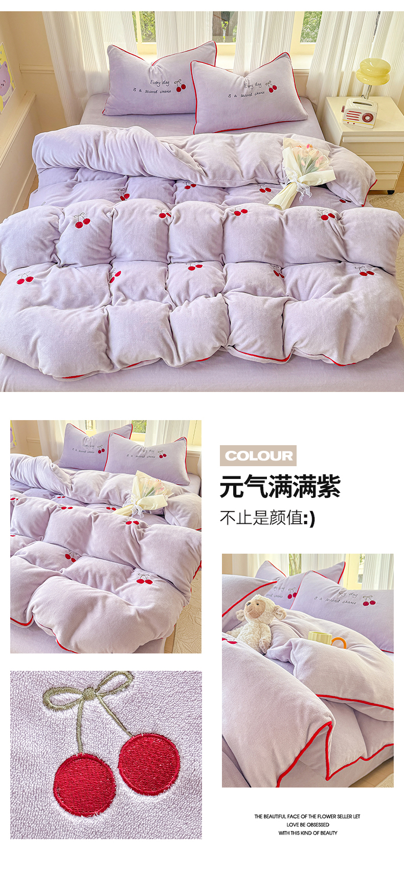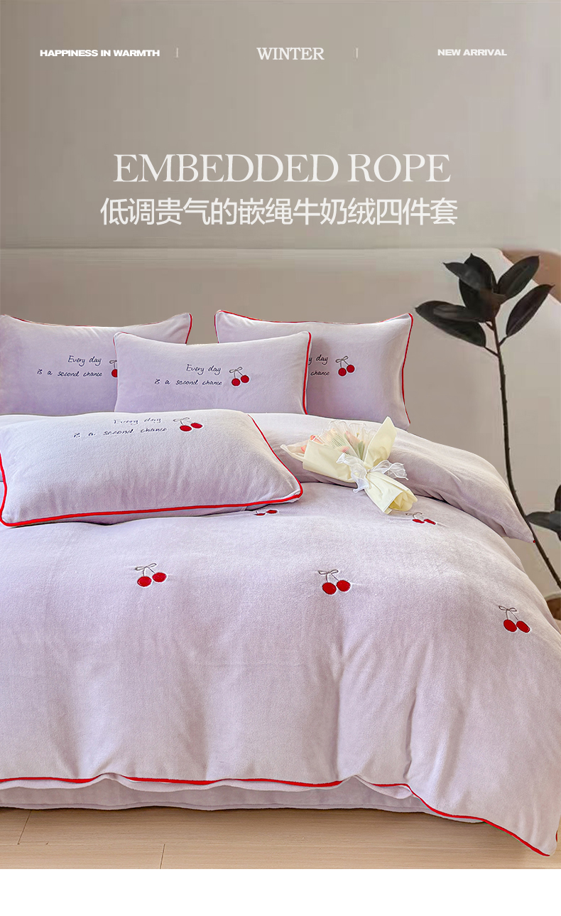 当前位置: 91家纺网 > 商品网购 > 床品套件 > 四件套 > 牛奶绒四件套 > KA家纺 2025新款绣花嵌绳牛奶绒四件套-元气满满系列 元气满满紫