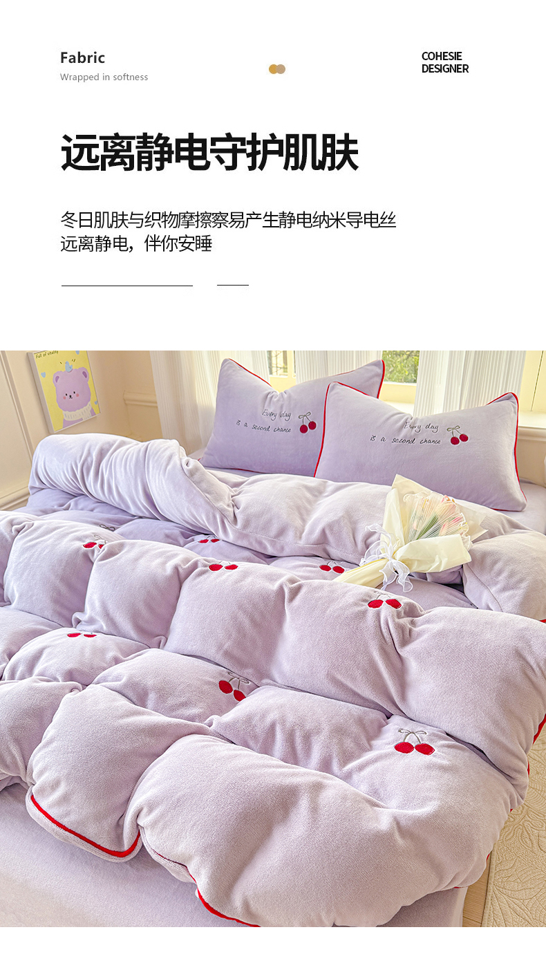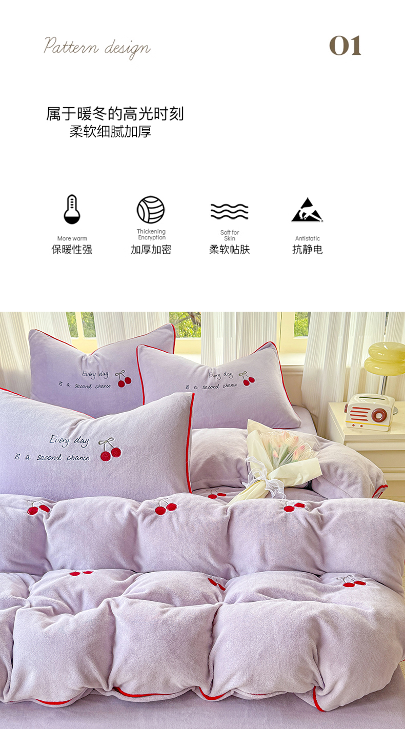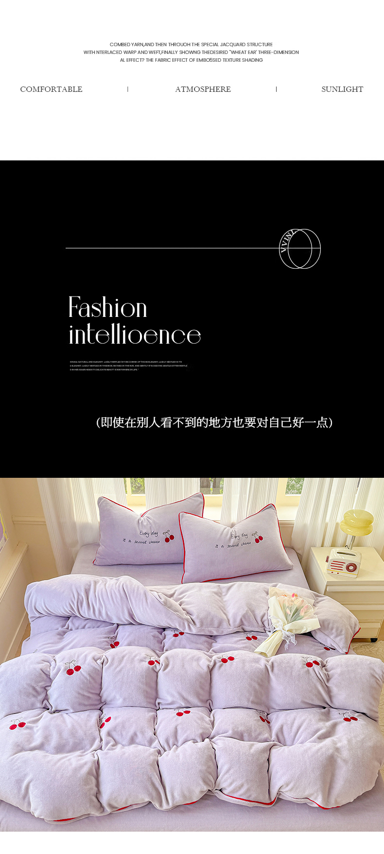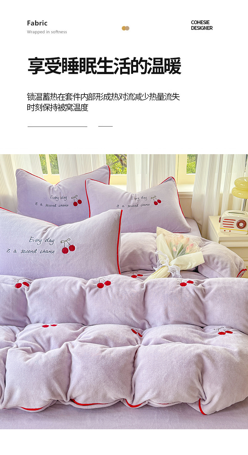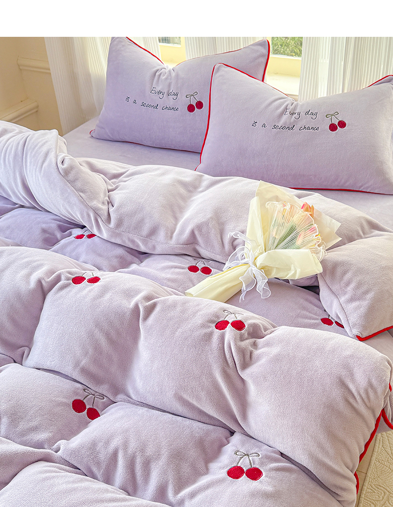 当前位置: 91家纺网 > 商品网购 > 床品套件 > 四件套 > 牛奶绒四件套 > KA家纺 2025新款绣花嵌绳牛奶绒四件套-元气满满系列 元气满满紫