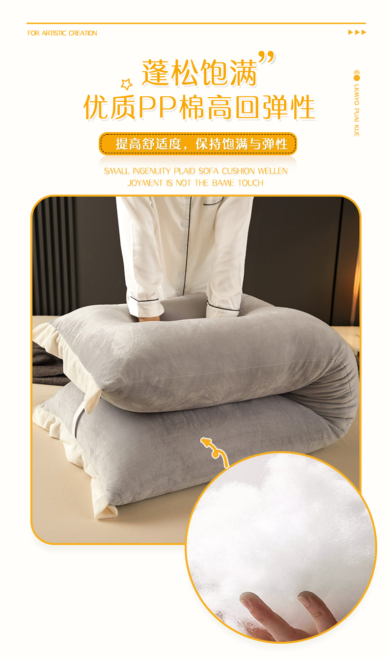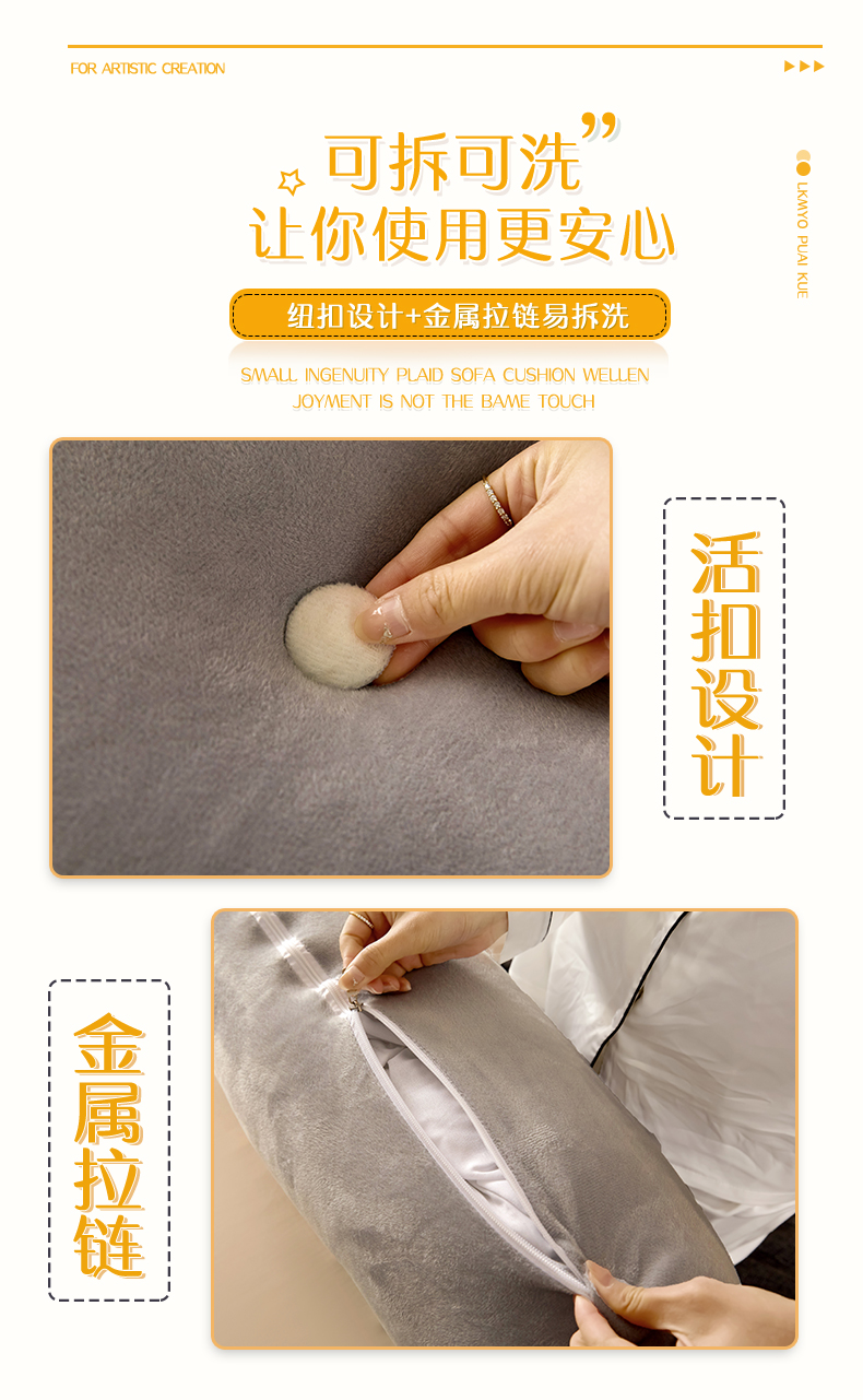 (总)碧尔家居 2025新款简约猫长条机械钉扣水洗棉床头靠枕,米黄,浅蓝,银灰