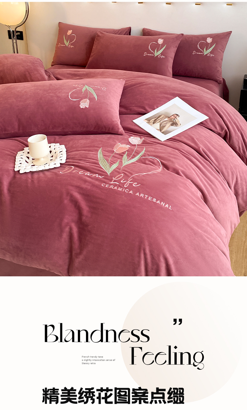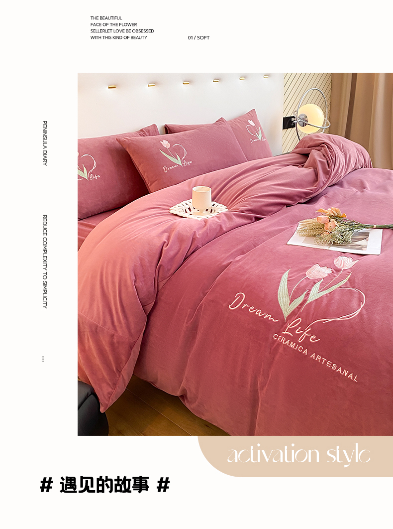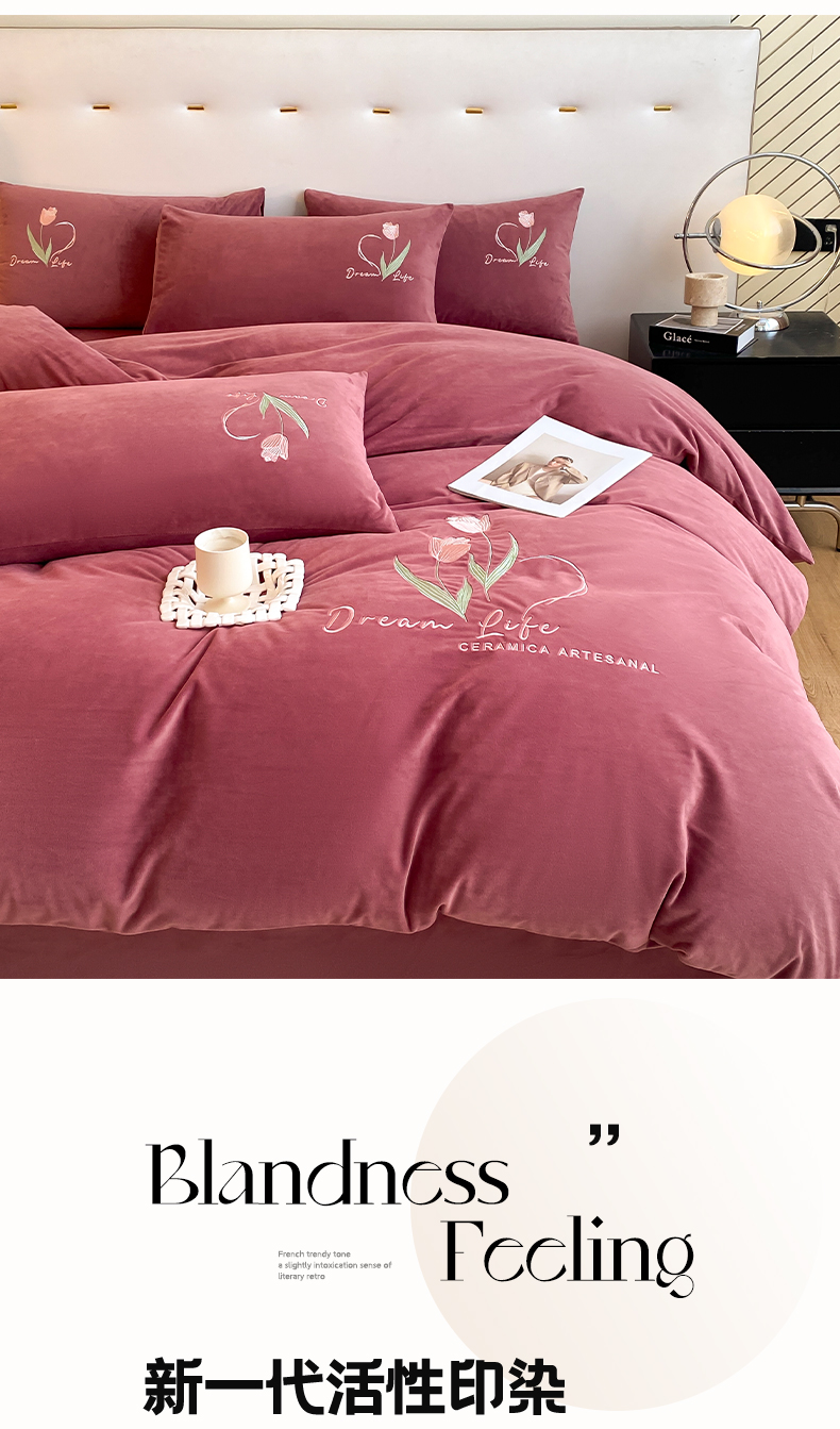 当前位置: 91家纺网 > 商品网购 > 床品套件 > 四件套 > 水晶绒四件套 > 如一 2025新款水晶绒双拼刺绣郁金香系列四件套 郁金香-胭脂粉