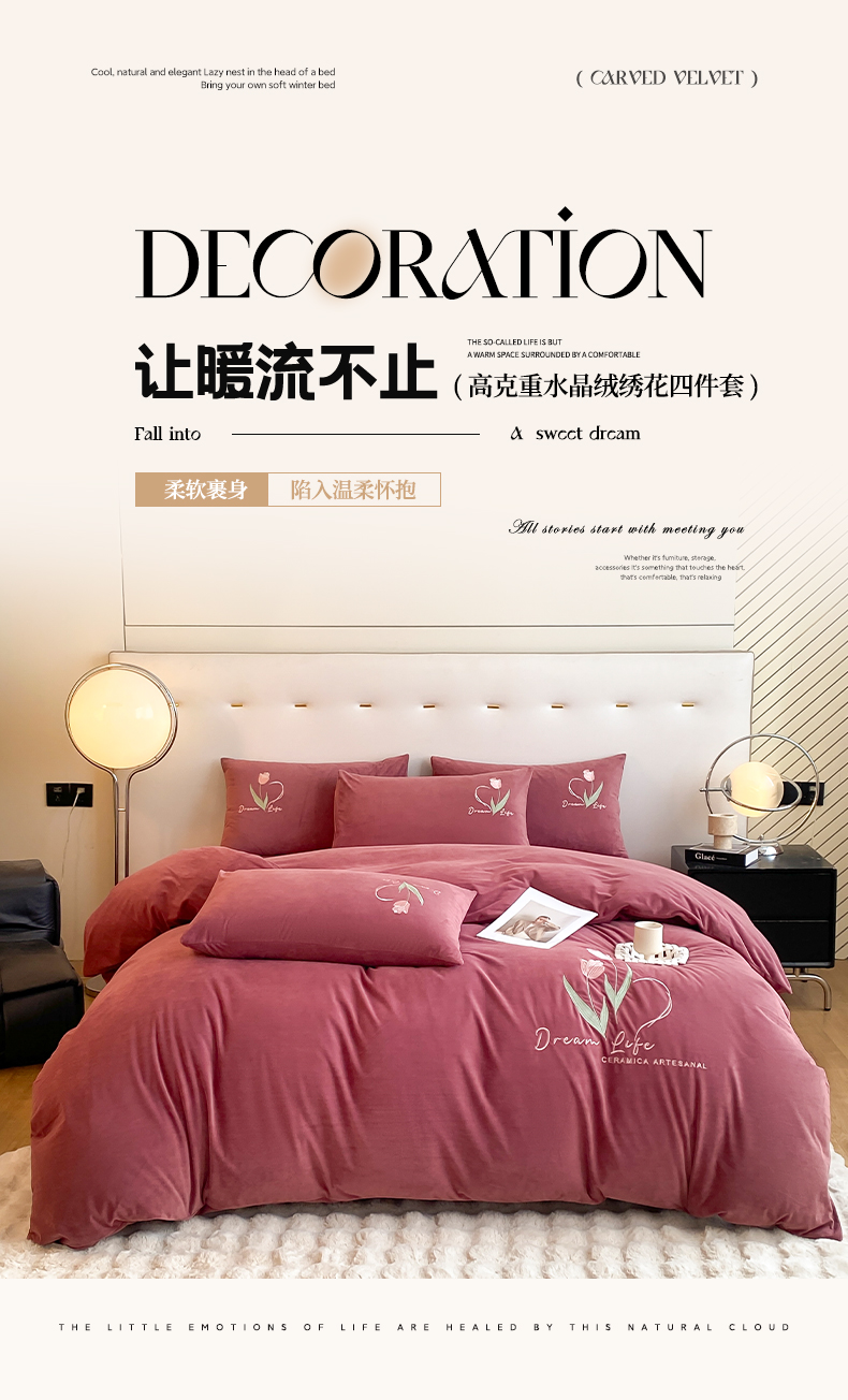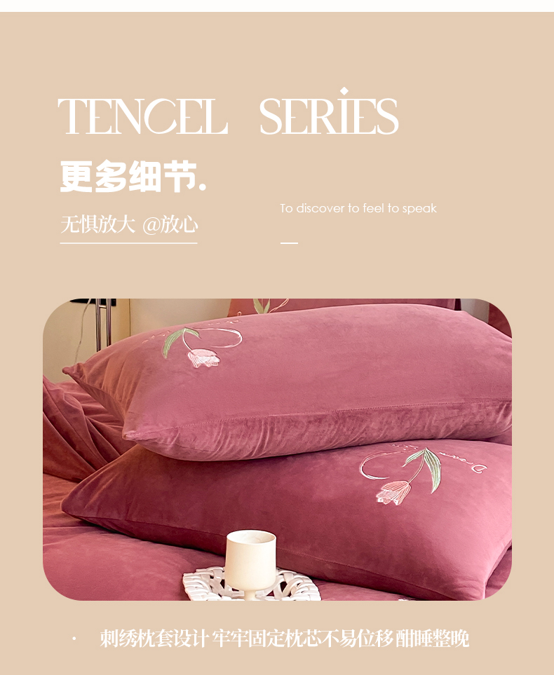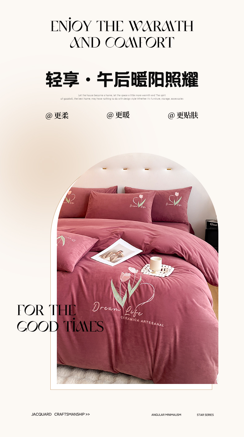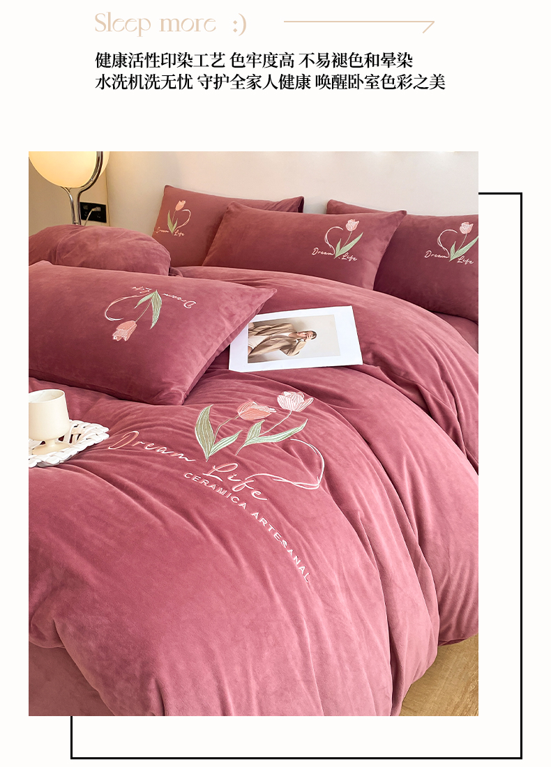 当前位置: 91家纺网 > 商品网购 > 床品套件 > 四件套 > 水晶绒四件套 > 如一 2025新款水晶绒双拼刺绣郁金香系列四件套 郁金香-胭脂粉