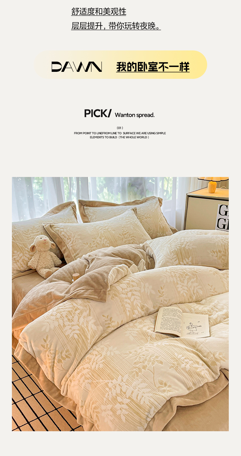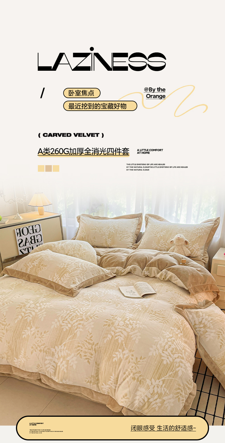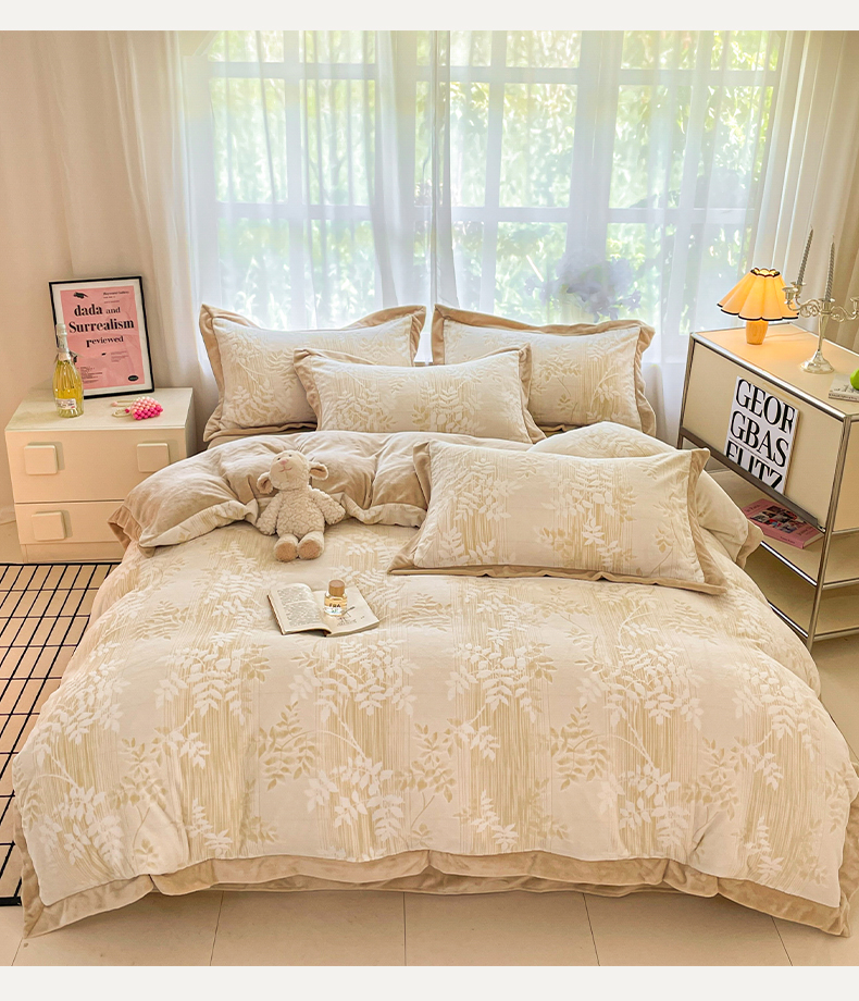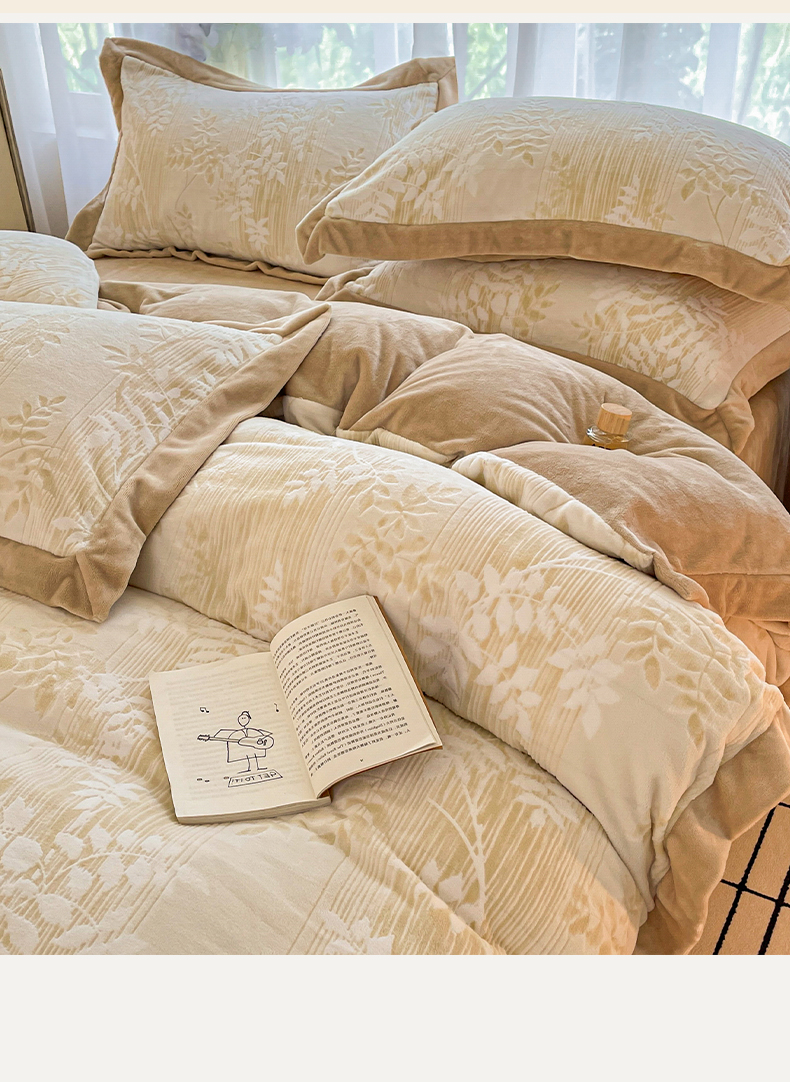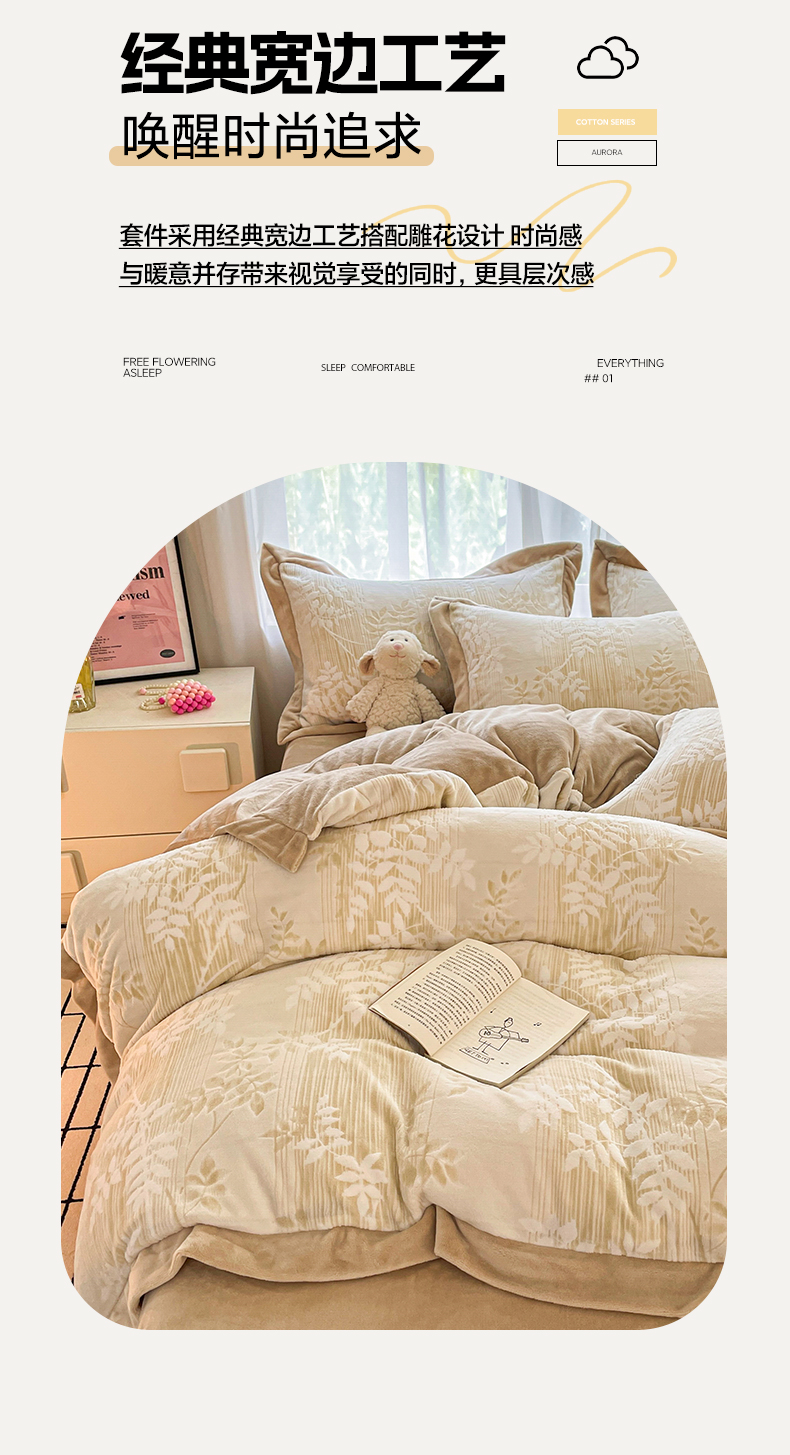 当前位置: 91家纺网 > 商品网购 > 床品套件 > 四件套 > 牛奶绒四件套 > 言一 2025新款A类全消光超柔260G立体雕花牛奶绒加厚法式宽边四件套 时光格韵-灰