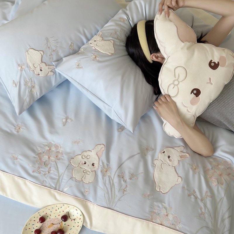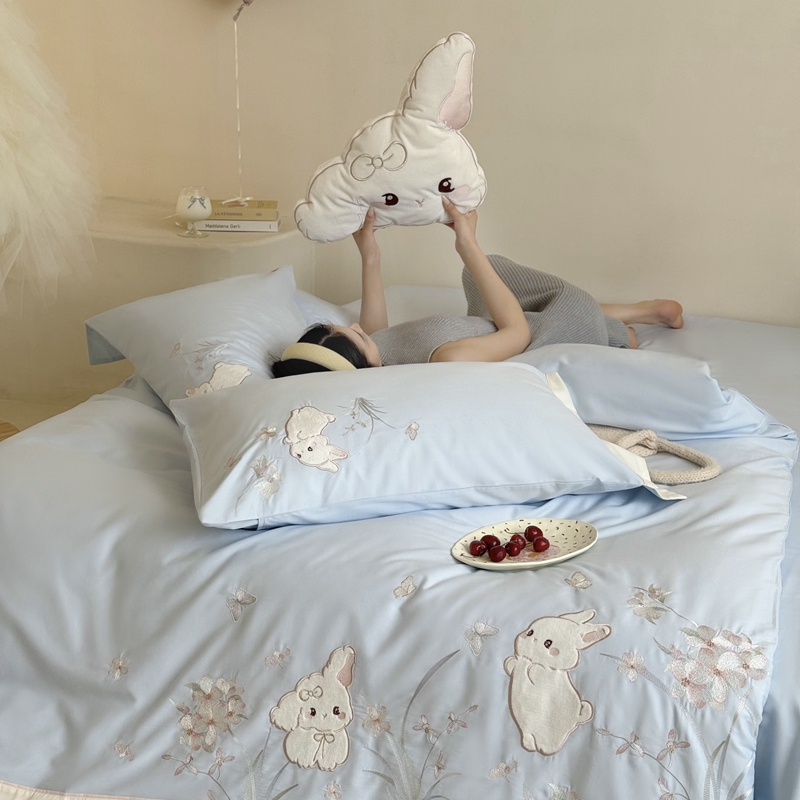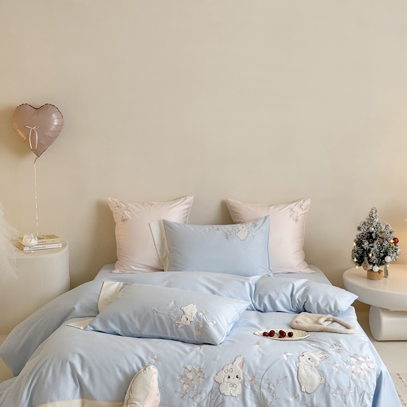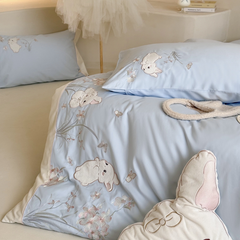 当前位置: 91家纺网 > 商品网购 > 床品套件 > 四件套 > 普通磨毛四件套 > 鹿班家居 2025年秋冬款100S全棉磨毛贴布绣系列——月光兔 标准会员-20元 蓝色