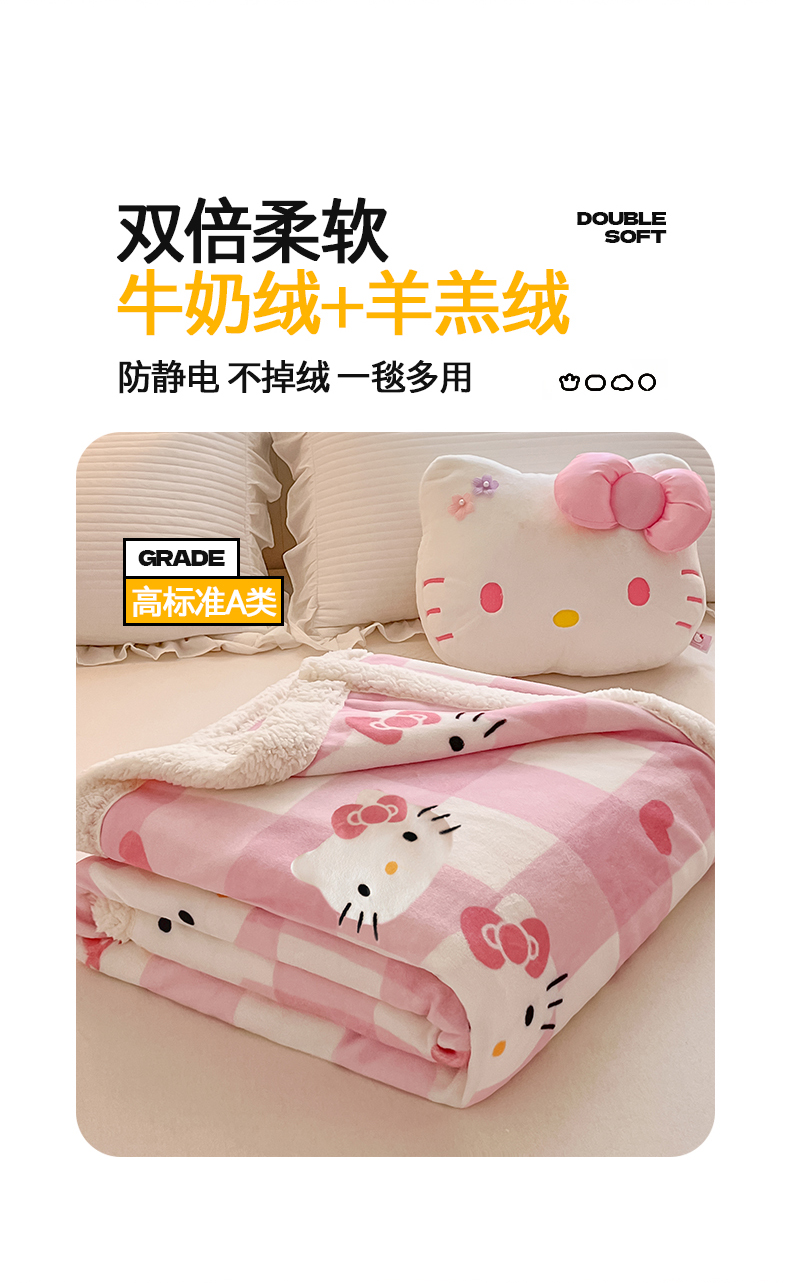 当前位置: 91家纺网 > 商品网购 > 毛毯休闲毯绒毯 > 毛毯 > 金爱家 2025新款A类三丽鸥正版授权少女可爱卡通加厚牛奶绒羊羔绒毛毯多功能四季毛毯毯子 绒毛毯-MT三丽鸥粉格爱心KT