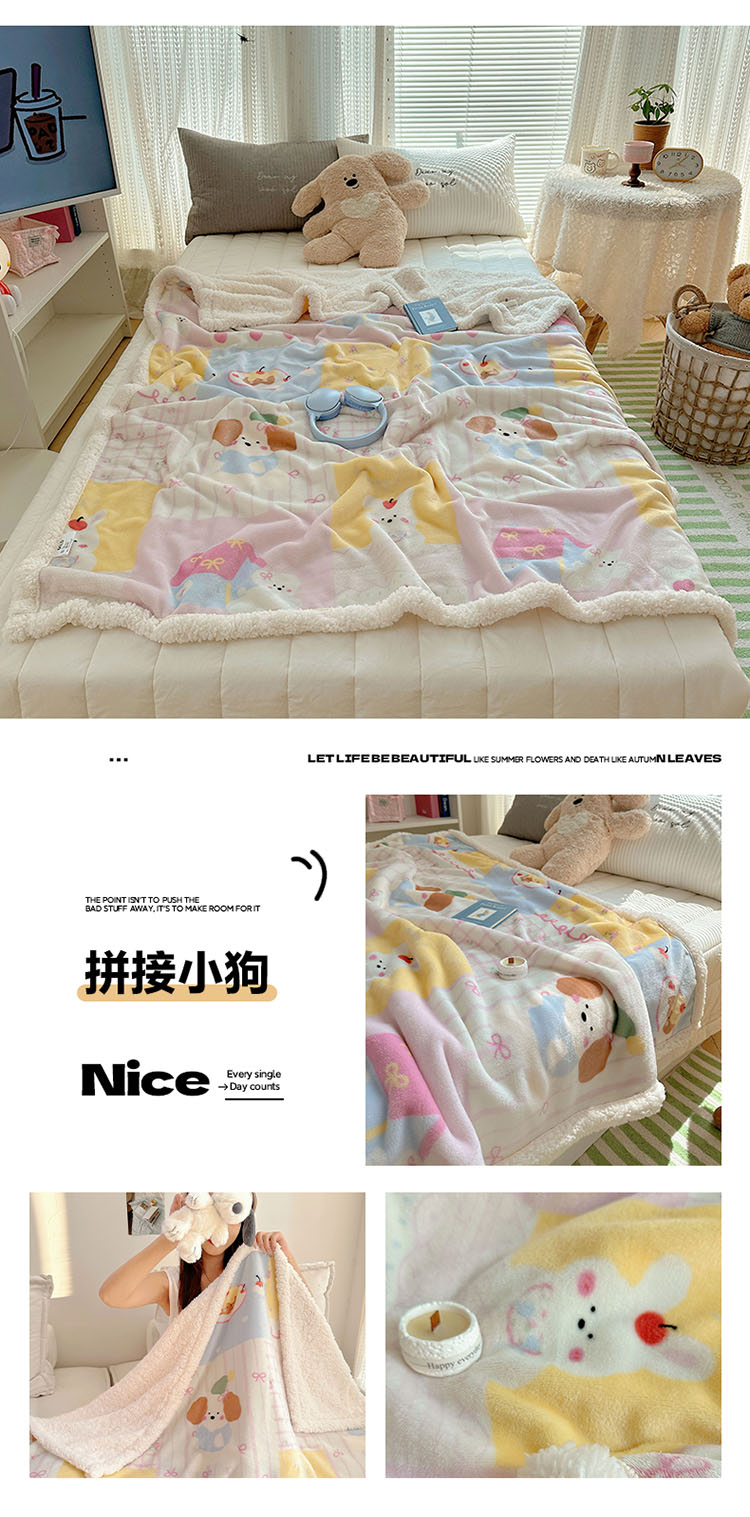 商品名称:美乐迪 2025新款牛奶绒羊羔绒毛毯 拼接小狗