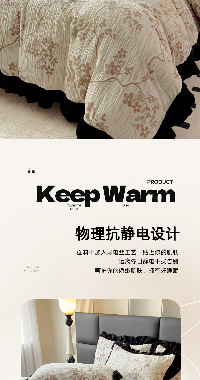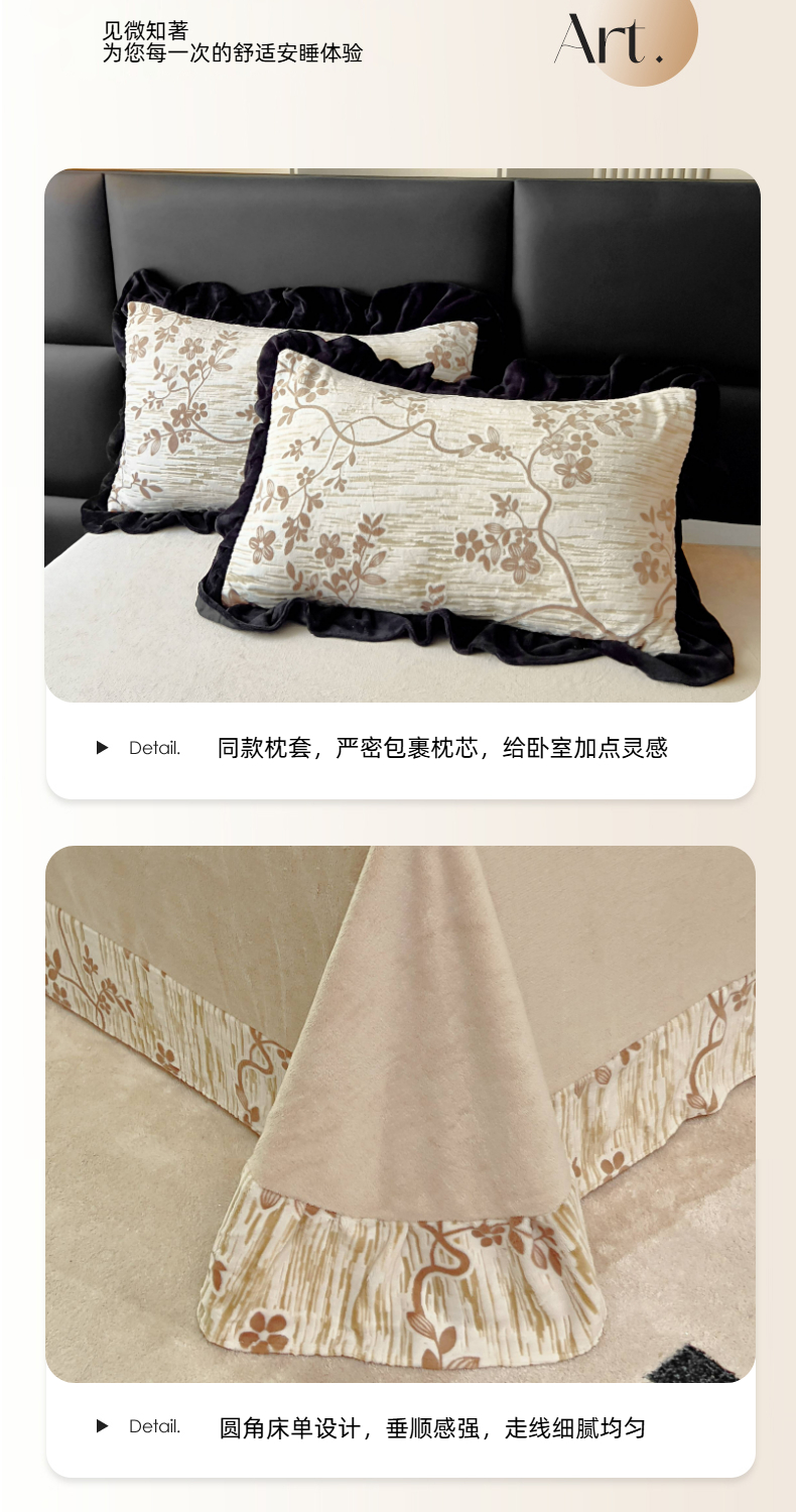 (总)找底底家纺 2025新款花边9-10斤牛奶绒床盖款四件套,花妖,梨花落,小樱桃,紫蔻