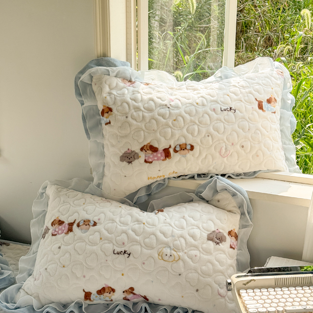 (总)禧缘家纺(原梦想家) 2025新款夹棉双层花边牛奶绒枕套系列,浪漫花开,布布乐园,步步生花,狗狗岛屿,蓝铃风语,落日云舒,猫咪心事,摩卡小镇,雾都茶花,杏花微雨