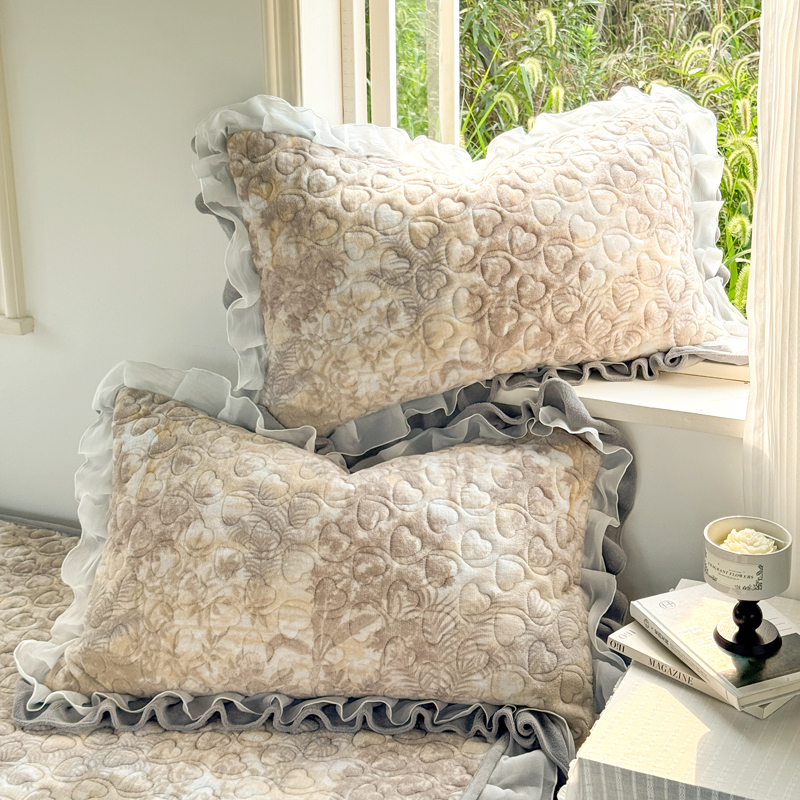禧缘家纺(原梦想家) 2025新款夹棉双层花边牛奶绒枕套系列 杏花微雨