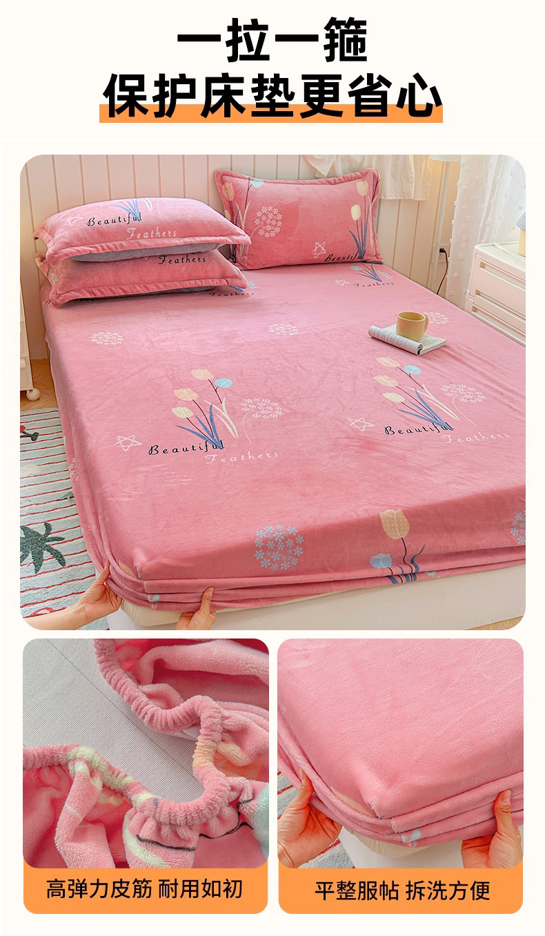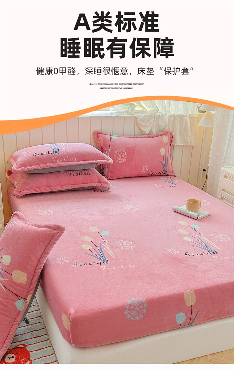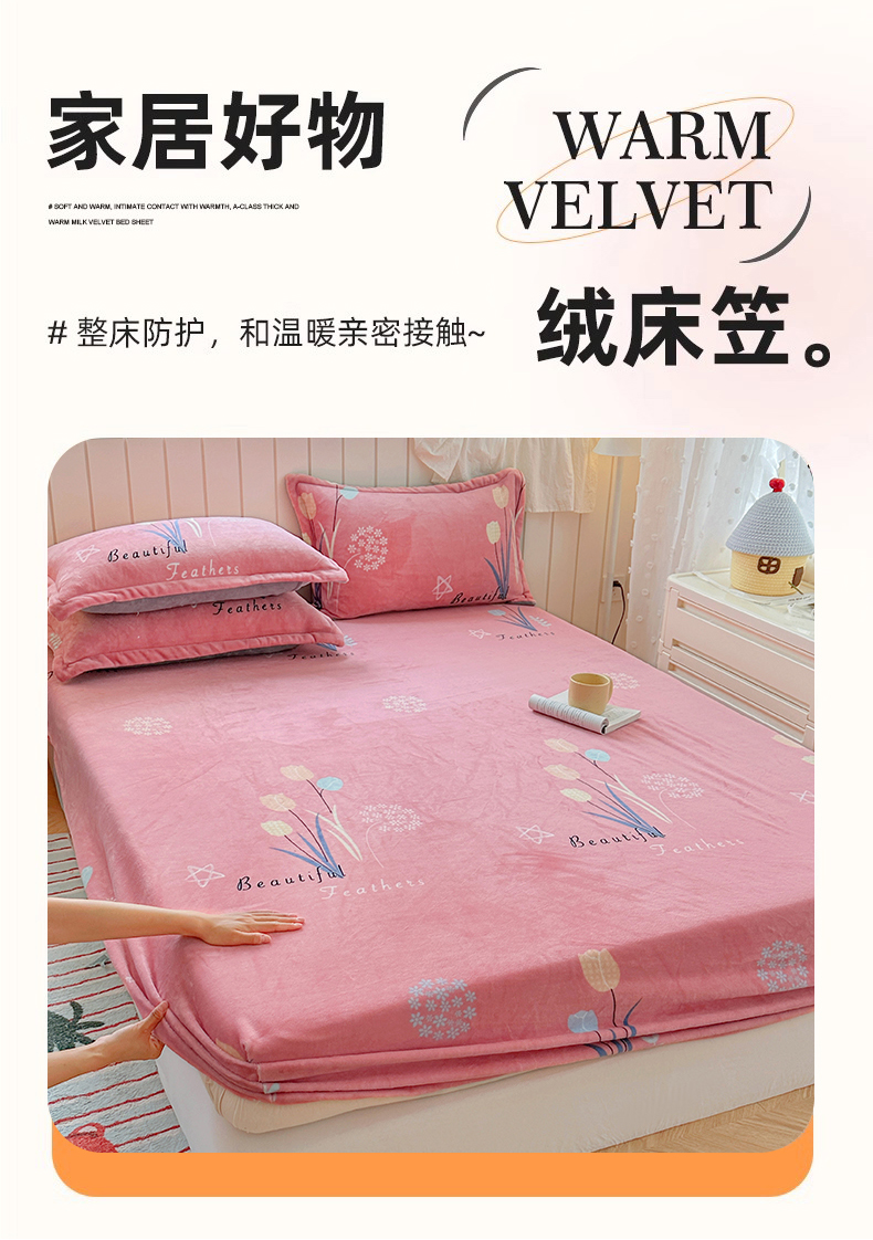 家贝爱 2025新款高克重加厚牛奶绒床笠单床笠床笠单品 花开浪漫