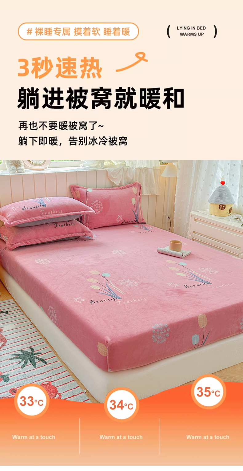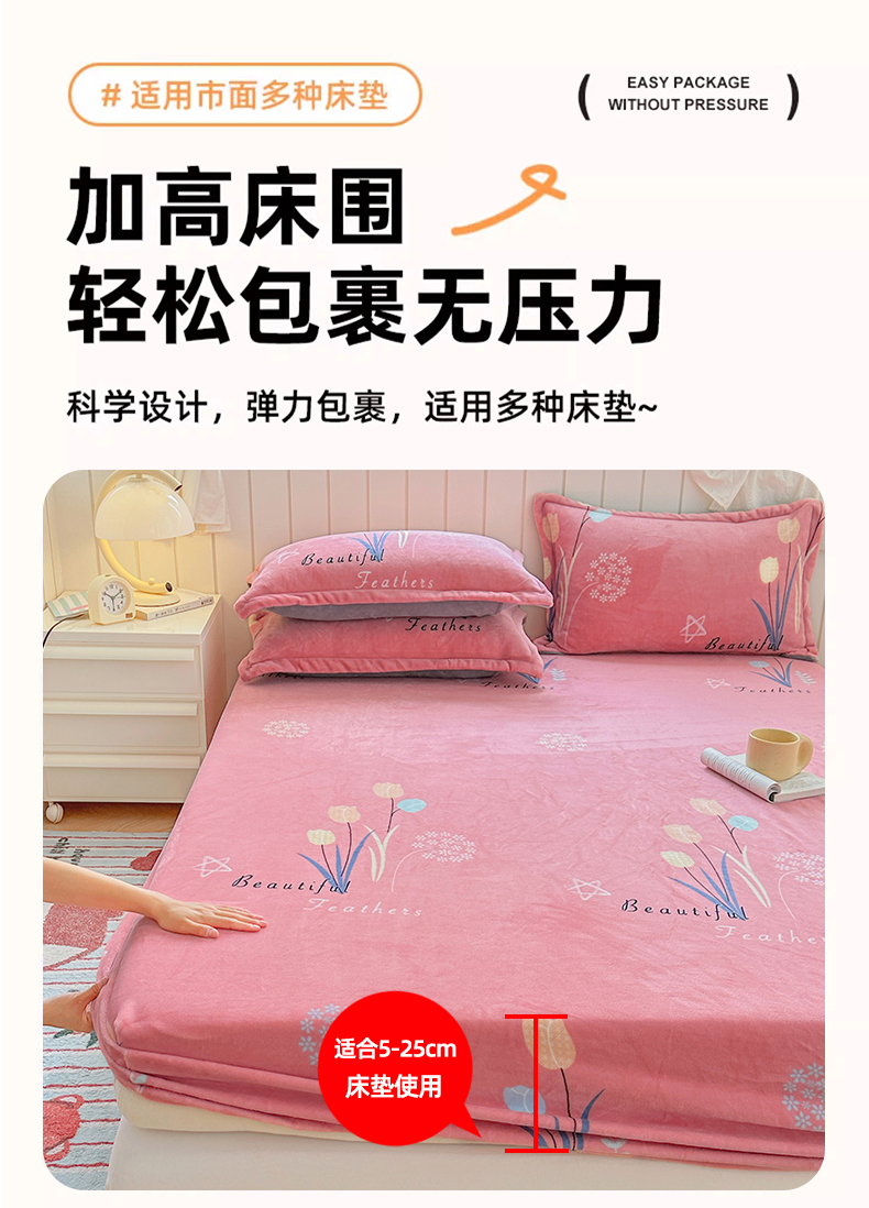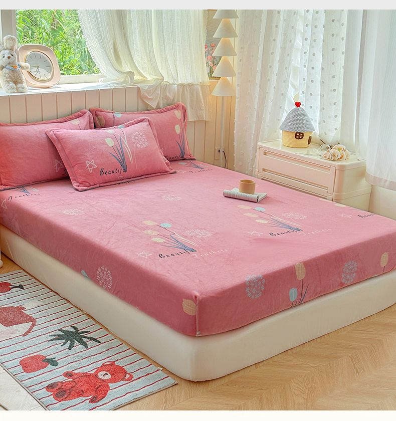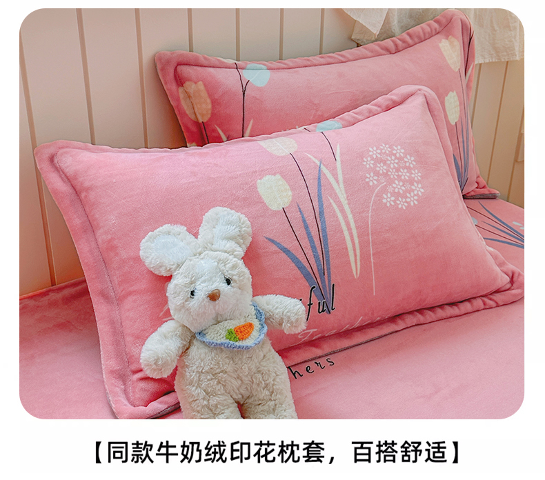 家贝爱 2025新款高克重加厚牛奶绒床笠单床笠床笠单品 花开浪漫