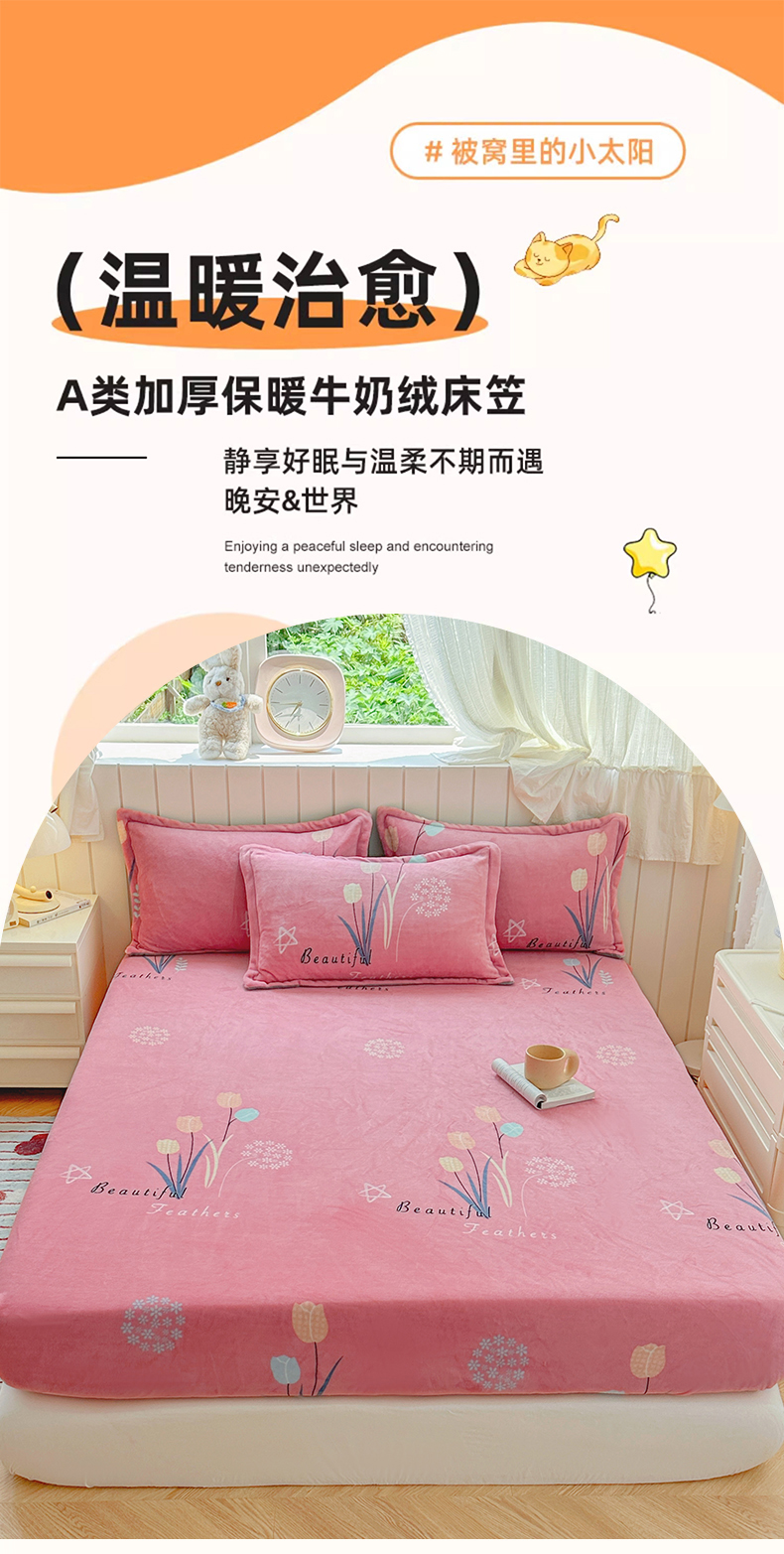 • 91家纺网 家纺一手货源 找家纺 家贝爱 2025新款高克重加厚牛奶绒床笠单床笠床笠单品 花开浪漫