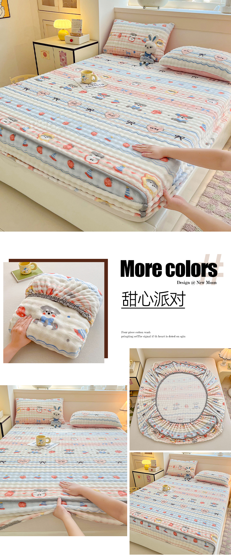 (总)慕梵家居 2025新款泡泡绒床笠泡泡兔绒床罩外贸可以定做尺寸单品床笠单件床笠,爱心物语,抱抱熊,潮玩布布-咖,潮玩布布-米,开心喵喵,凯特猫,迷你爱心,奶瓶萌犬,甜筒女孩,甜心派对,小精灵,小胖哒,小熊乐园,星月传奇,幸运狗,音乐派对