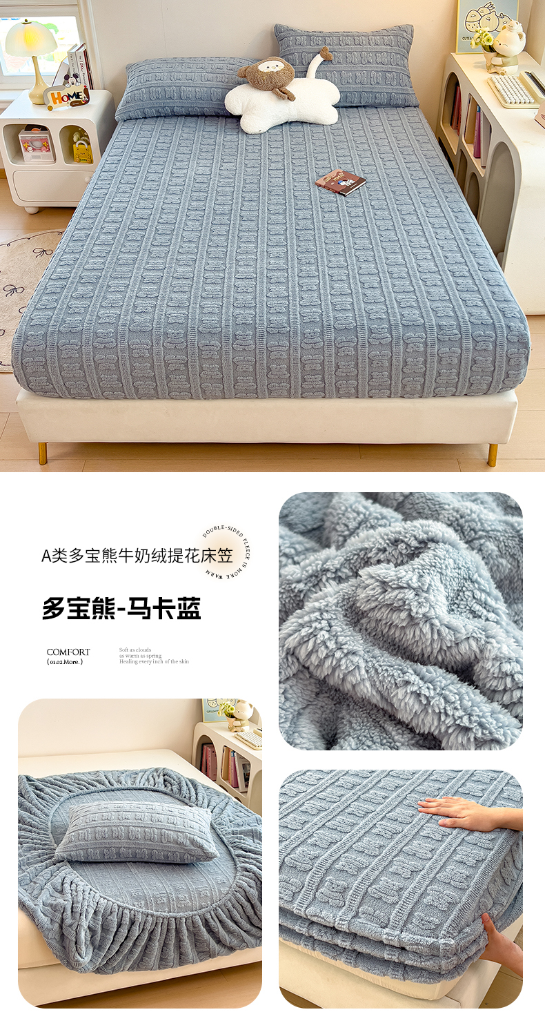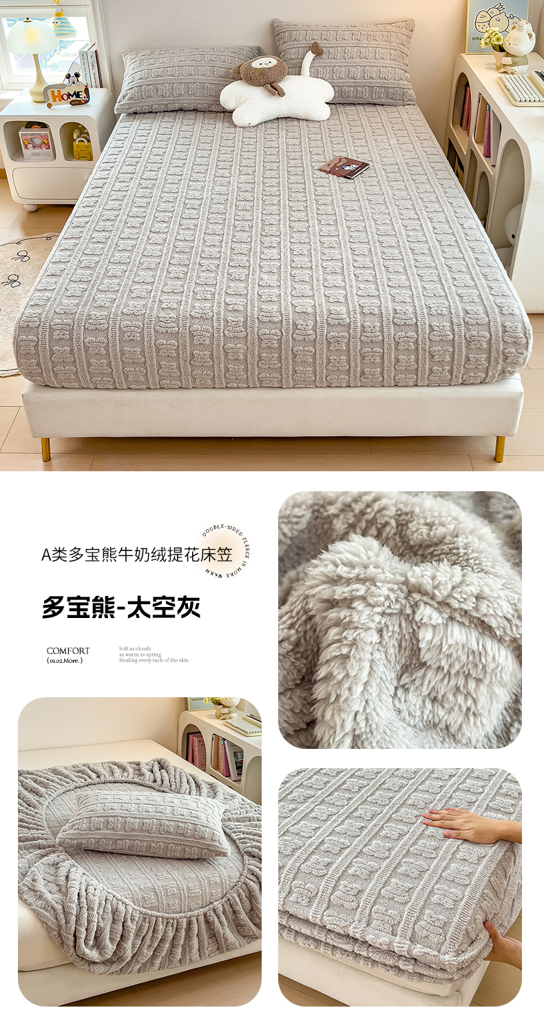 商品名称:世纪绒品 2025新款A类牛奶绒提花床笠-多宝熊 多宝熊-卡其