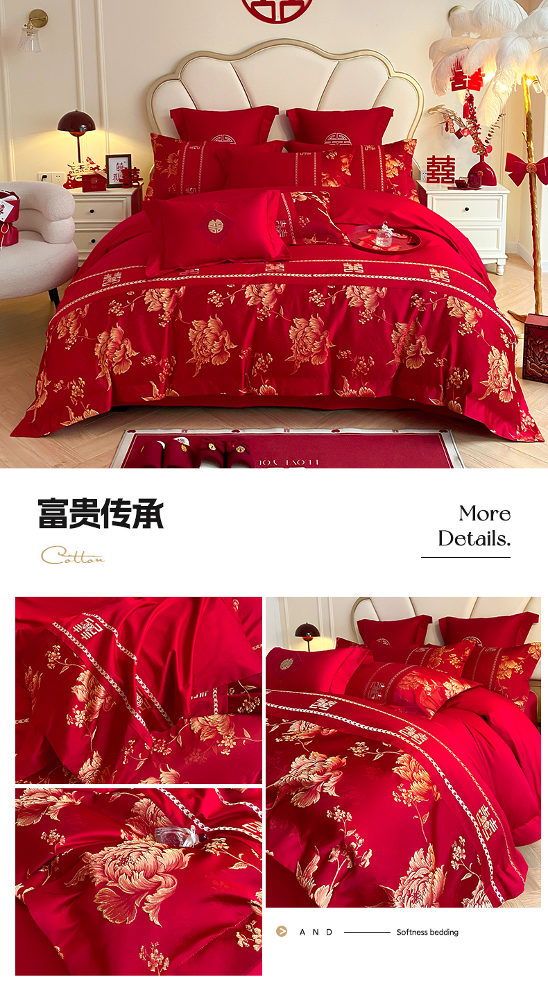 (总)博纳家纺 2025新款亲肤棉婚庆绣花款四件套,平安喜乐,百喜纳福,富贵传承,国色天香,欢天喜地,龙凤呈祥,龙凤大喜,玫瑰庄园,欧式风情,吾家大喜,喜爱,喜结连鲤,喜悦,一往情深