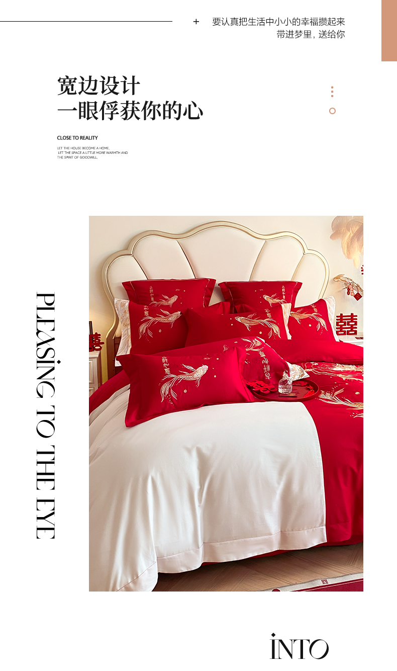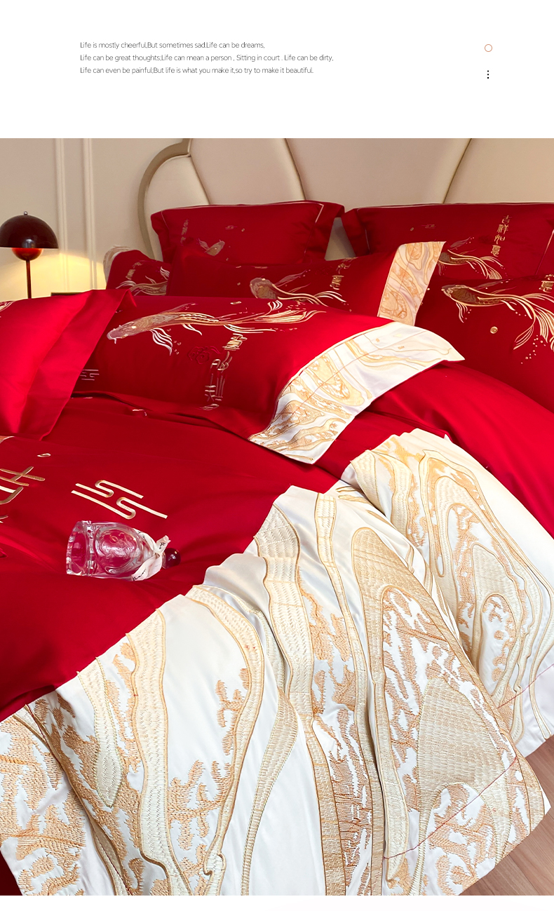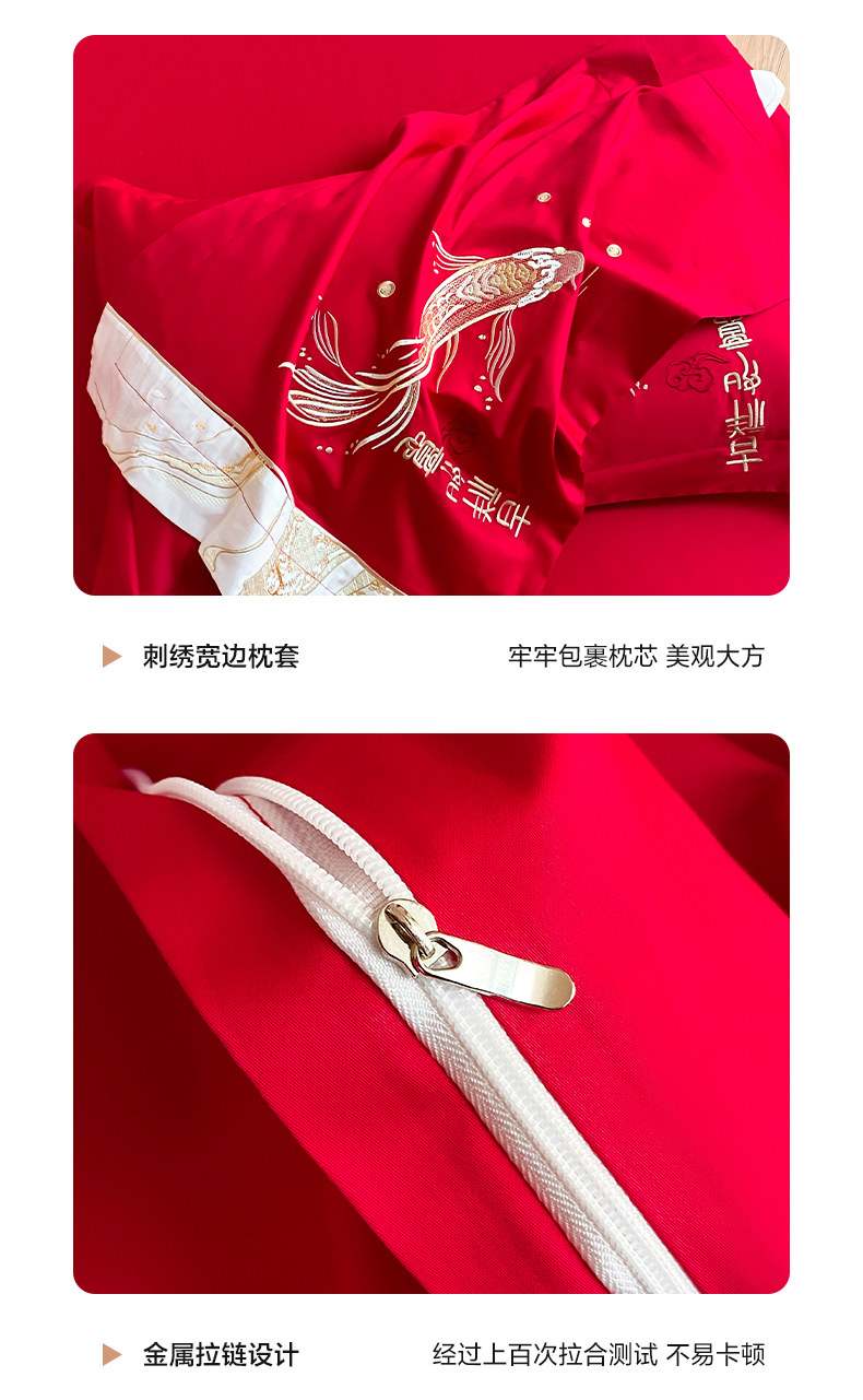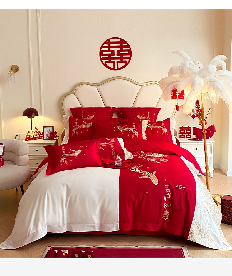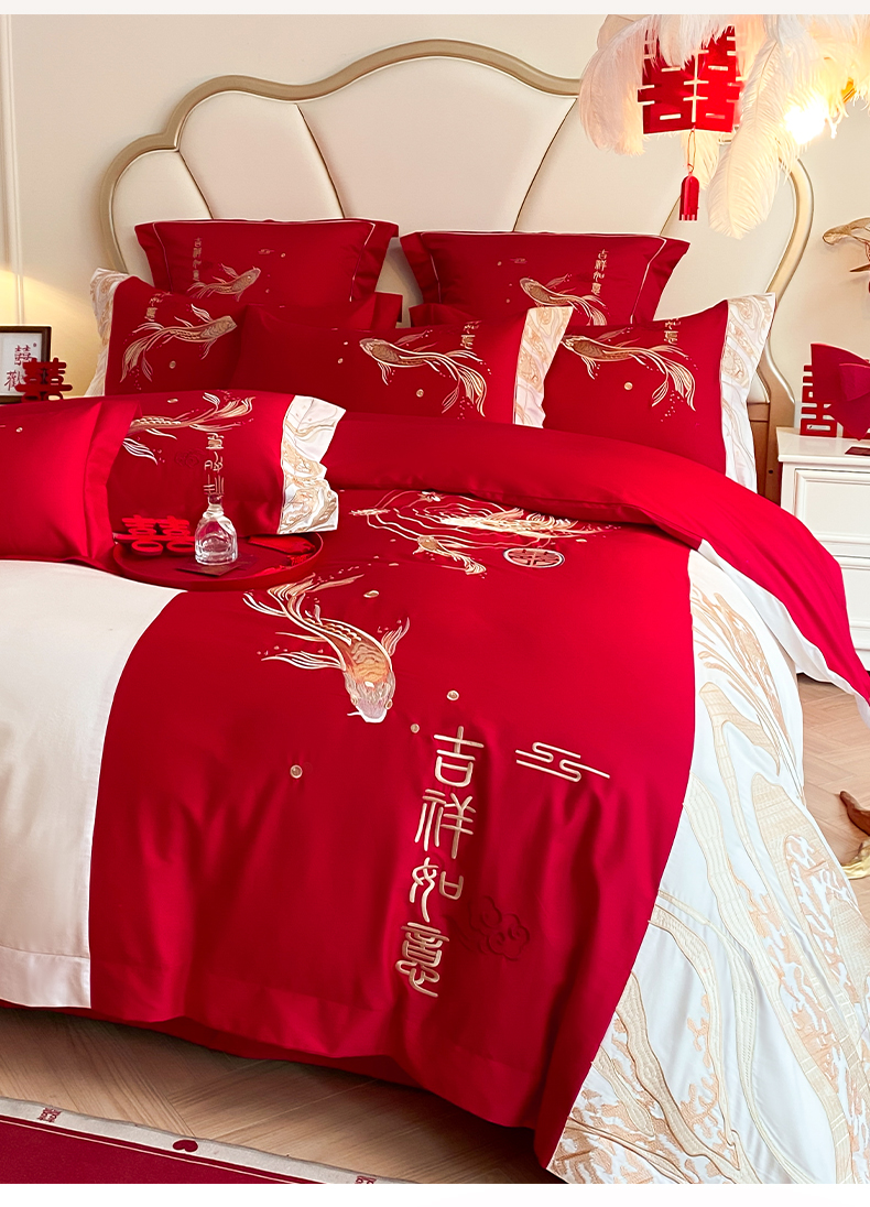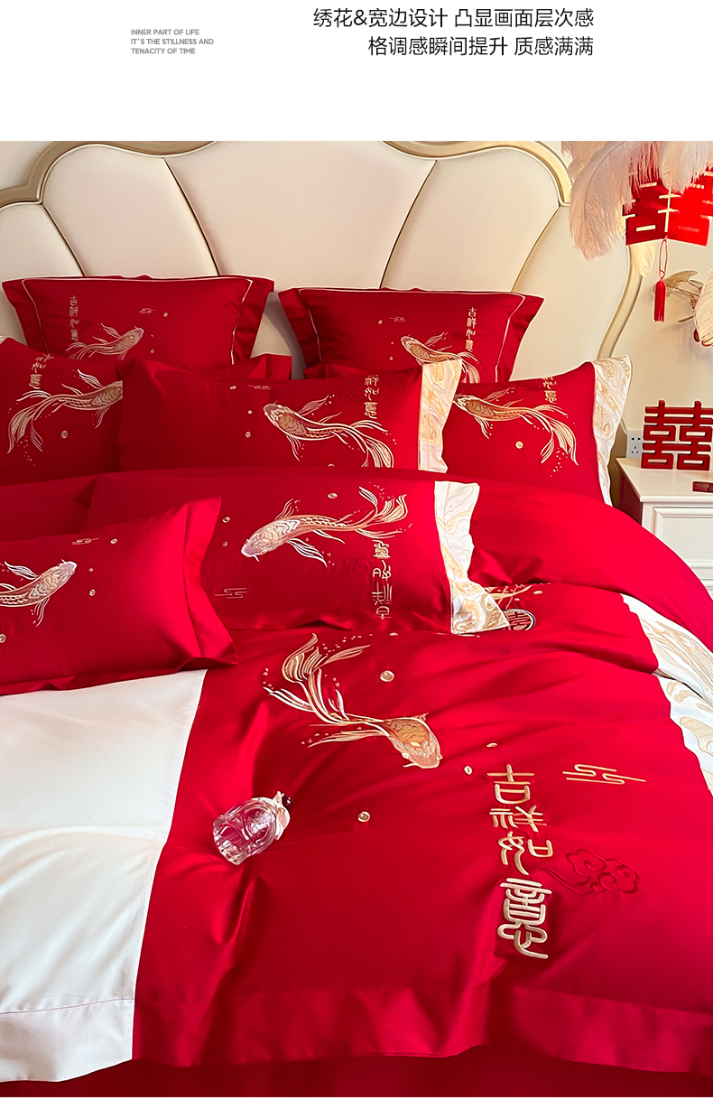 商品名称:博纳家纺 2025新款亲肤棉婚庆绣花款四件套 喜结连鲤