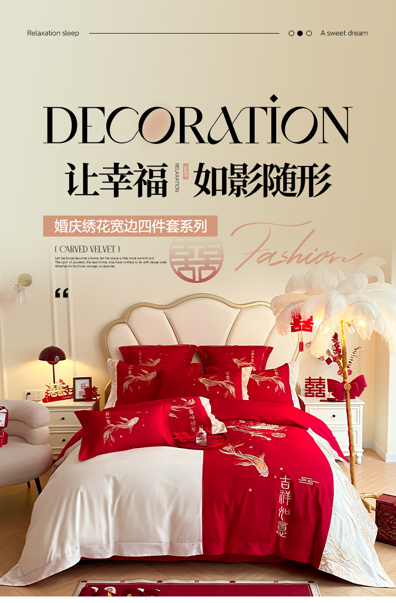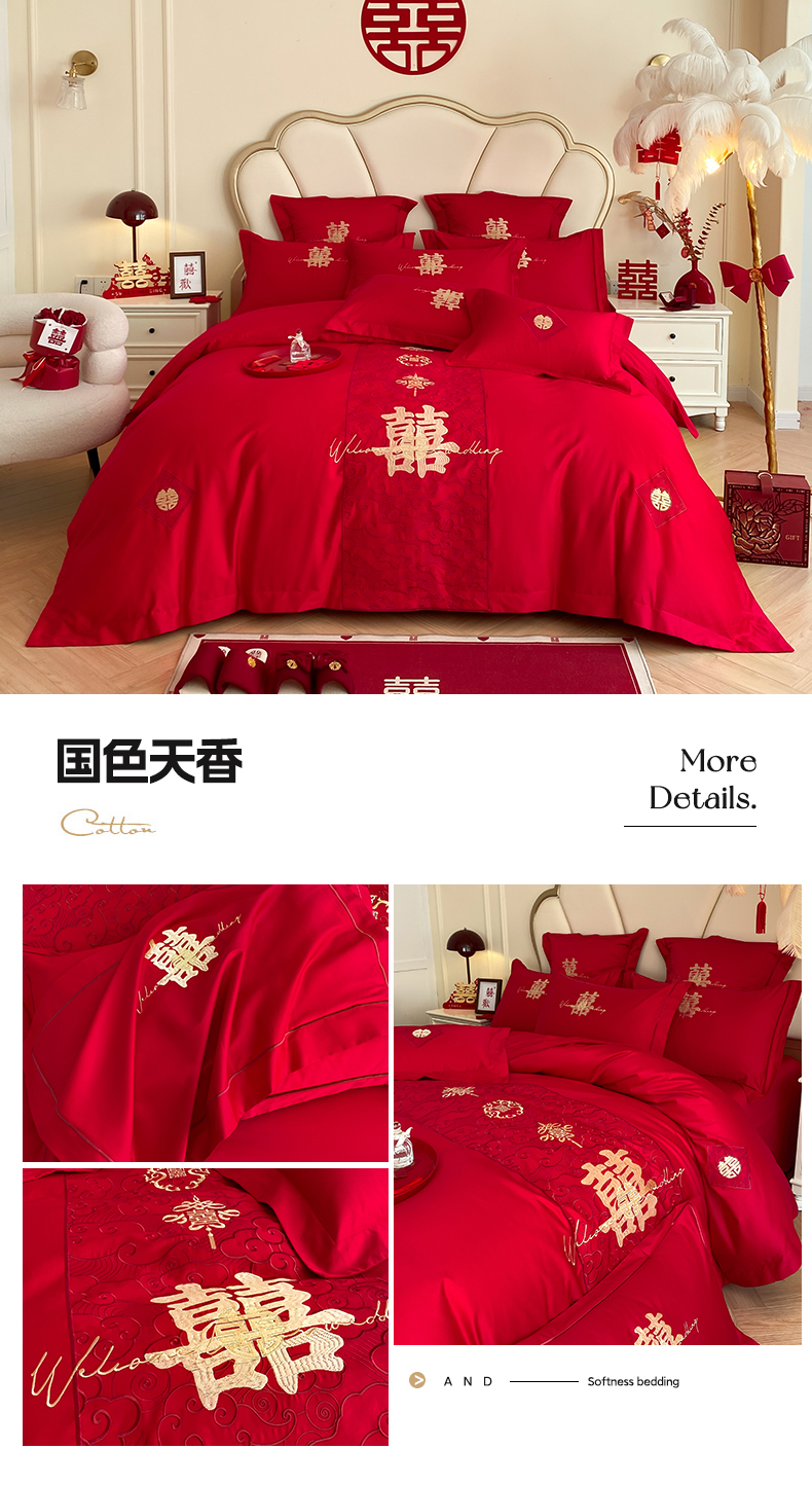 (总)博纳家纺 2025新款亲肤棉婚庆绣花款四件套,平安喜乐,百喜纳福,富贵传承,国色天香,欢天喜地,龙凤呈祥,龙凤大喜,玫瑰庄园,欧式风情,吾家大喜,喜爱,喜结连鲤,喜悦,一往情深