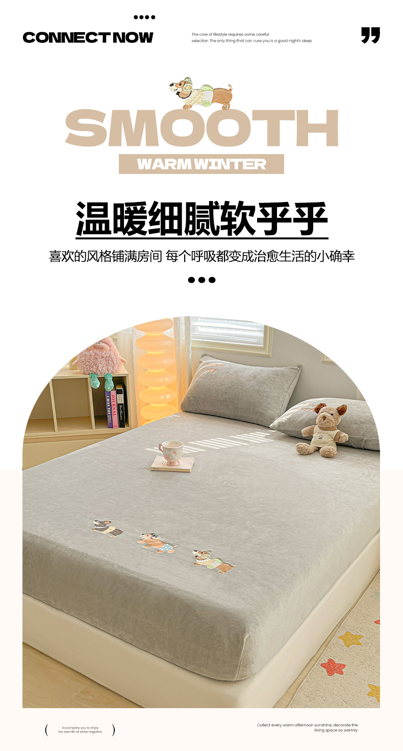 • 91家纺网 家纺一手货源 找家纺 多乐家纺 2025新款高克重牛奶绒卡通刺绣单床笠床笠单件 小狗-卡其