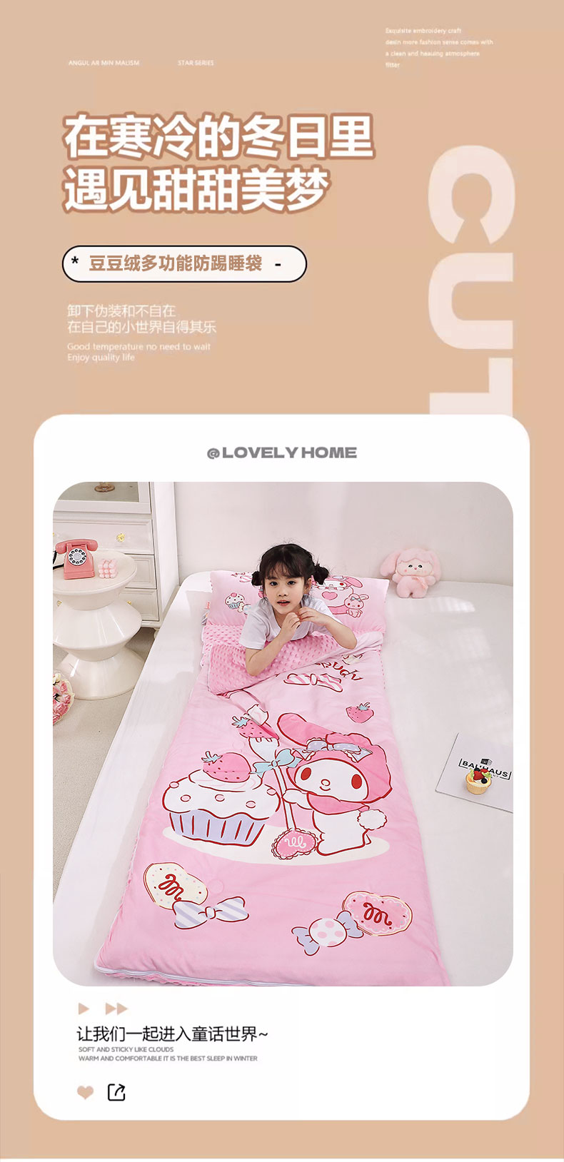 (总)八零年代 2025新款三丽鸥正版分体式可拆洗睡袋宝宝绒保暖儿童防踢被豆豆绒一体被,分体式可拆睡袋-草莓美乐蒂,分体式可拆睡袋-大耳狗,分体式可拆睡袋-美乐蒂木马,分体式可拆睡袋-美美KT,分体式可拆睡袋-帕恰狗,分体式可拆睡袋-汽车库洛米,分体式可拆睡袋-甜甜库洛米,分体式可拆睡袋-炫彩库洛米