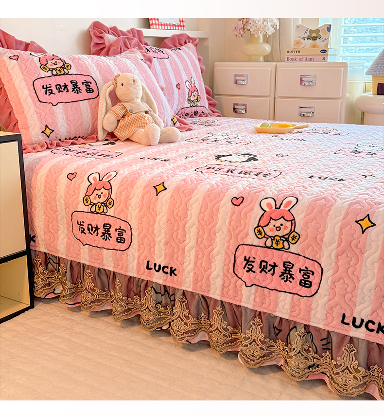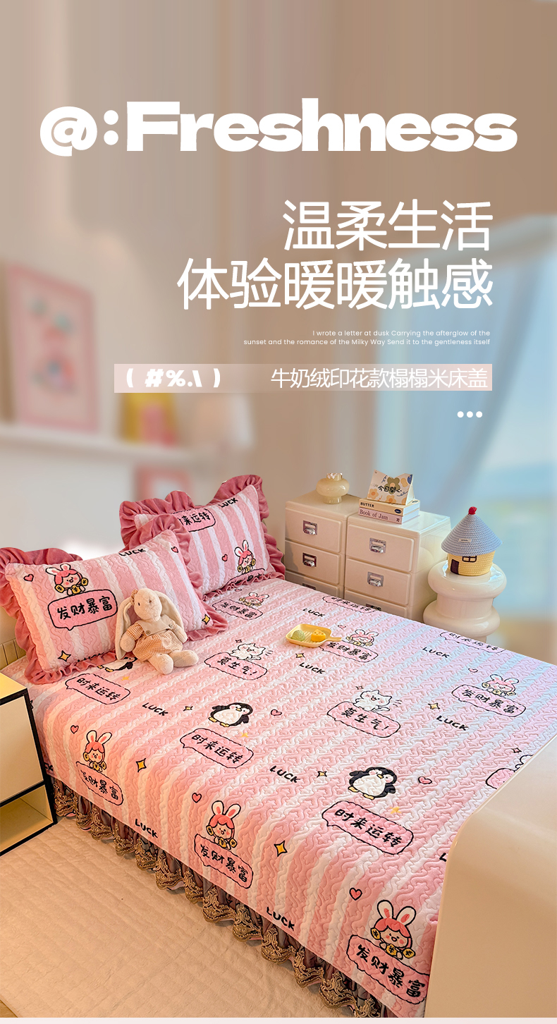 美达家纺 2025新款牛奶绒榻榻米单床盖床盖单件单品床盖(支持定制,定制款不退不换) 时来运转