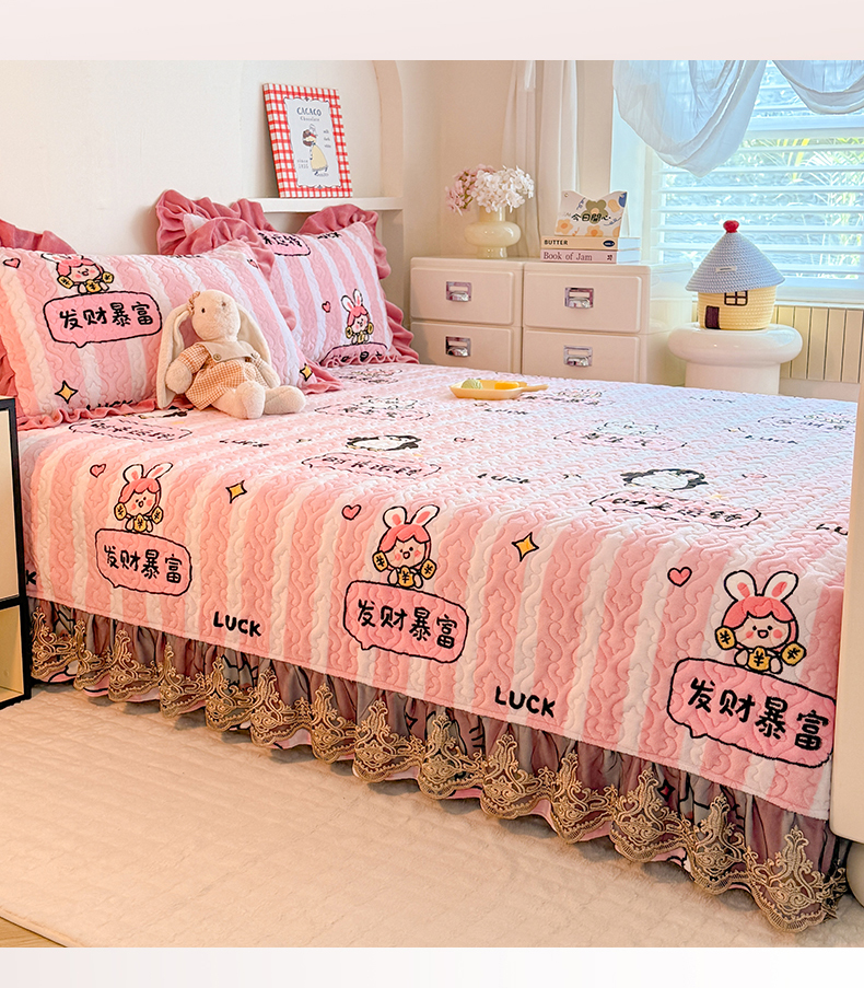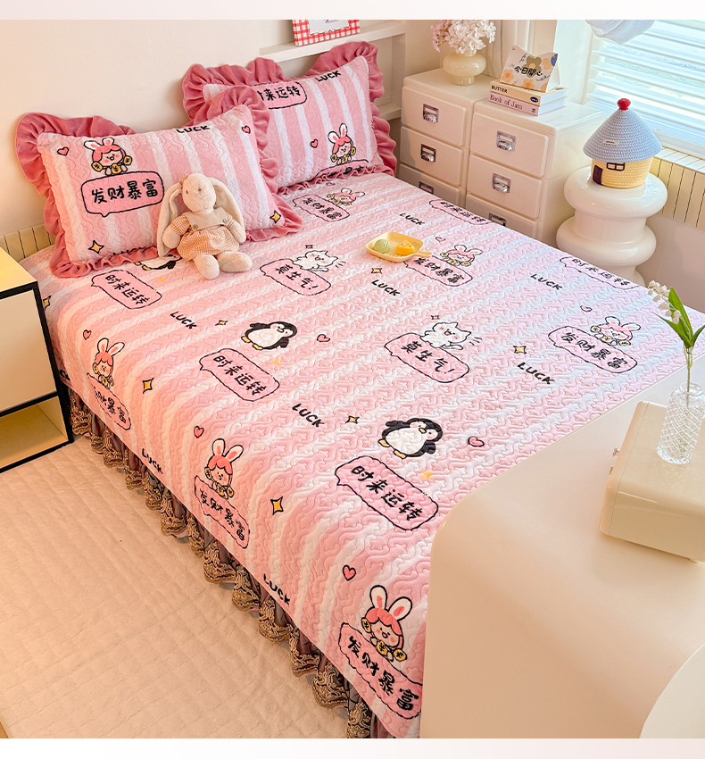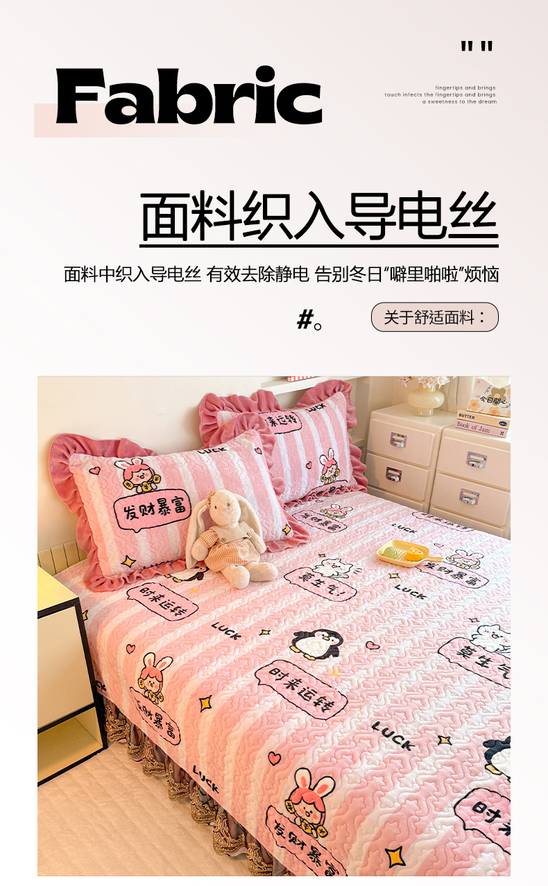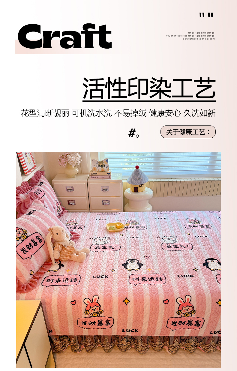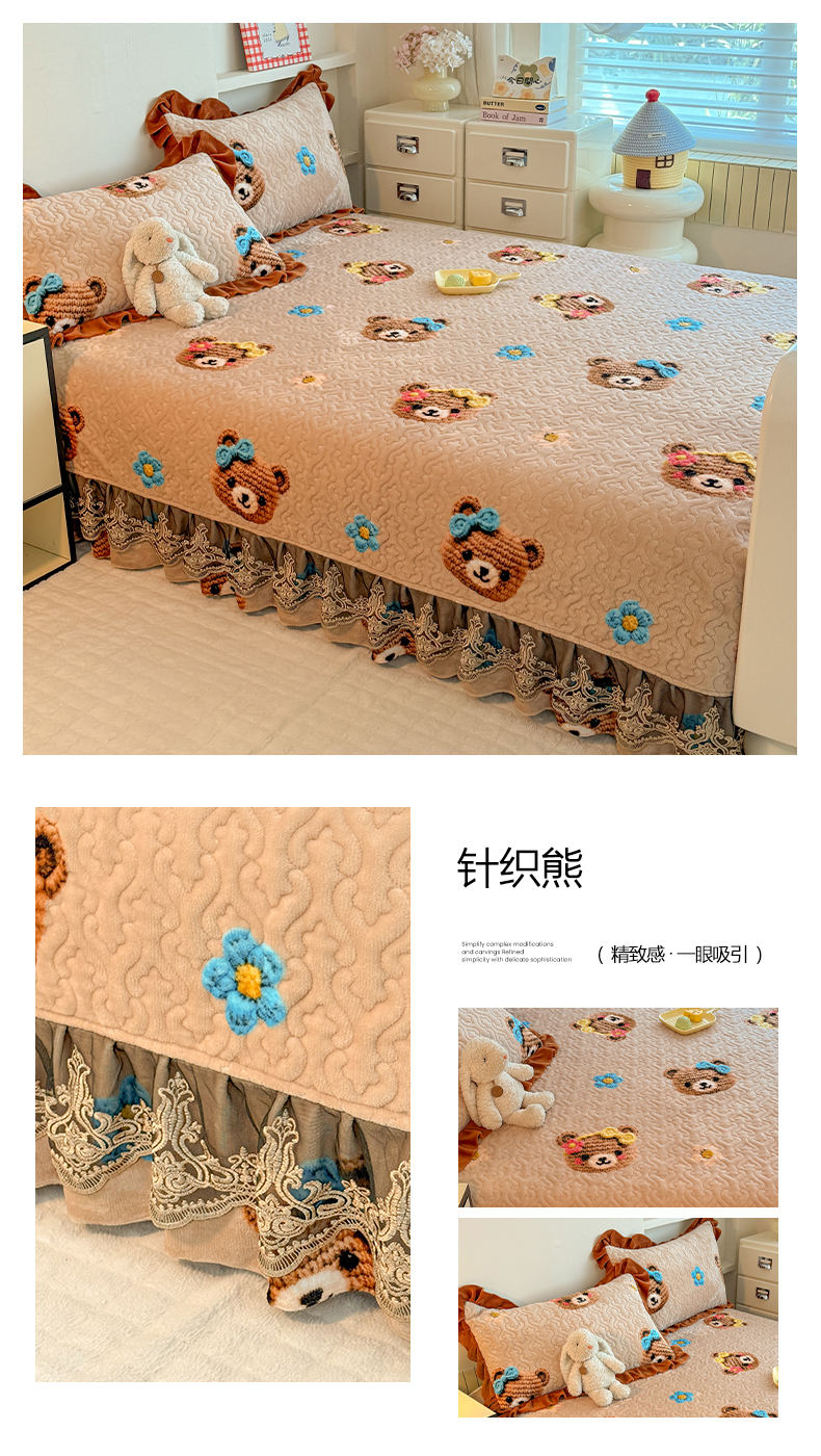 (总)美达家纺 2025新款高克重牛奶绒花边款夹棉床盖三件套,巴拉巴拉,格子萌熊,恐龙星球,梦蝶,时来运转,甜蜜奶吧,微笑熊,针织熊