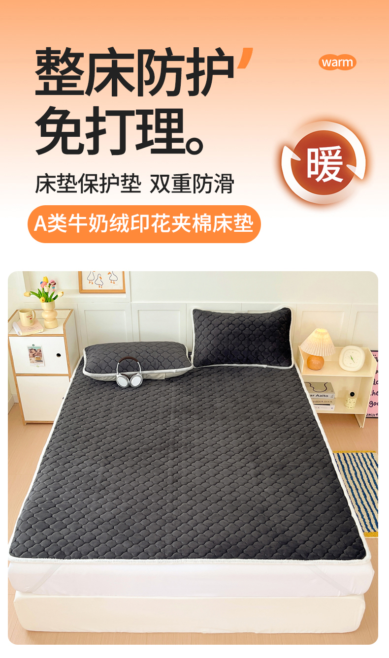 当前位置: 91家纺网 > 商品网购 > 床上用品 > 床盖 > 富馨莱 2025新款牛奶绒夹棉床垫床盖支持一件定制 轻奢灰