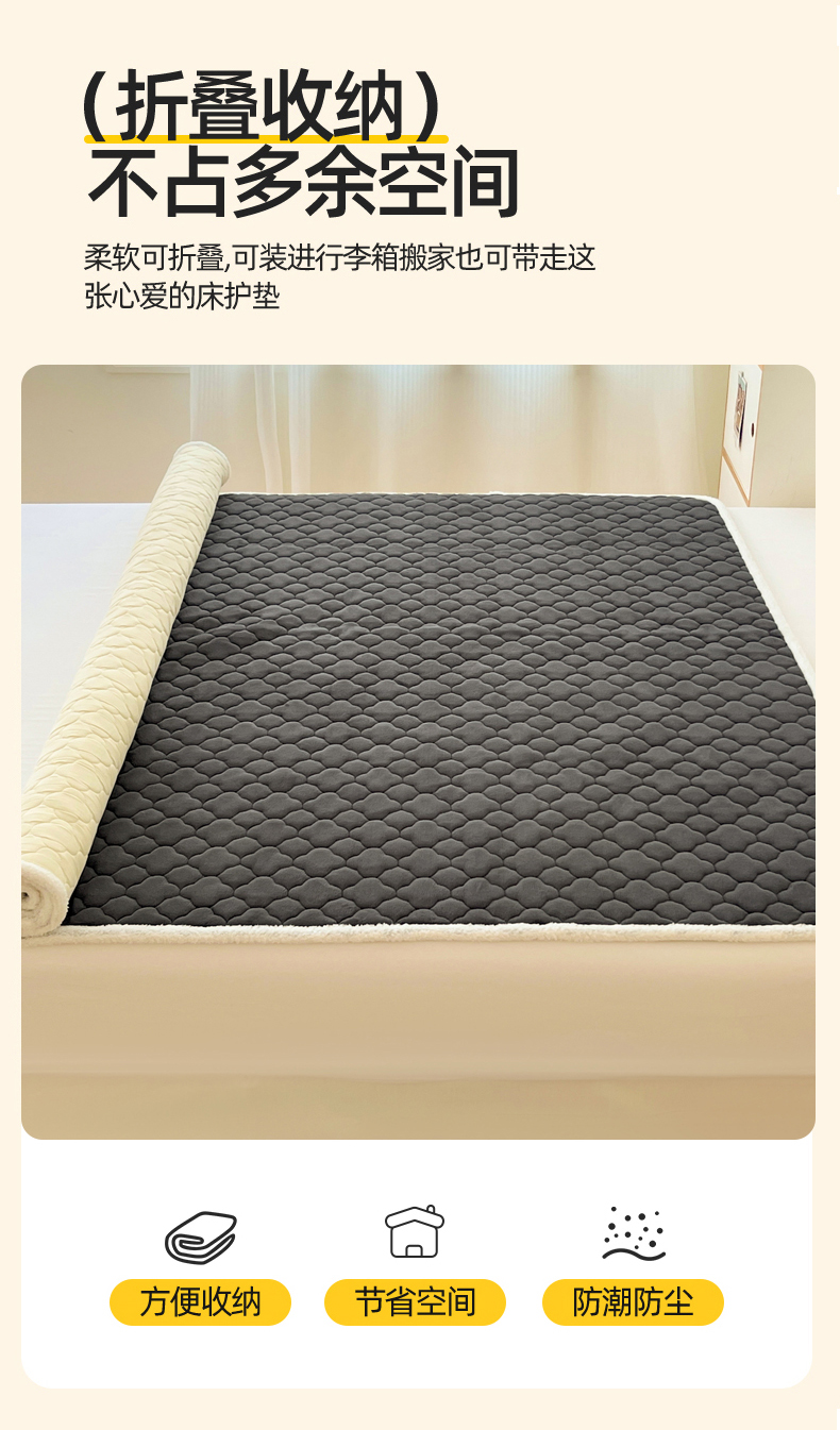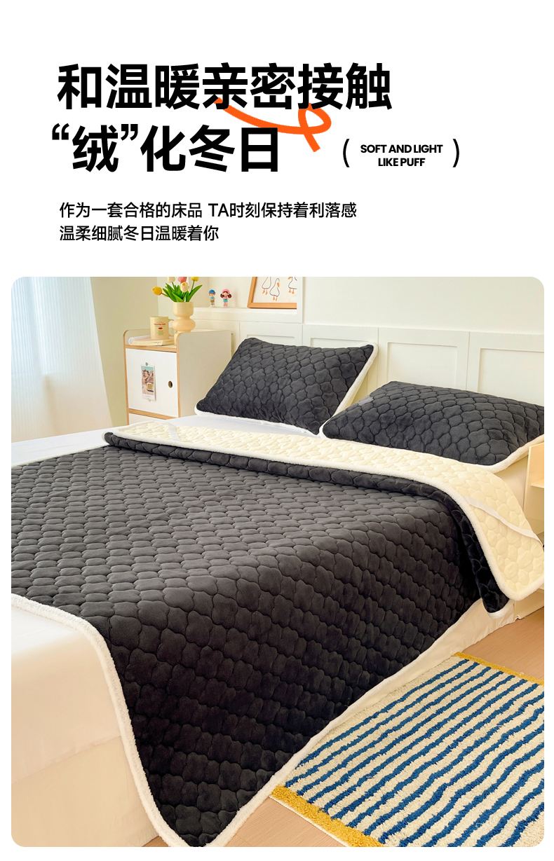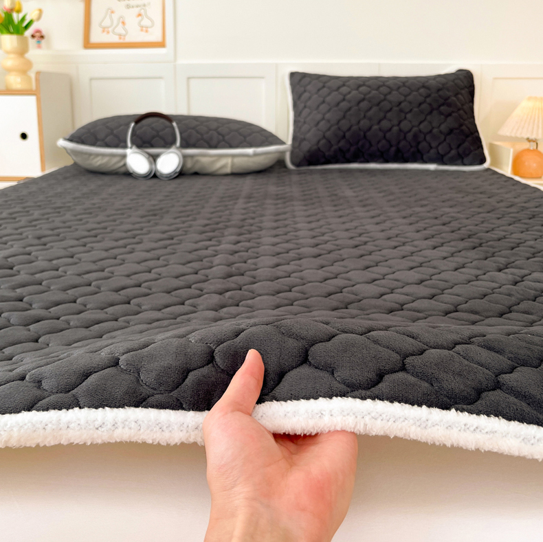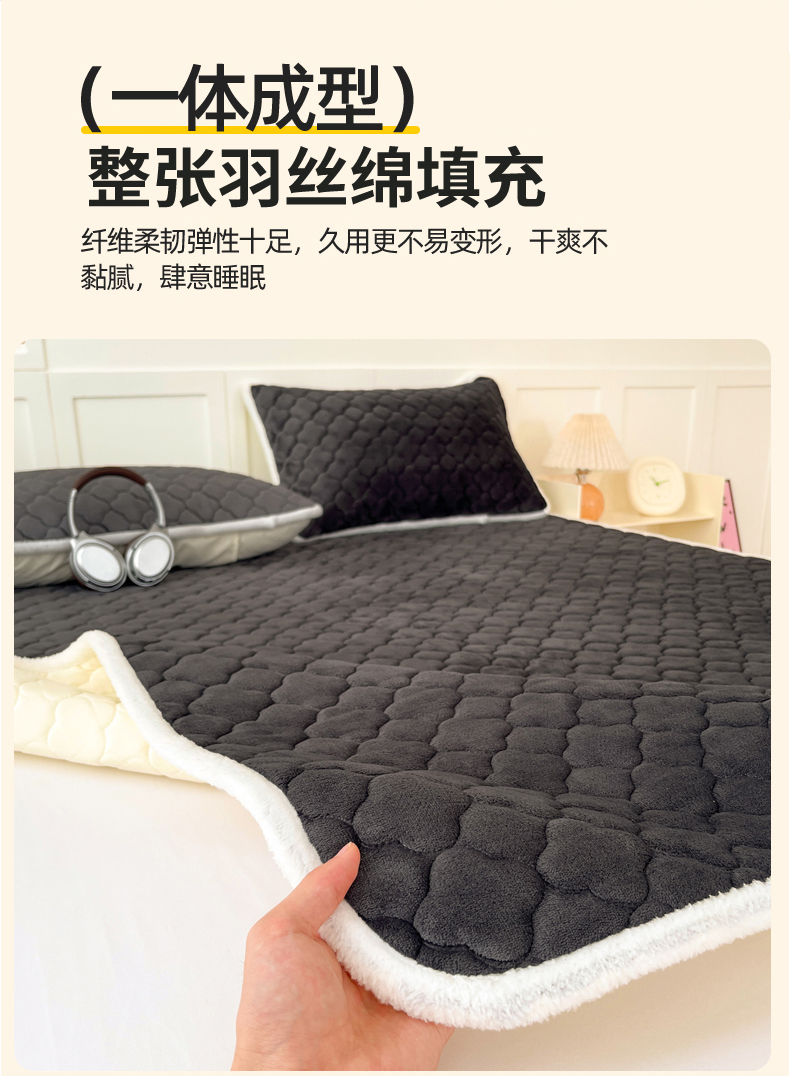 • 91家纺网 家纺一手货源 找家纺 富馨莱 2025新款牛奶绒夹棉床垫床盖支持一件定制 轻奢灰