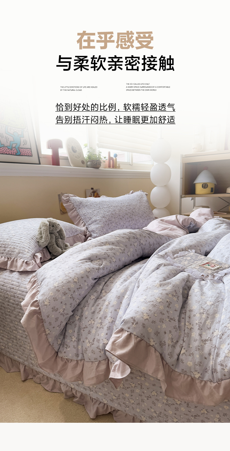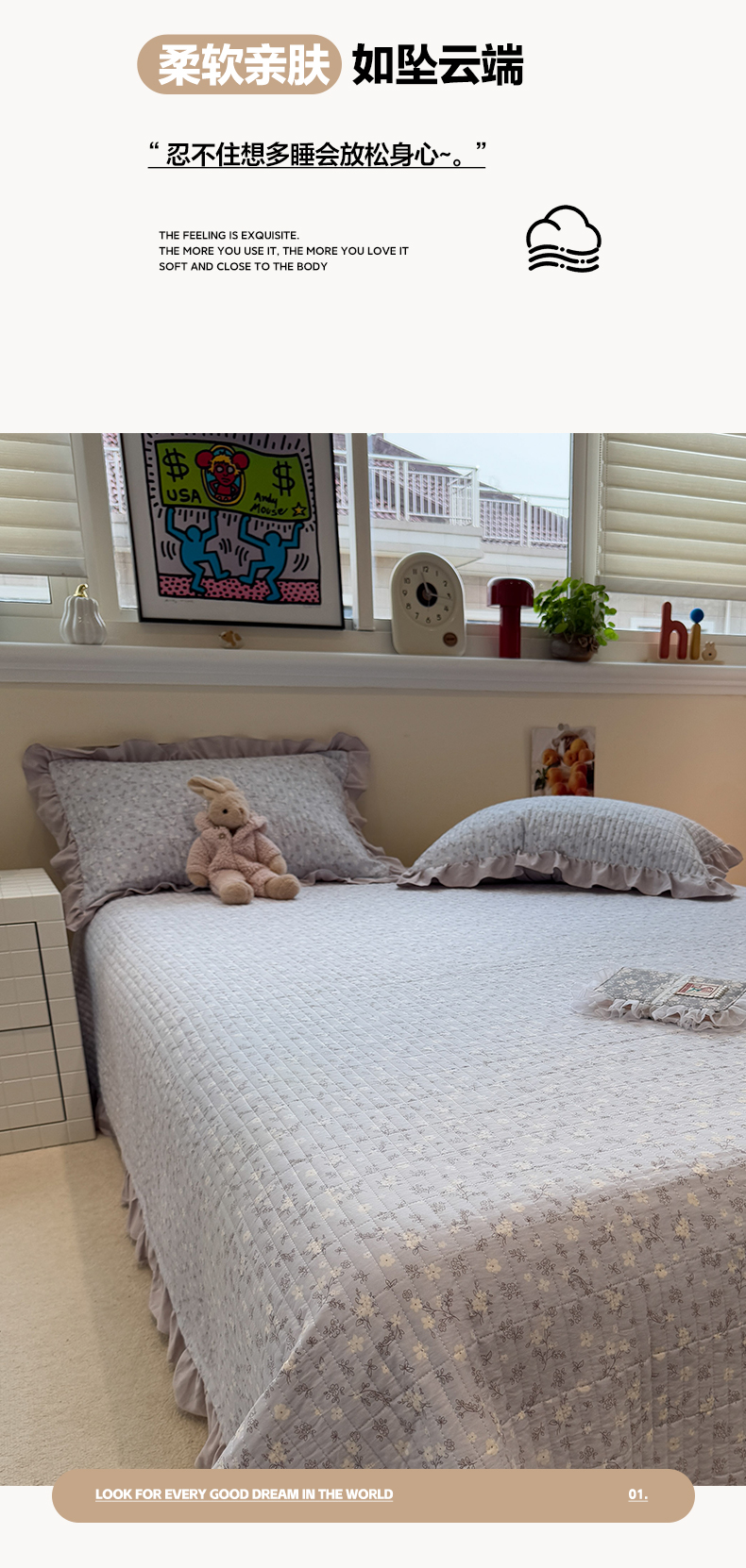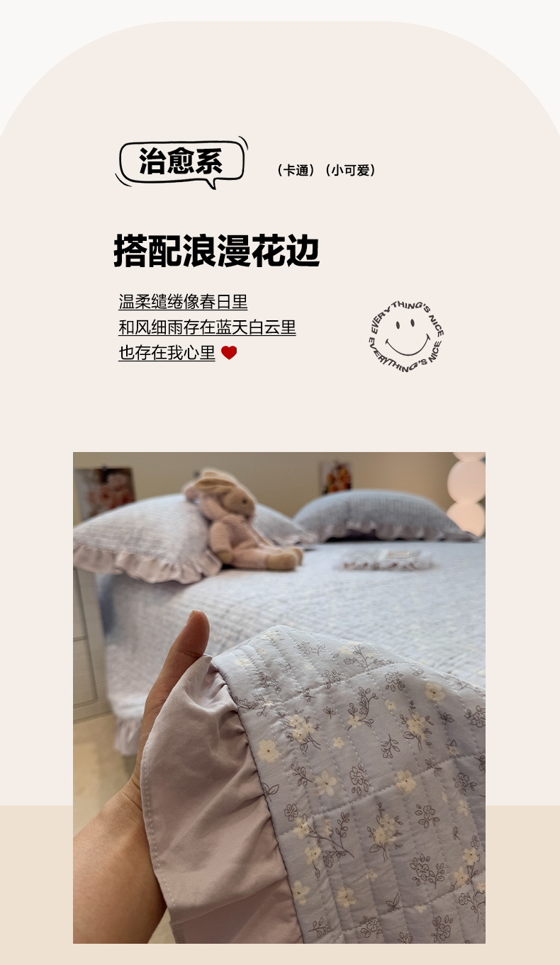 当前位置: 91家纺网 > 商品网购 > 床上用品 > 床盖 > 一加一 2025新款小清新花边款大豆被床盖系列 晴天兰