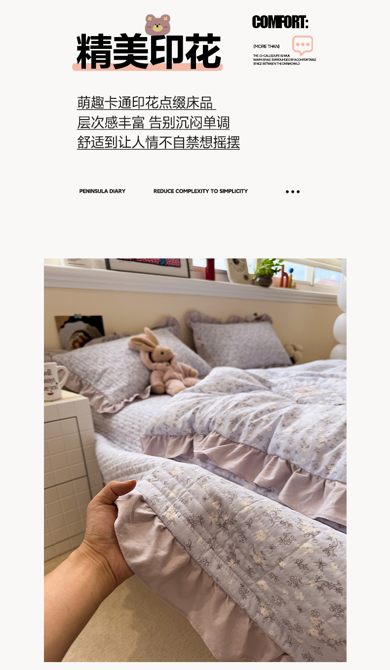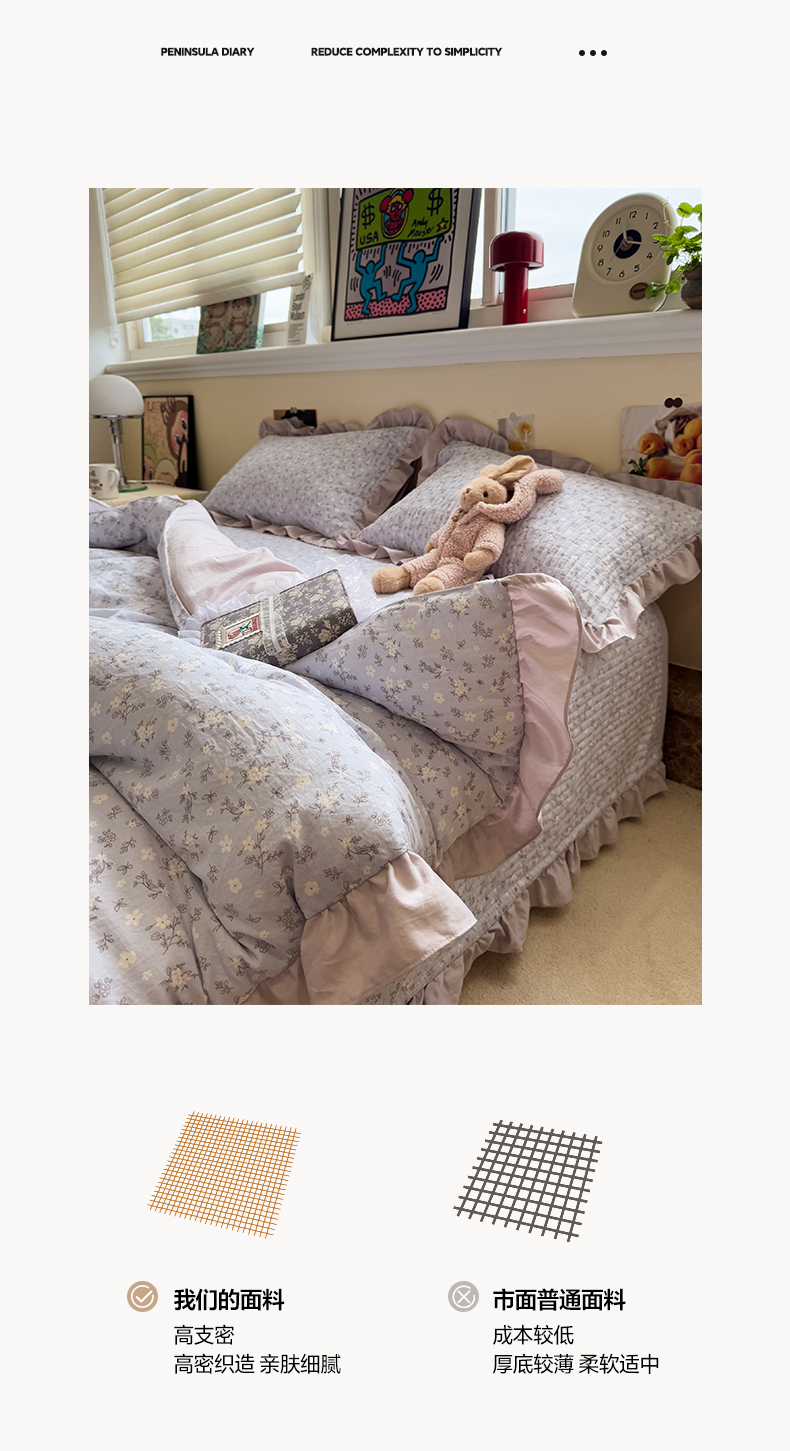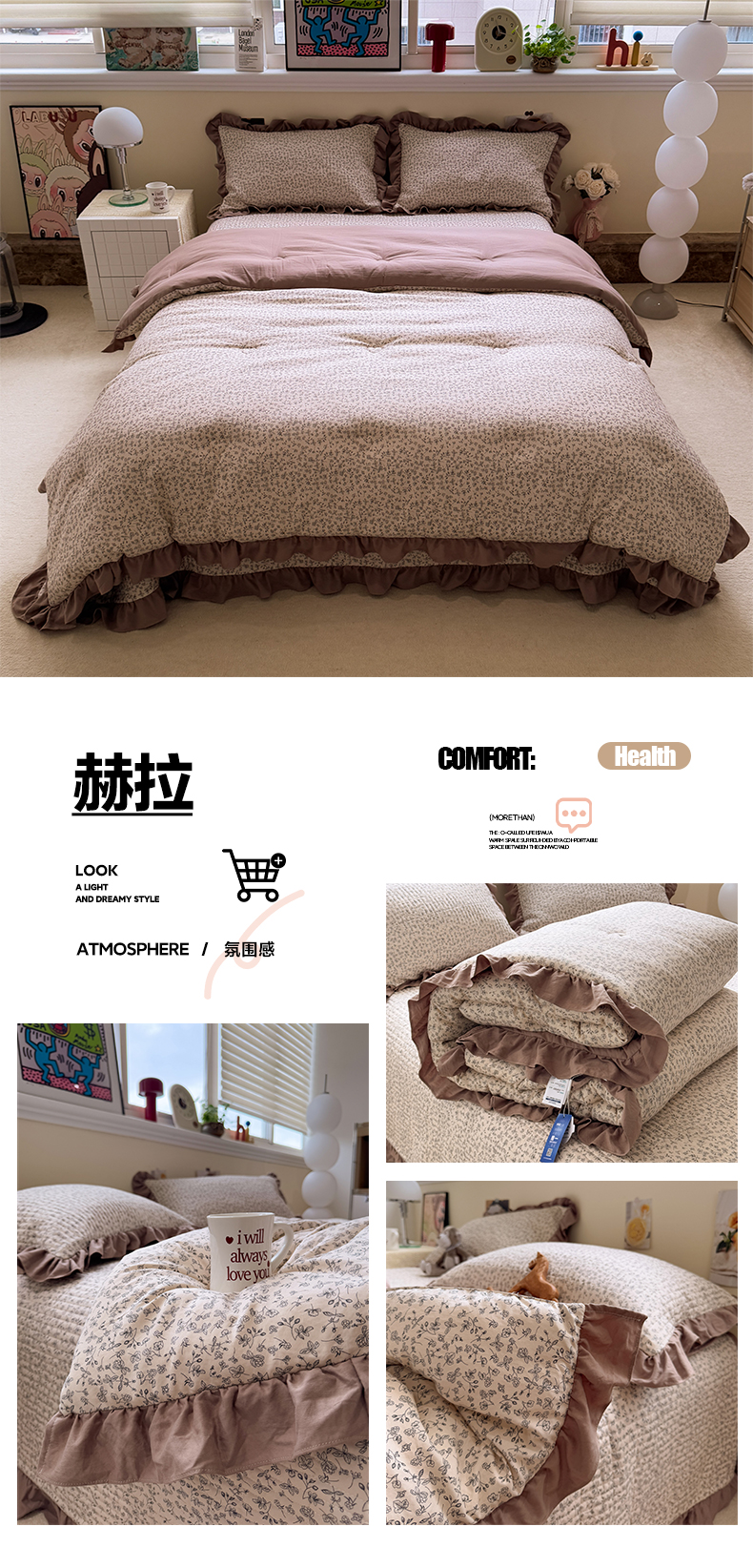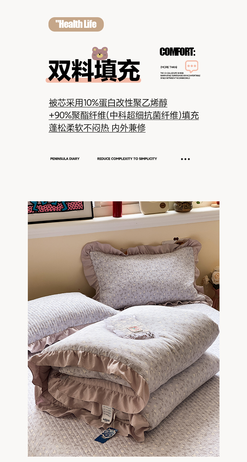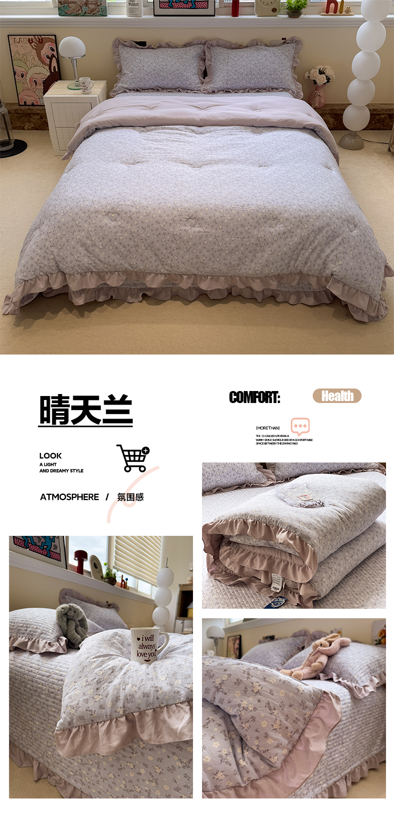 • 91家纺网 家纺一手货源 找家纺 一加一 2025新款小清新花边款大豆被床盖系列 晴天兰