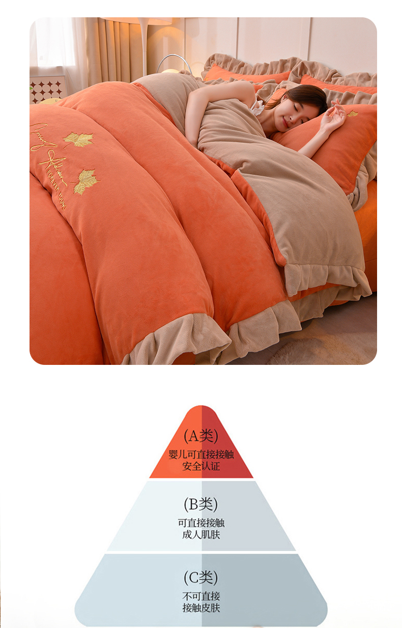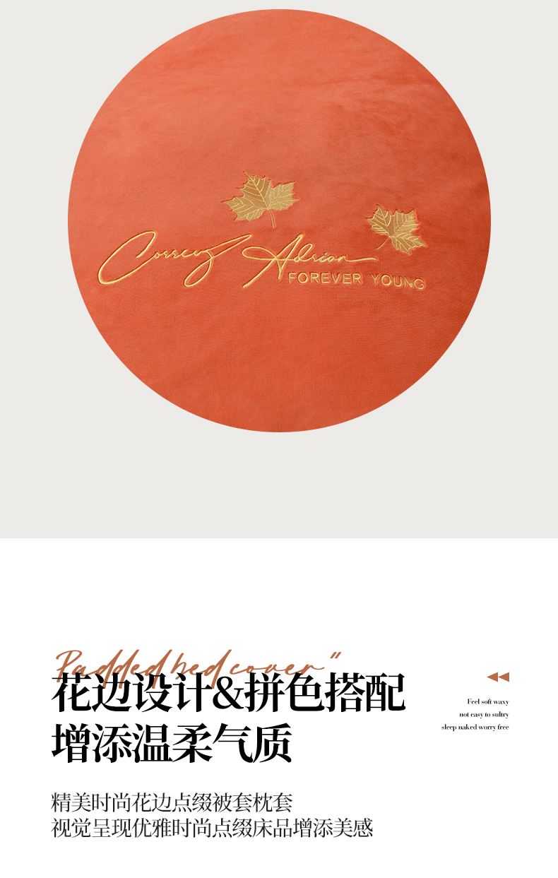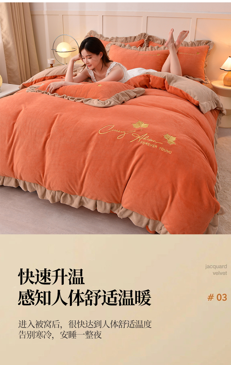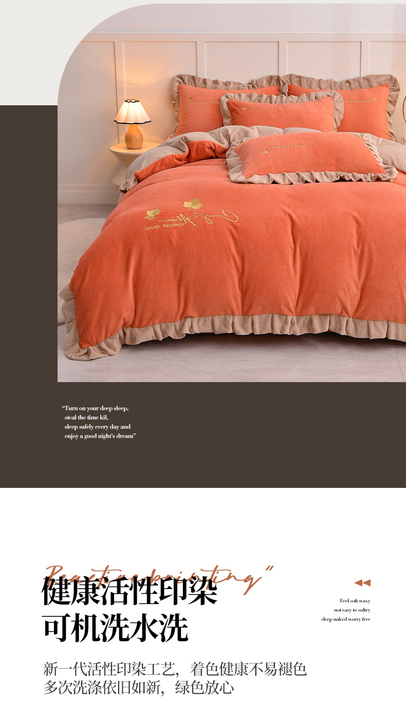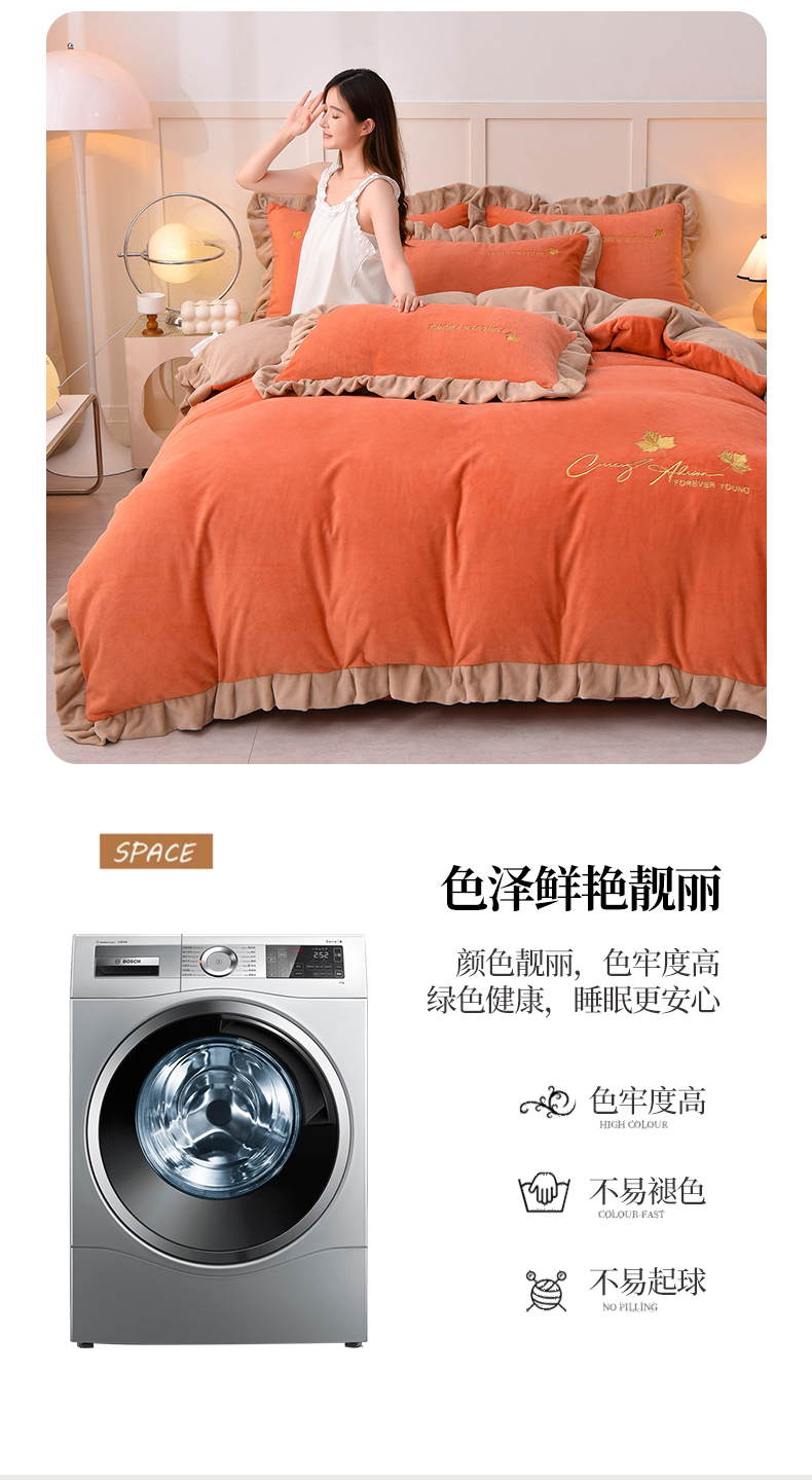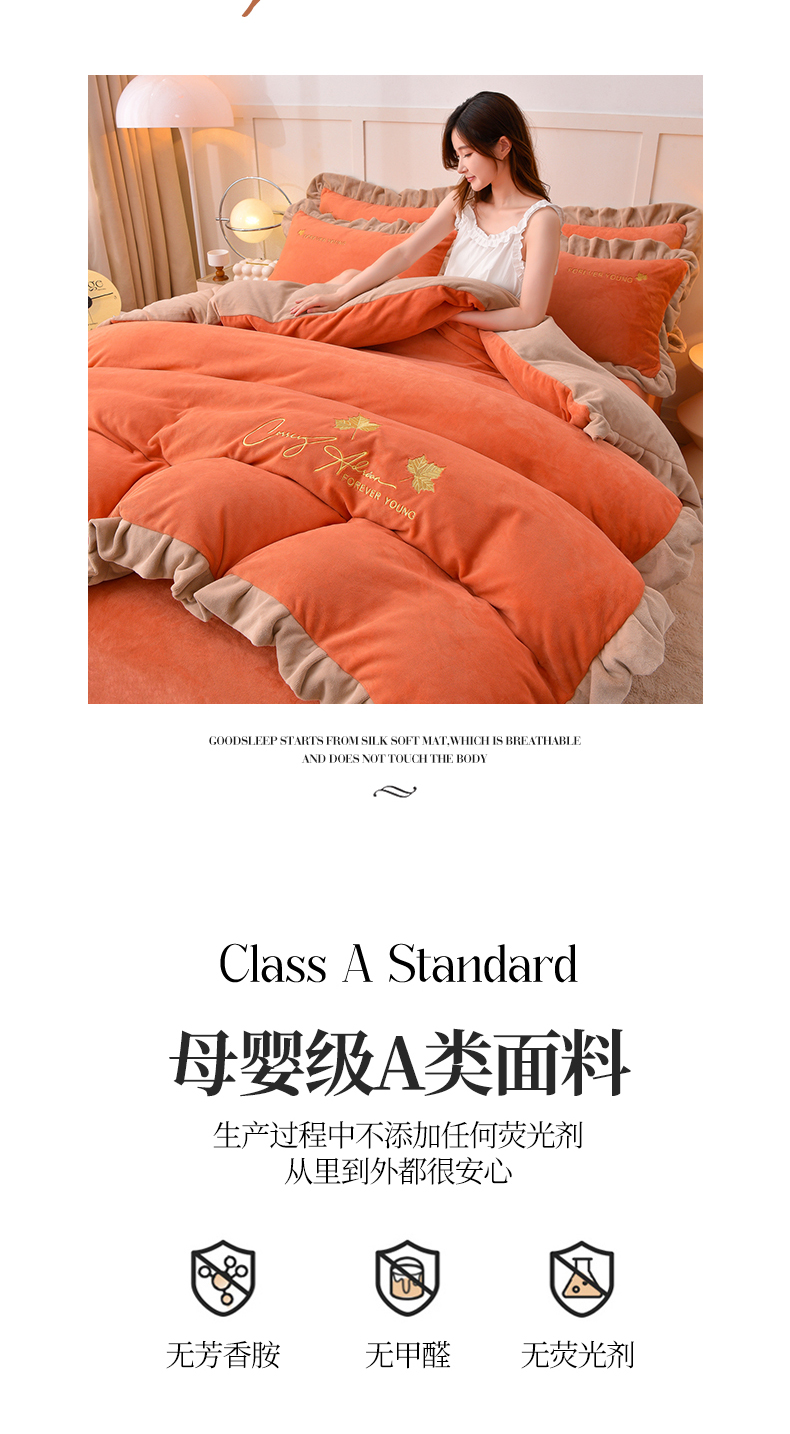 当前位置: 91家纺网 > 商品网购 > 床品套件 > 四件套 > 牛奶绒四件套 > 氧家 2025新款高克重牛奶绒拼角刺绣床单床笠床盖款四件套-钟爱 钟爱-橙