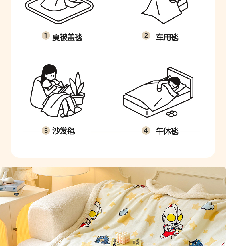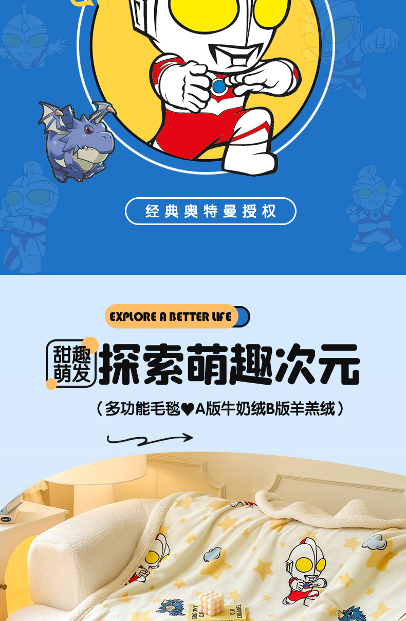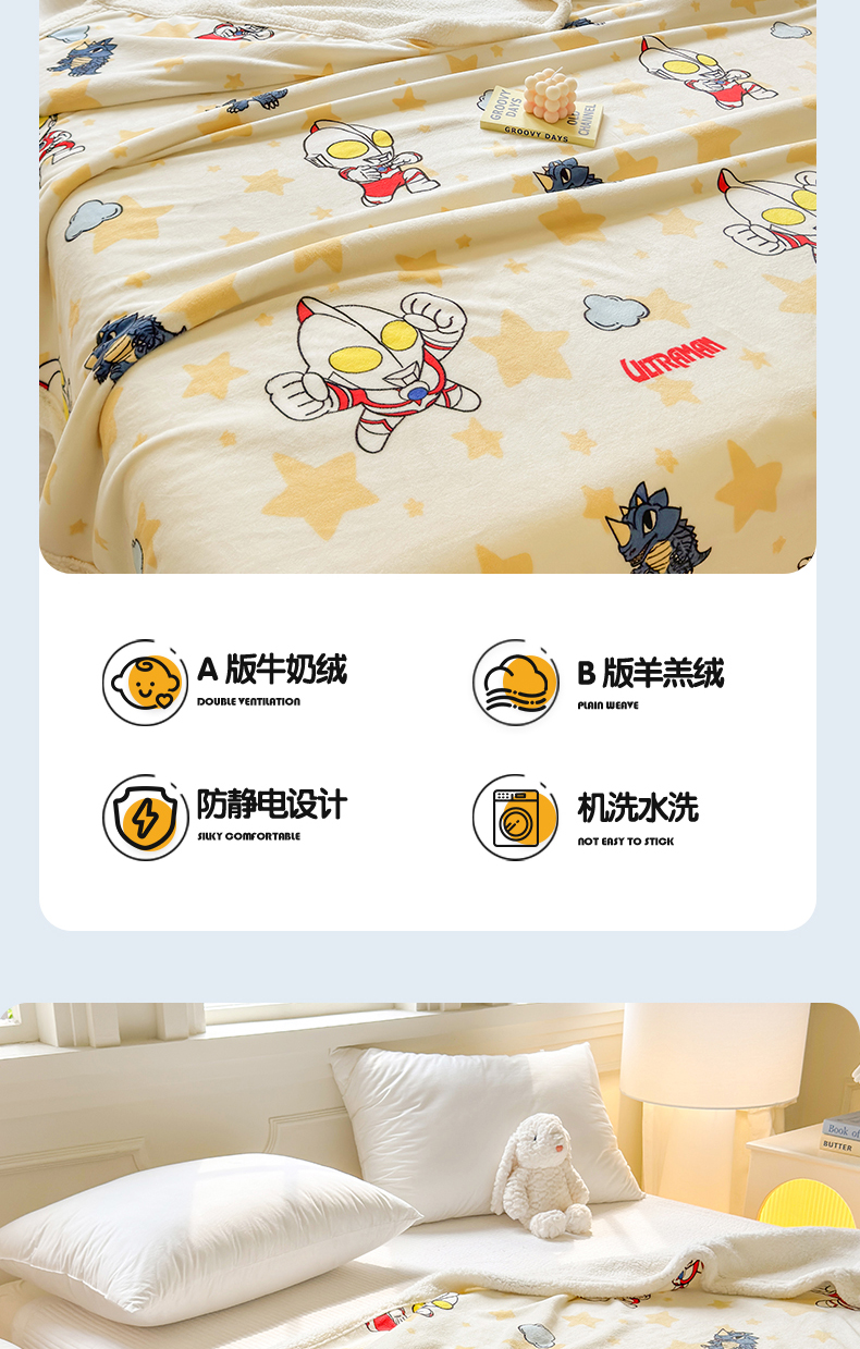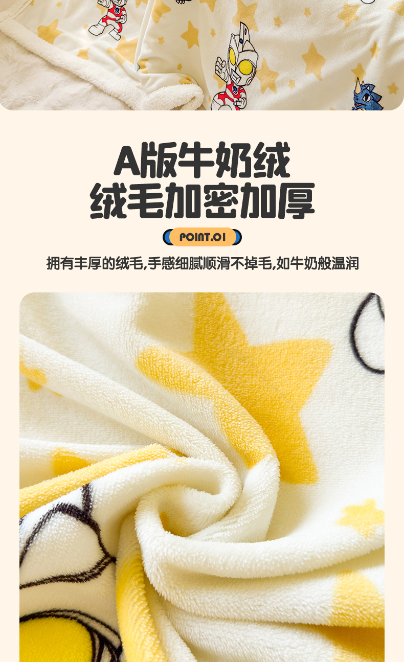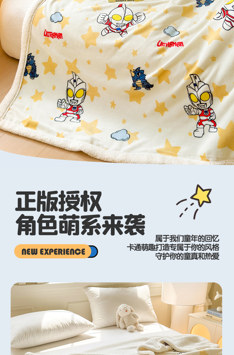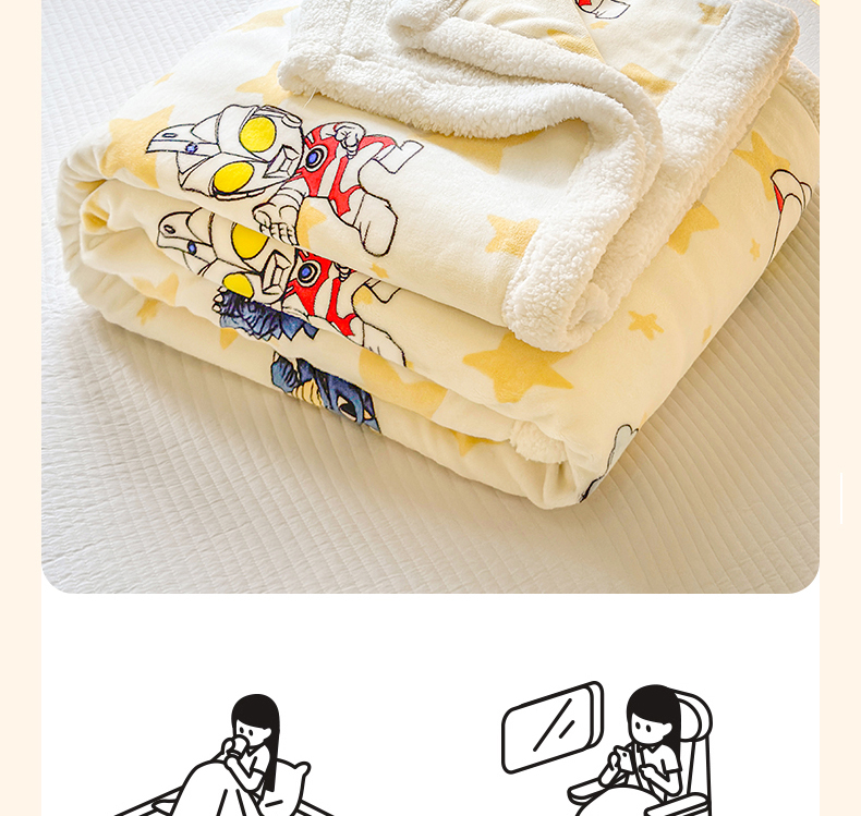 商品名称:名兮家居 2025秋冬正版授权经典奥特曼高克重牛奶绒羊羔绒多功能盖毯【含防伪标】 盖毯-星空战士
