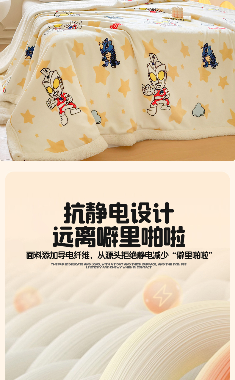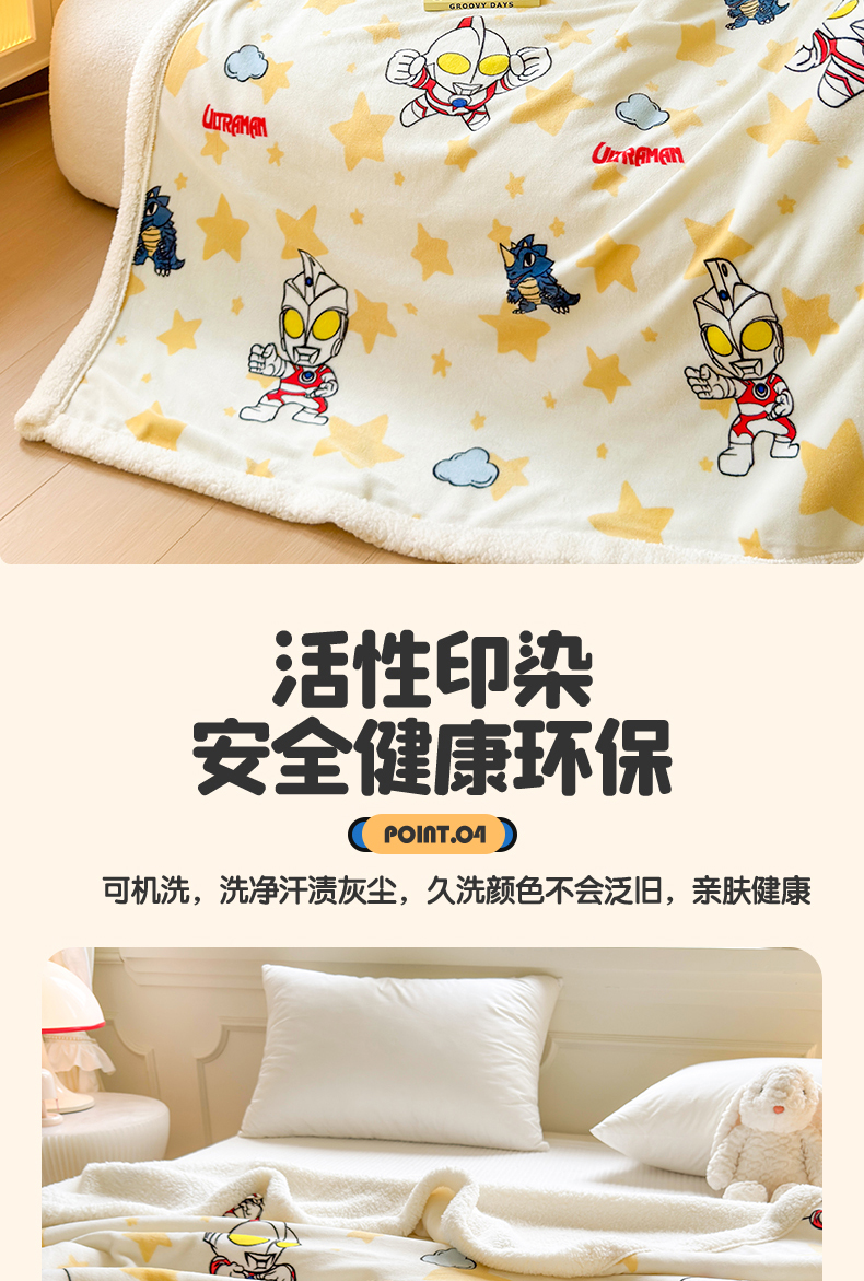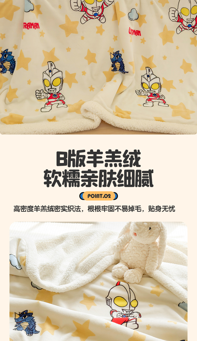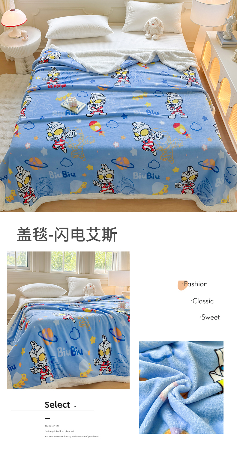 名兮家居 2025秋冬正版授权经典奥特曼高克重牛奶绒羊羔绒多功能盖毯【含防伪标】 盖毯-星空战士