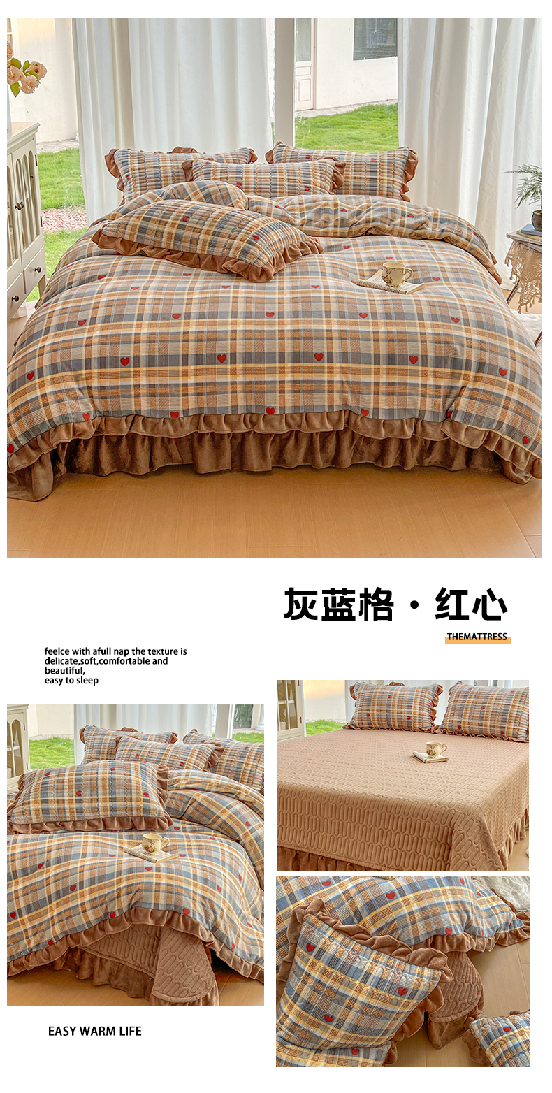 (总)美梦家纺 2025新款牛奶绒花边夹棉床盖四件套,爱心-灰,蝴蝶结-紫,蝶舞,蕾丝花-蓝,豆蔻,咖波点,蝴蝶结-灰,灵动草莓-米,秋叶-咖,甜美女孩,乌梅紫酱,星辰蝶语-紫,雨后花园,紫色物语,冰淇淋