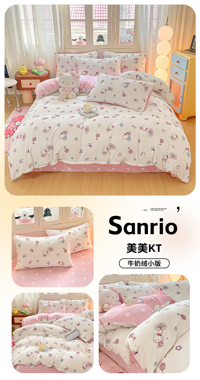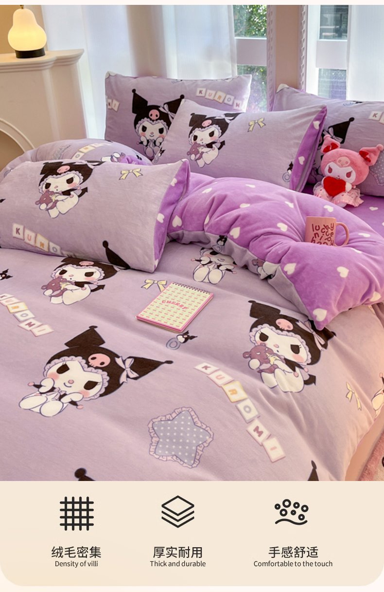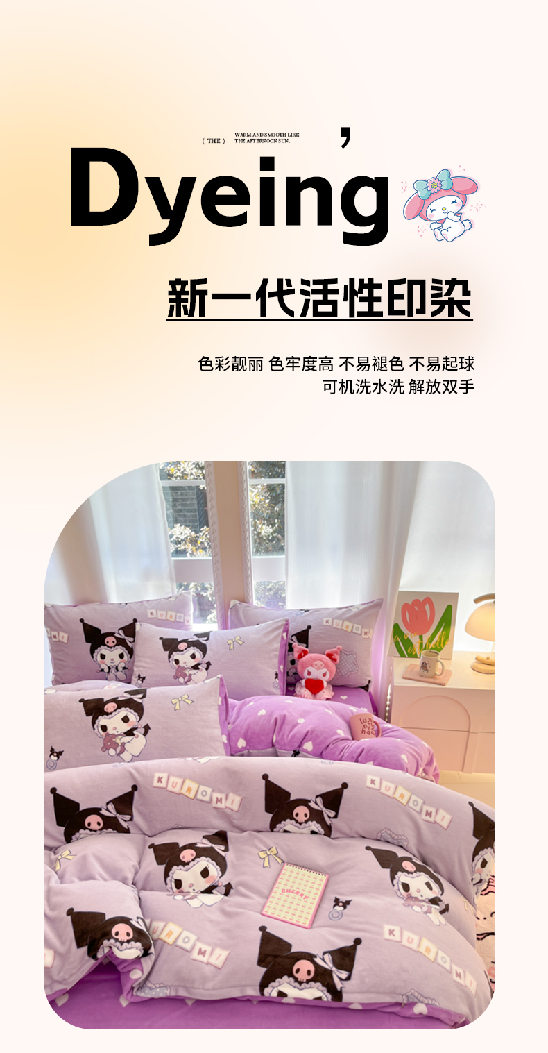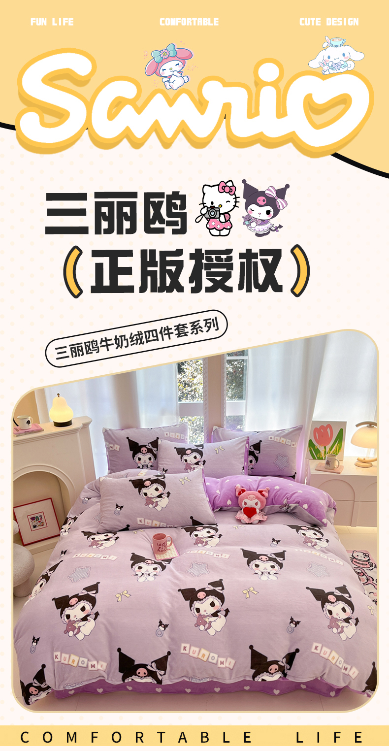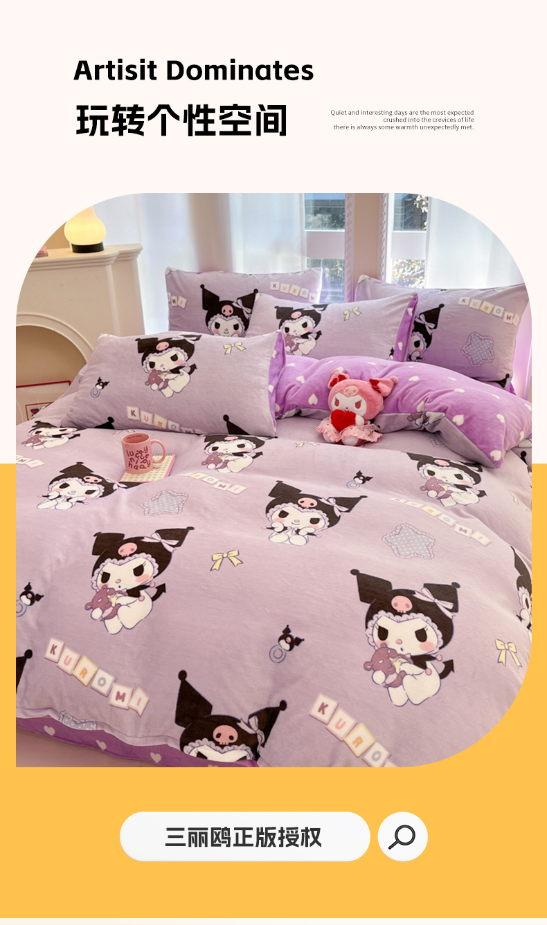 当前位置: 91家纺网 > 商品网购 > 床品套件 > 四件套 > 牛奶绒四件套 > 博雅 2025新款三丽鸥正版授权高克重牛奶绒小版四件套提供买家秀 牛奶绒小版-星星库洛米