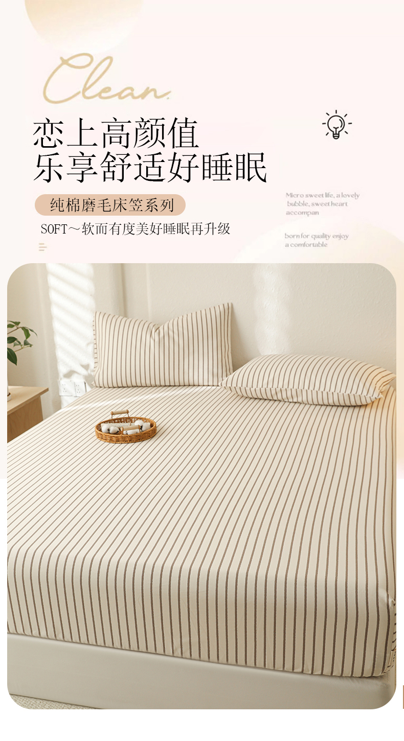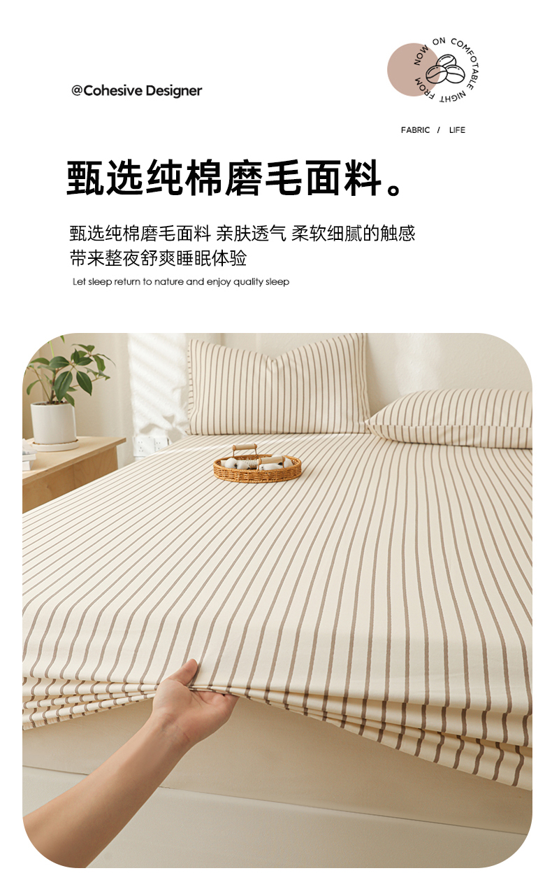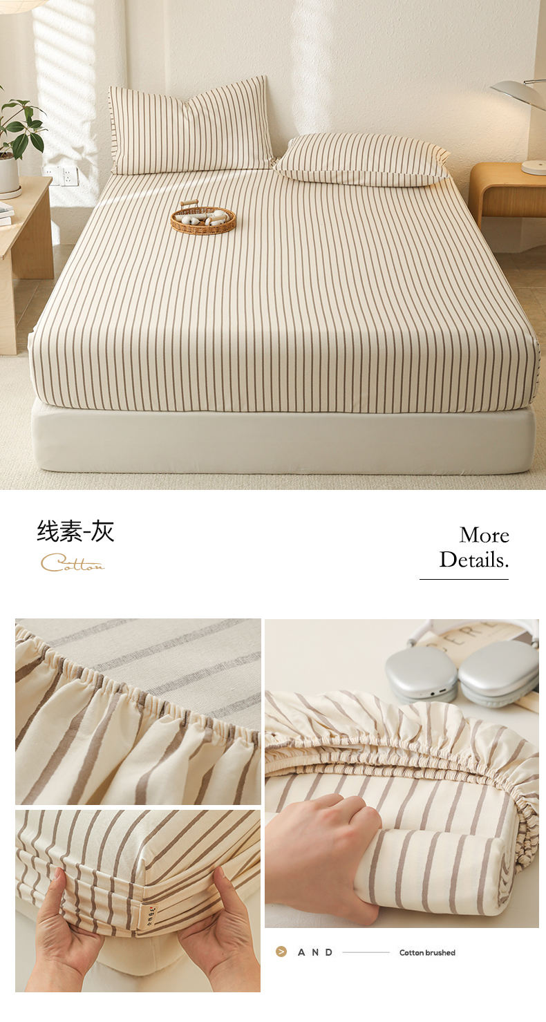 简宜家居(朝初家纺) 2025新款纯棉全棉磨毛单床笠系列 线素-灰
